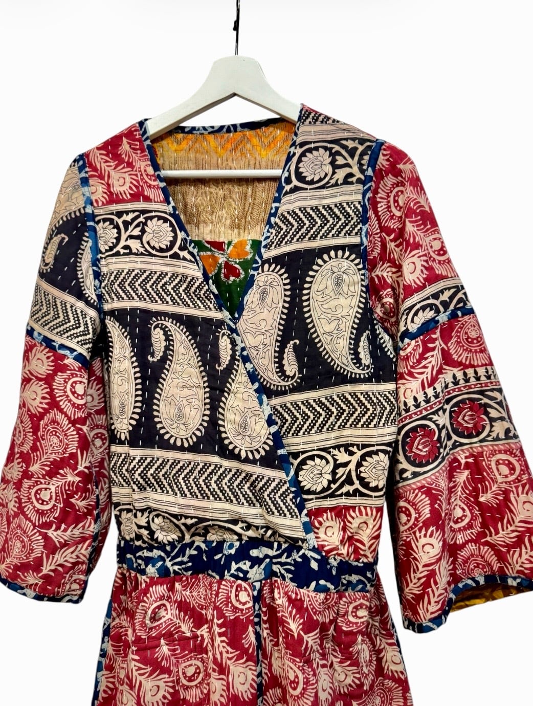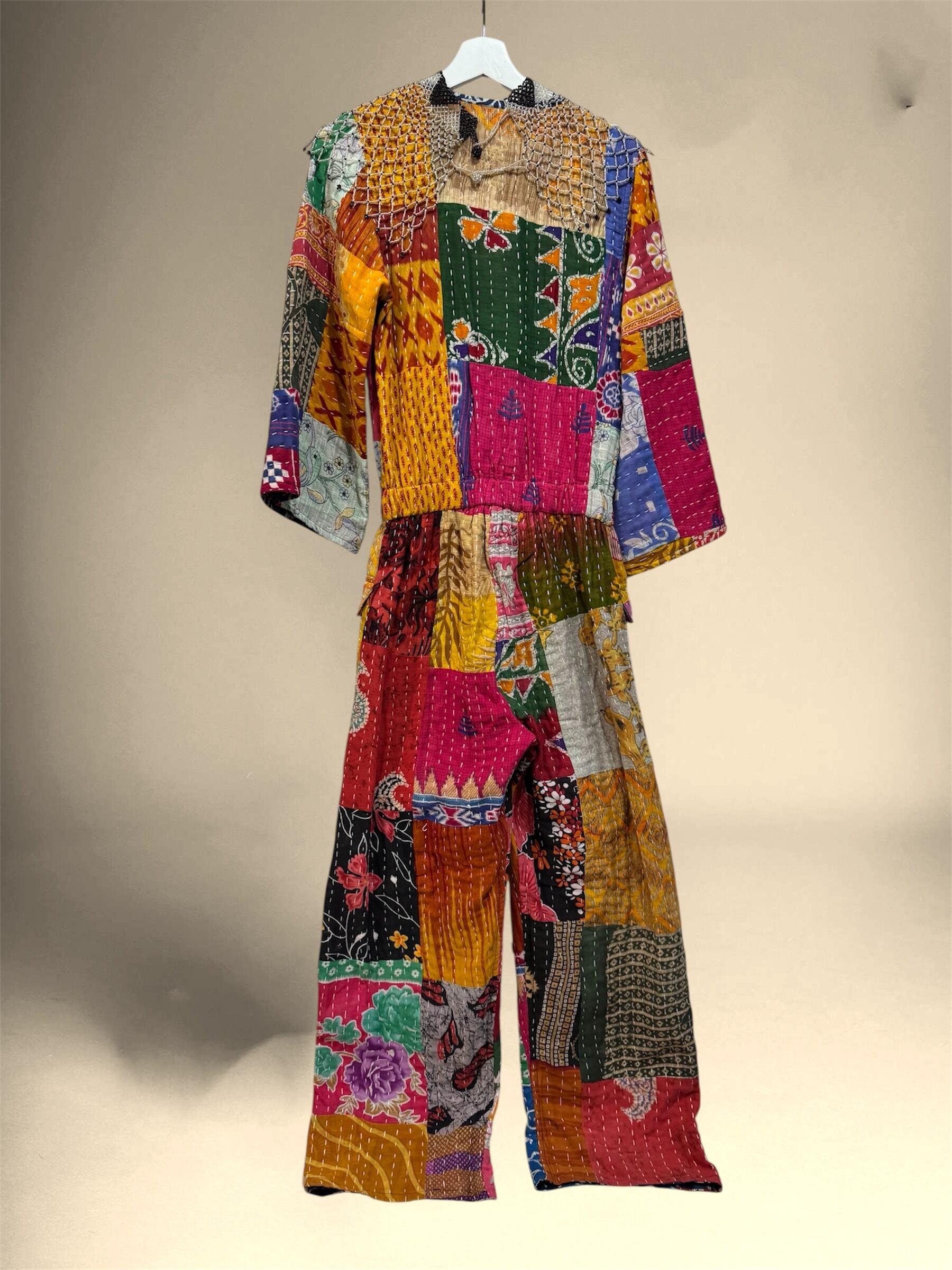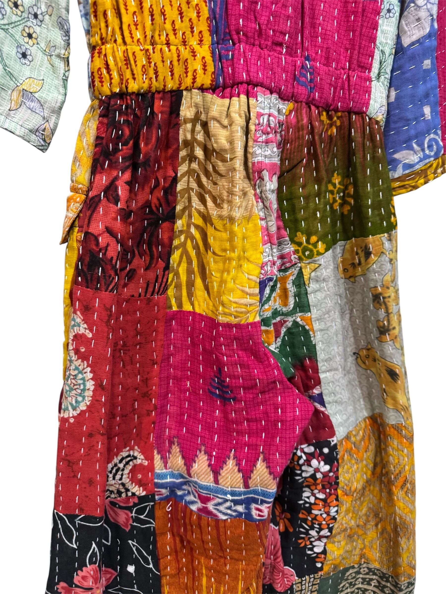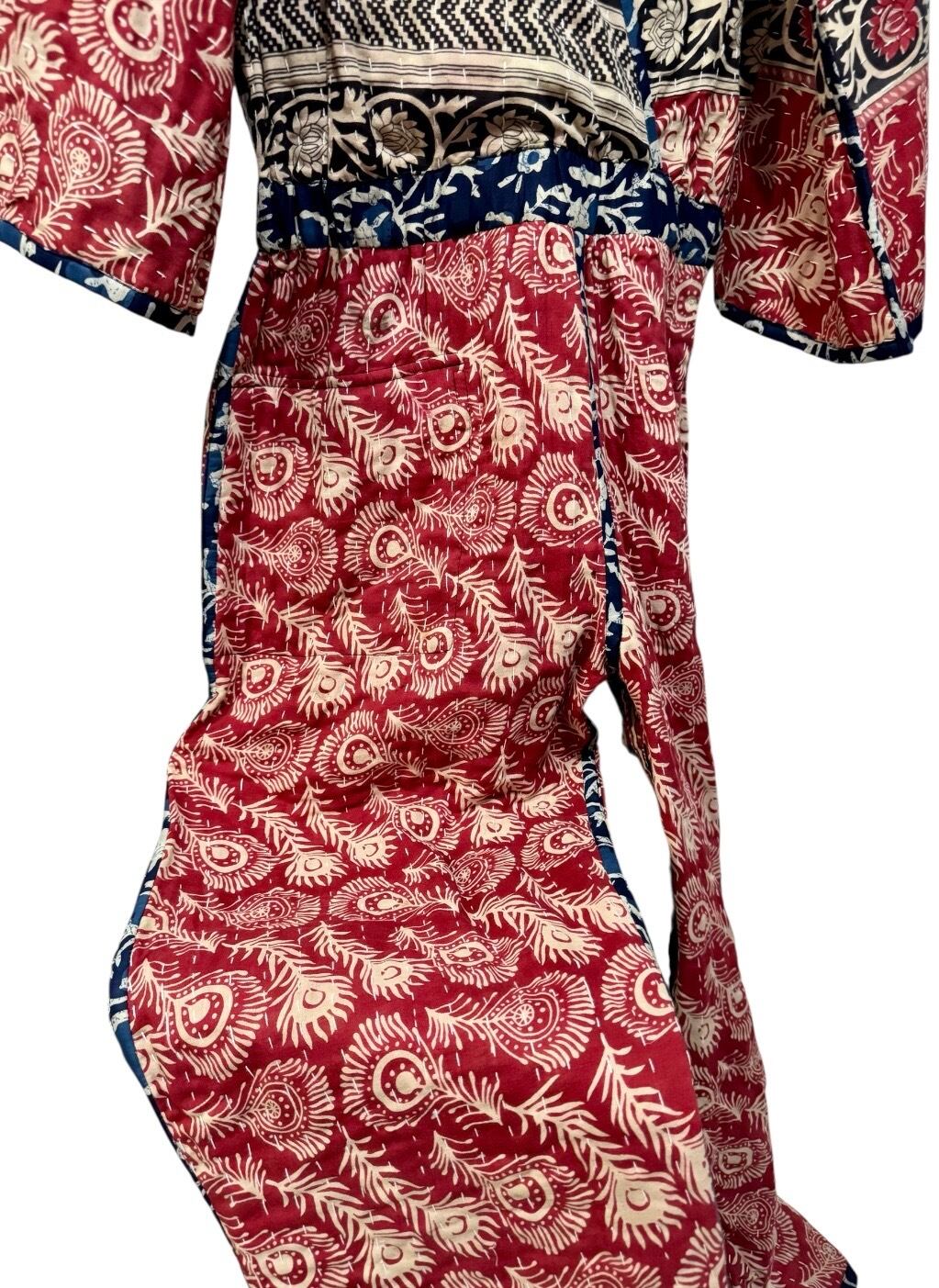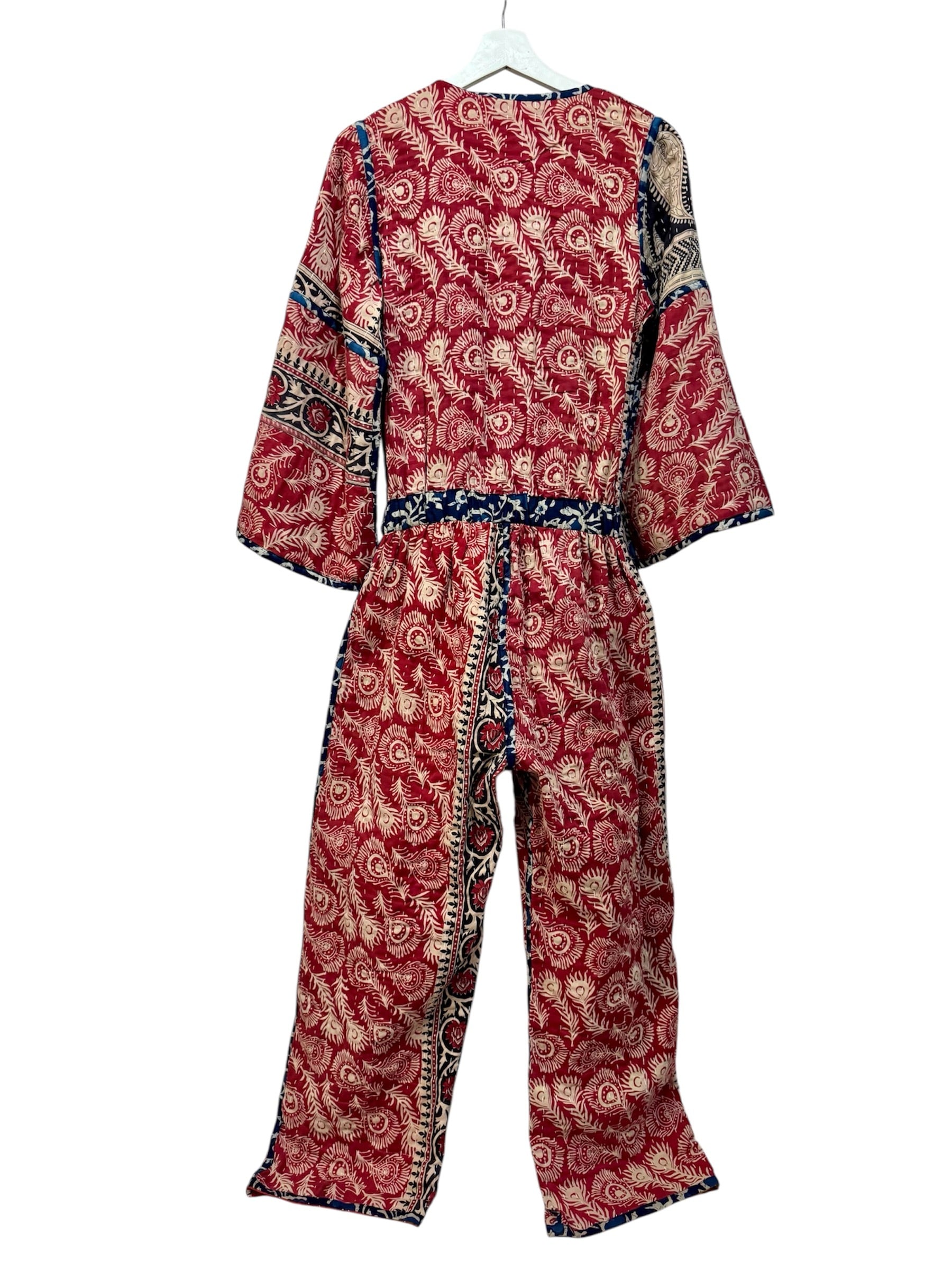 India Old cotton patchwork Kantha Quilt reversible jumpsuit ①