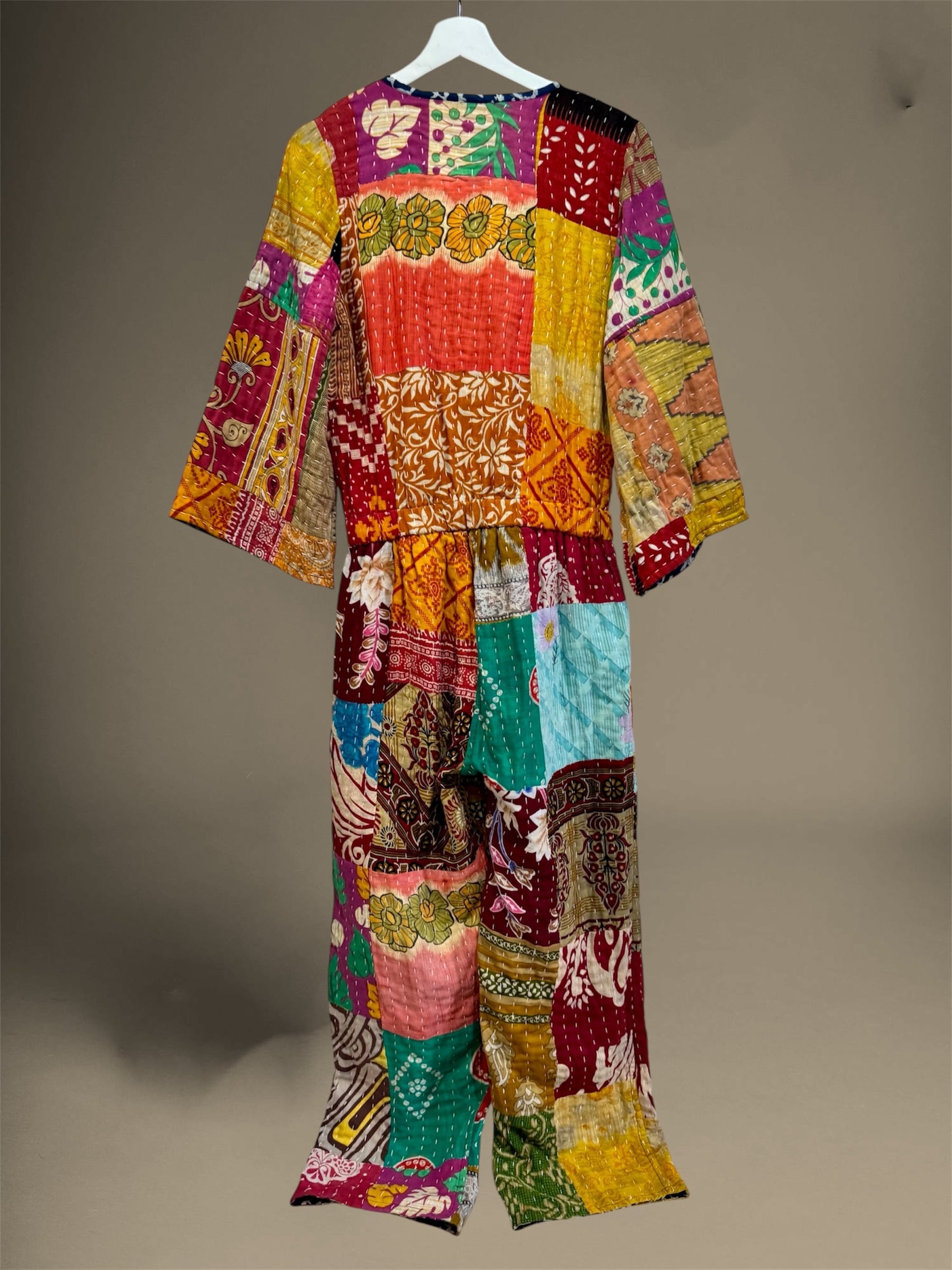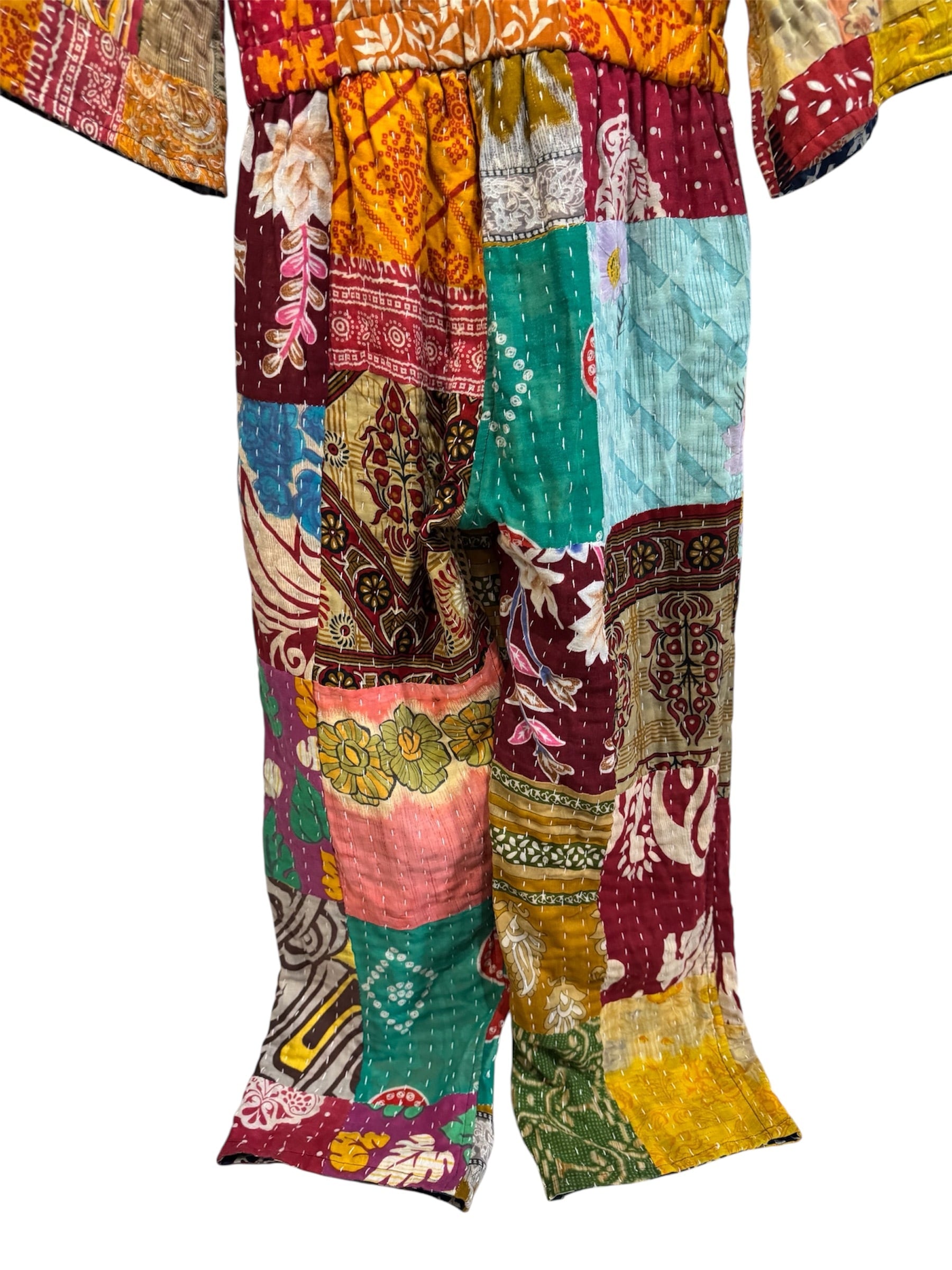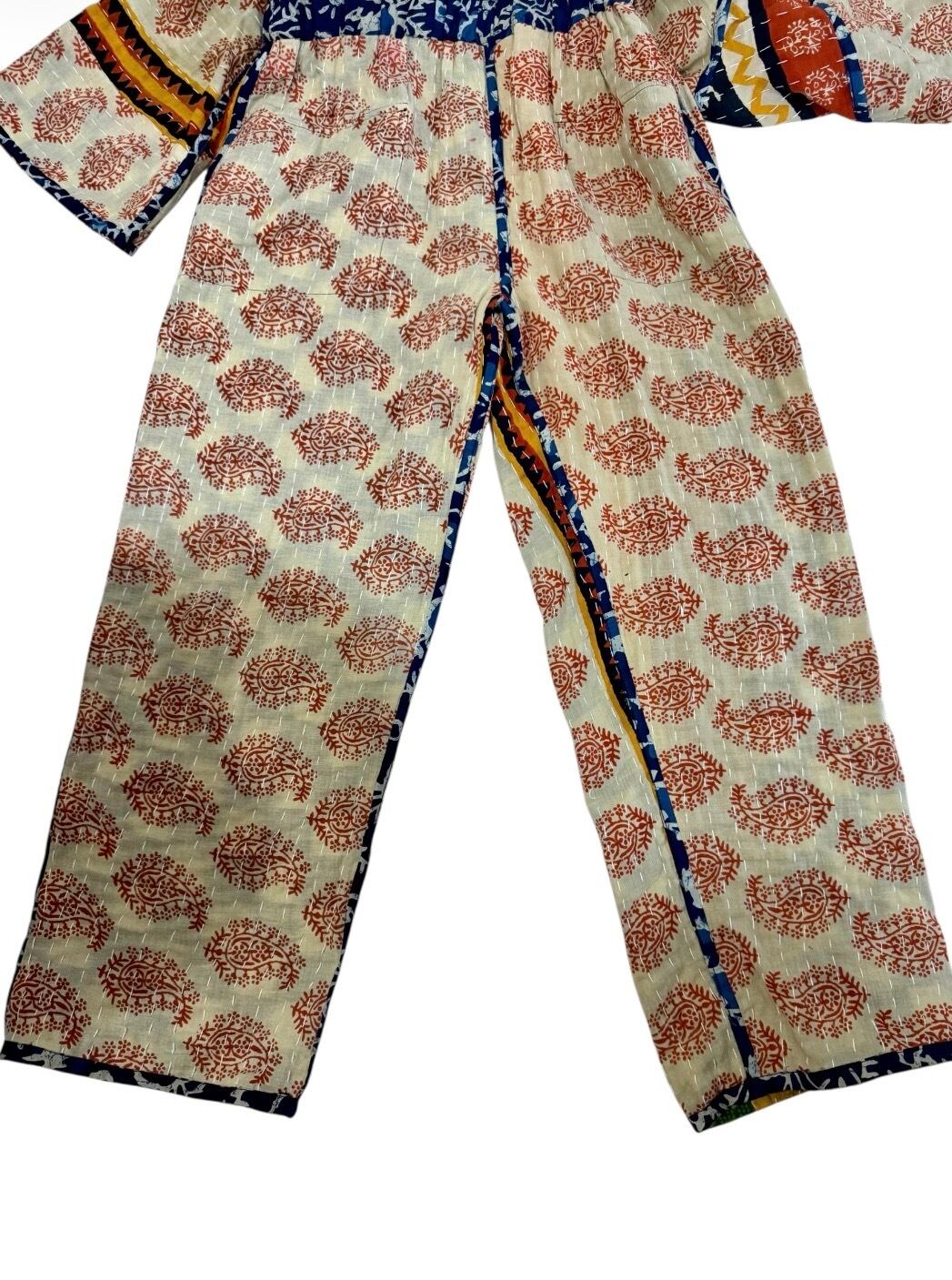 India Old cotton patchwork Kantha Quilt reversible jumpsuit ②
