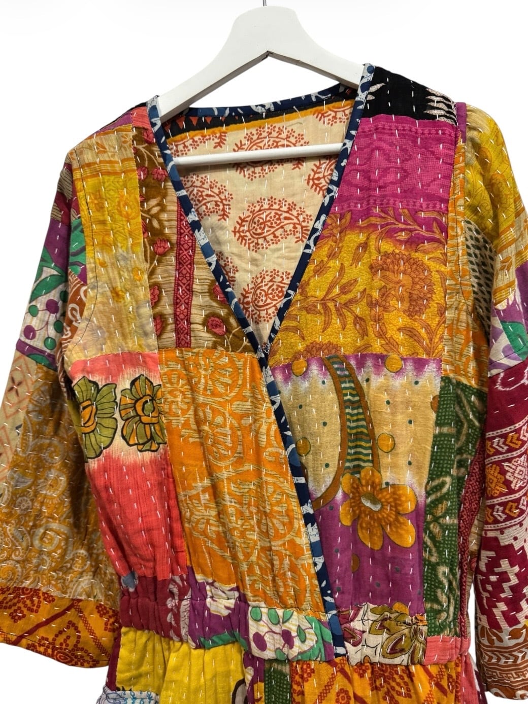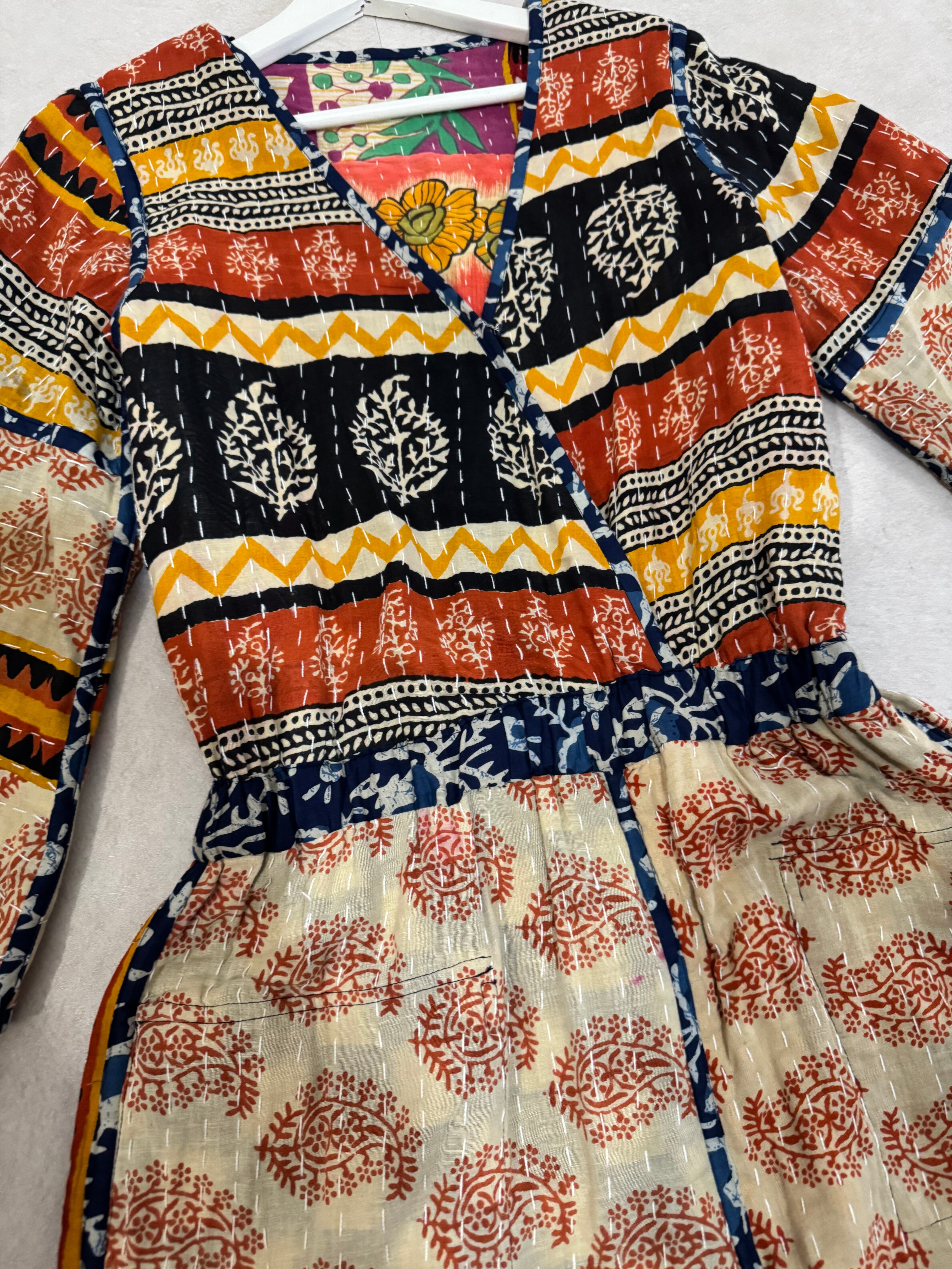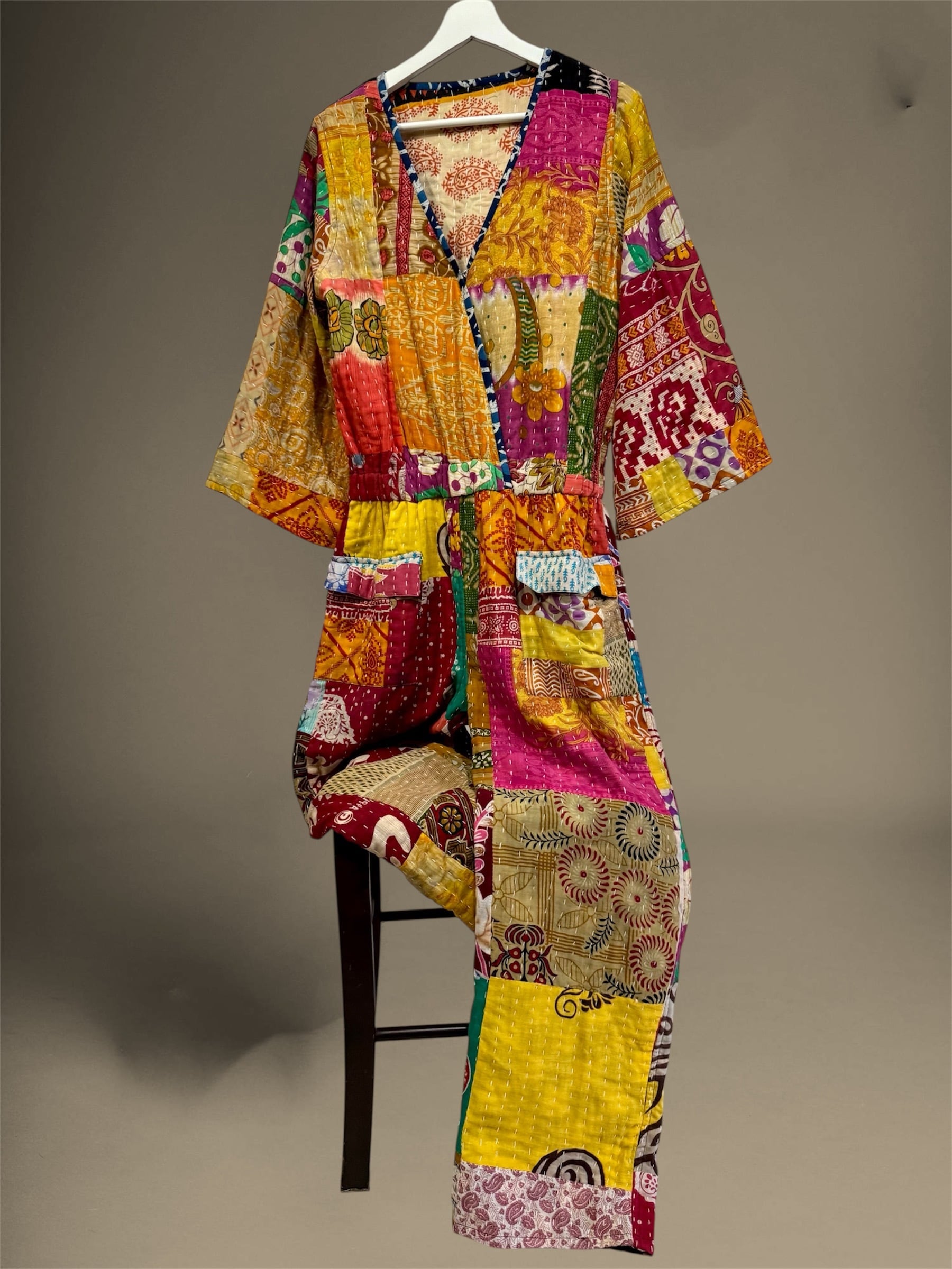 India Old cotton patchwork Kantha Quilt reversible jumpsuit ②