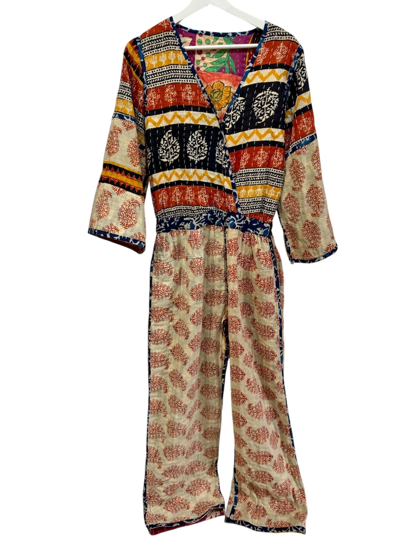 インディア オールド コットン パッチワーク カンタキルト リバーシブル ジャンプスーツ ②