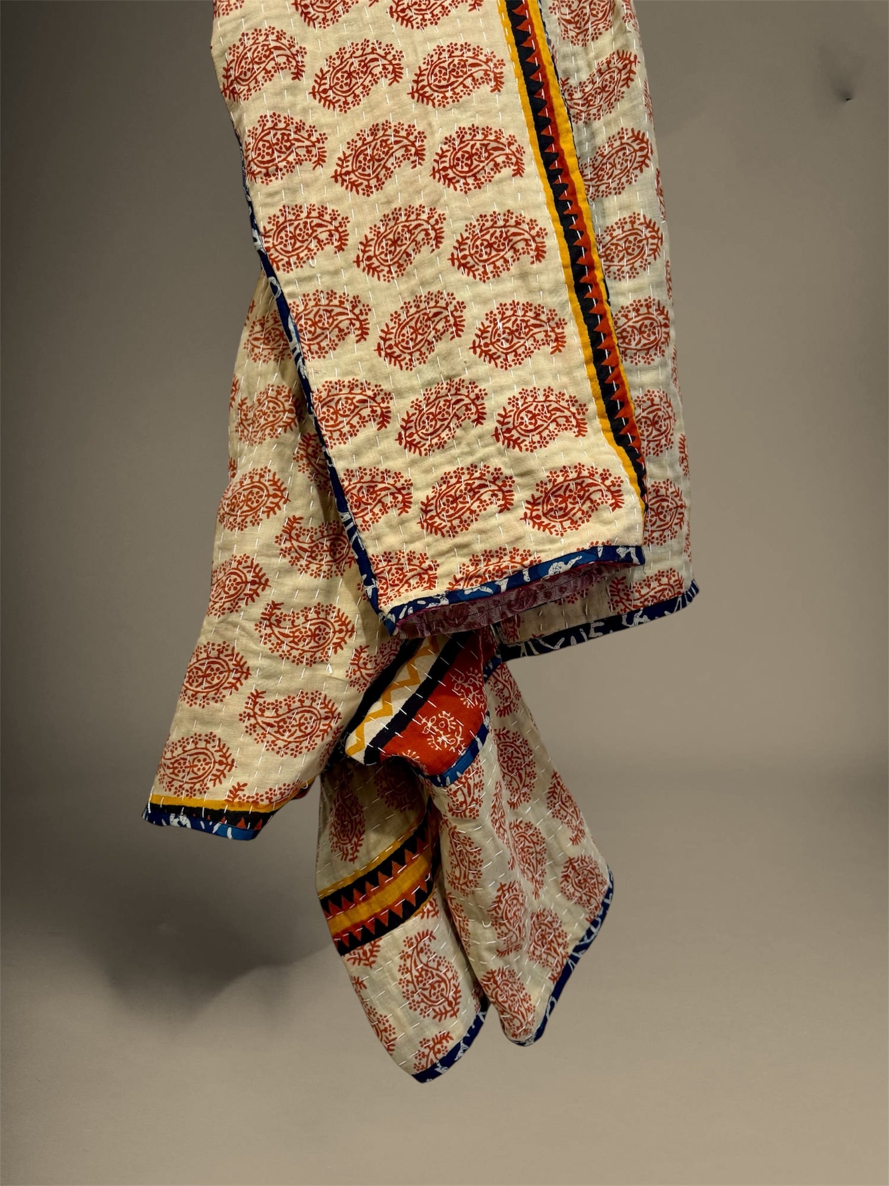 インドの伝統的な手仕事「カンタキルト」を贅沢に使用した、一点もの。