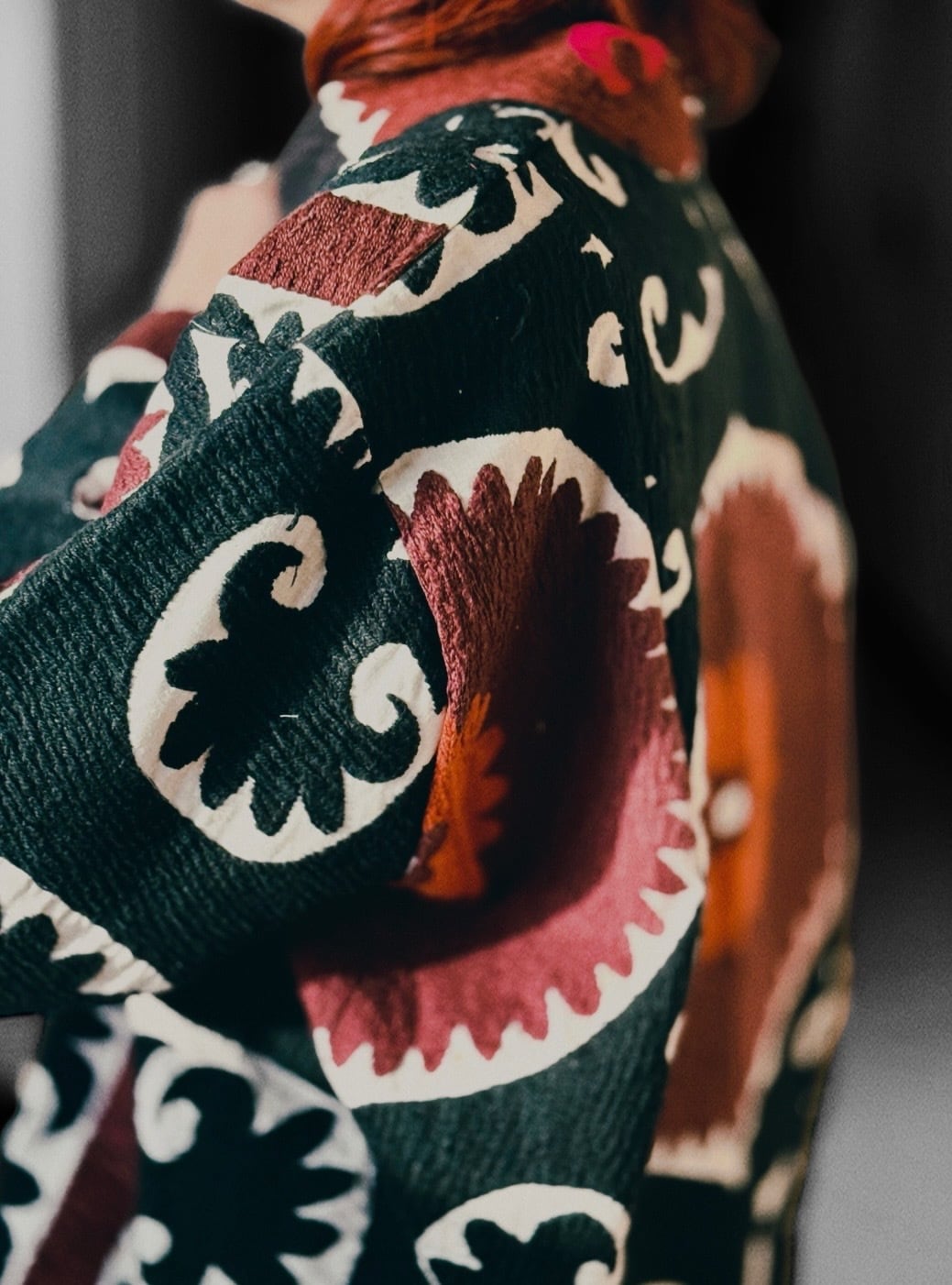 ウズベク族のトライバル刺繍 スザニ ガウンです。