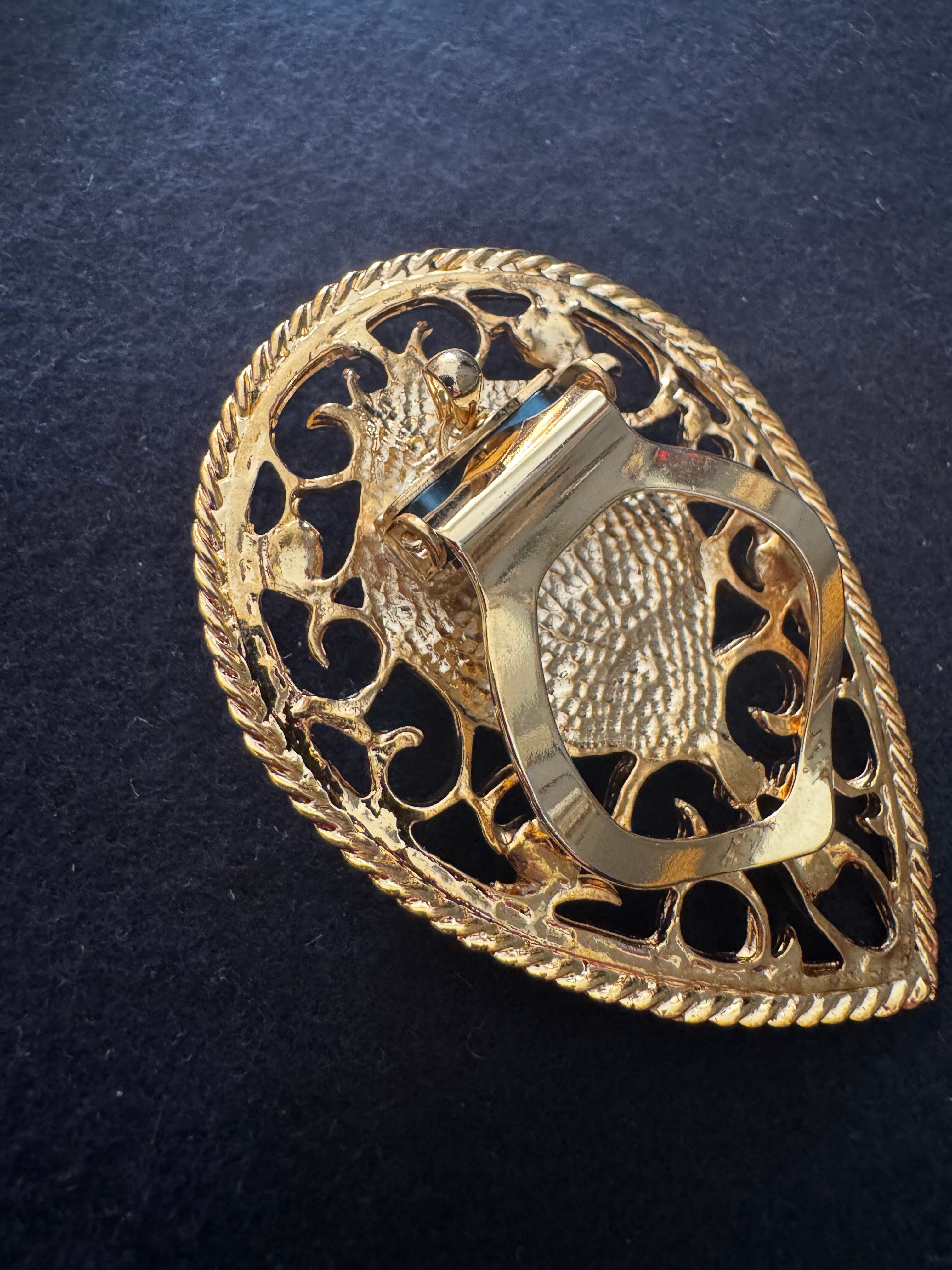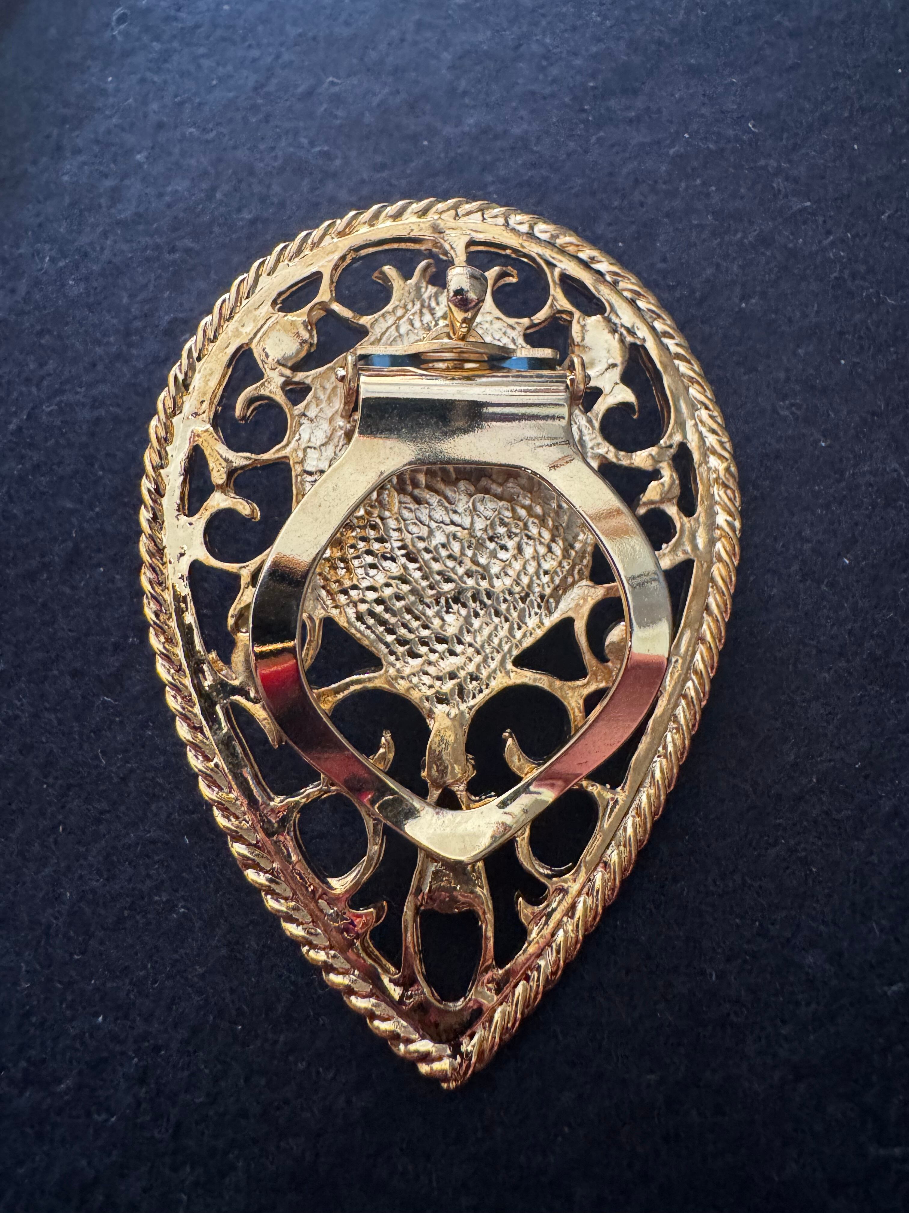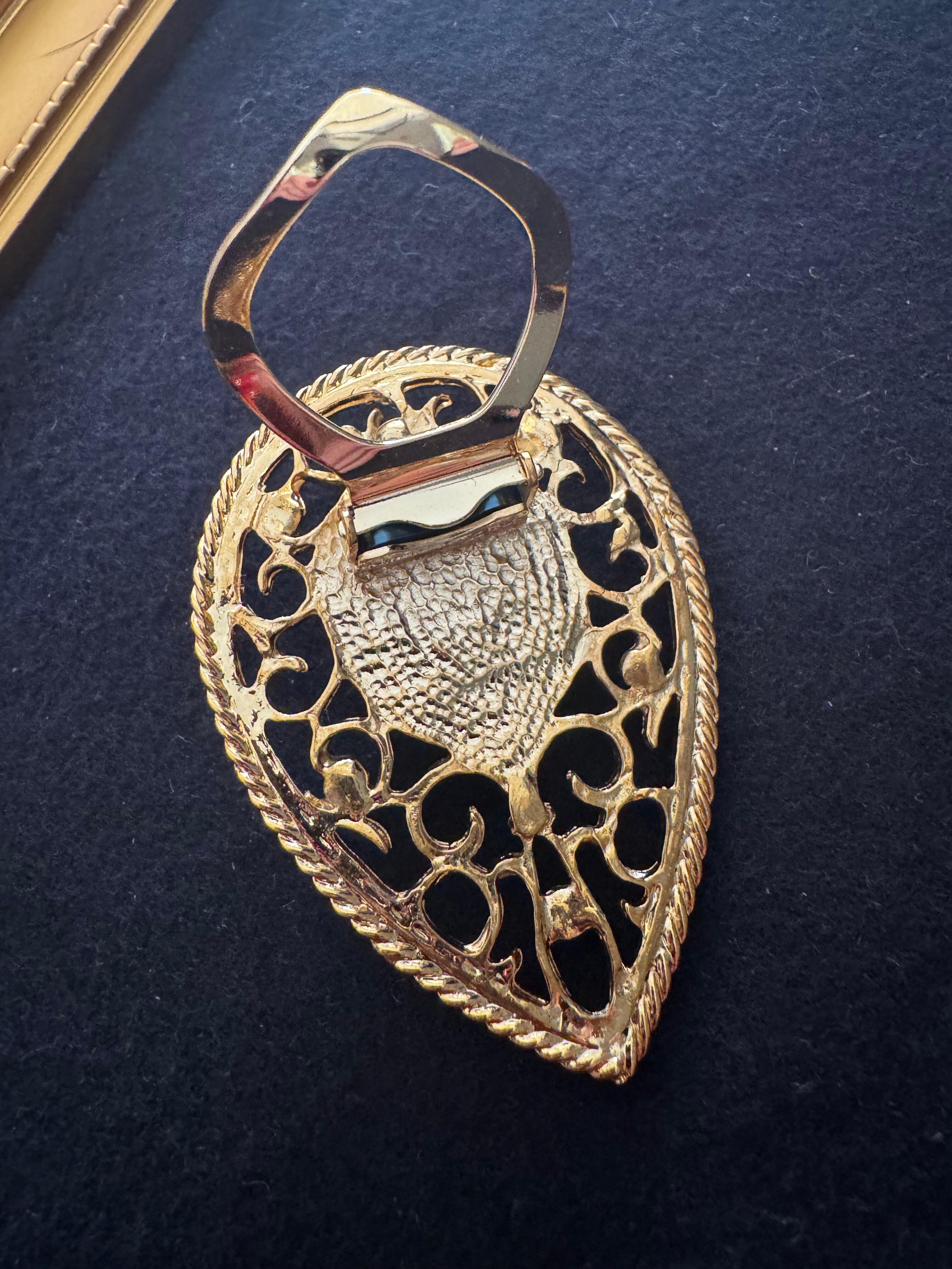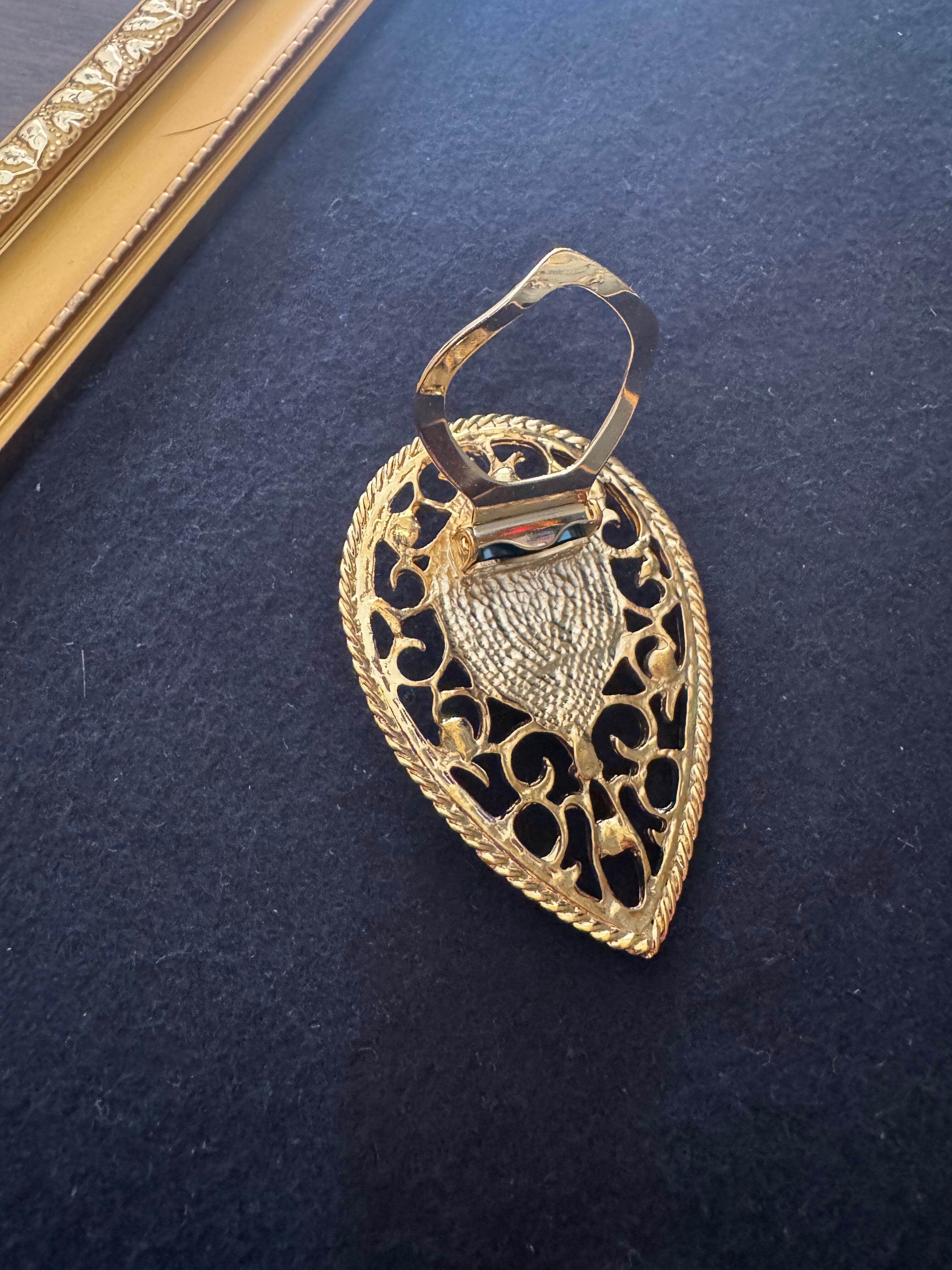 透かし模様の大きなゴールド フレームに、ラメ感のあるグラス ストーンのスカーフ リング & ペンダント ヘッド です。