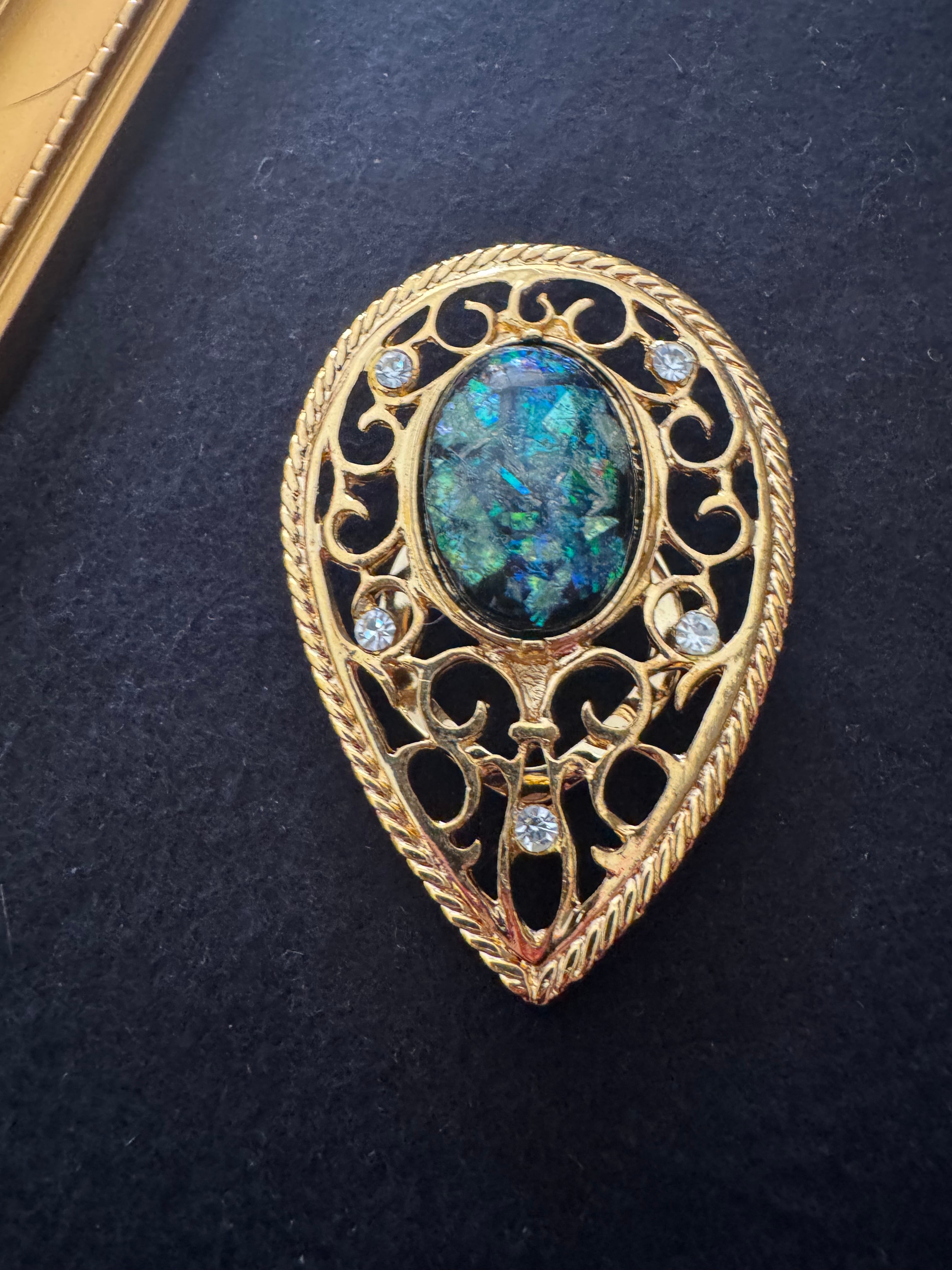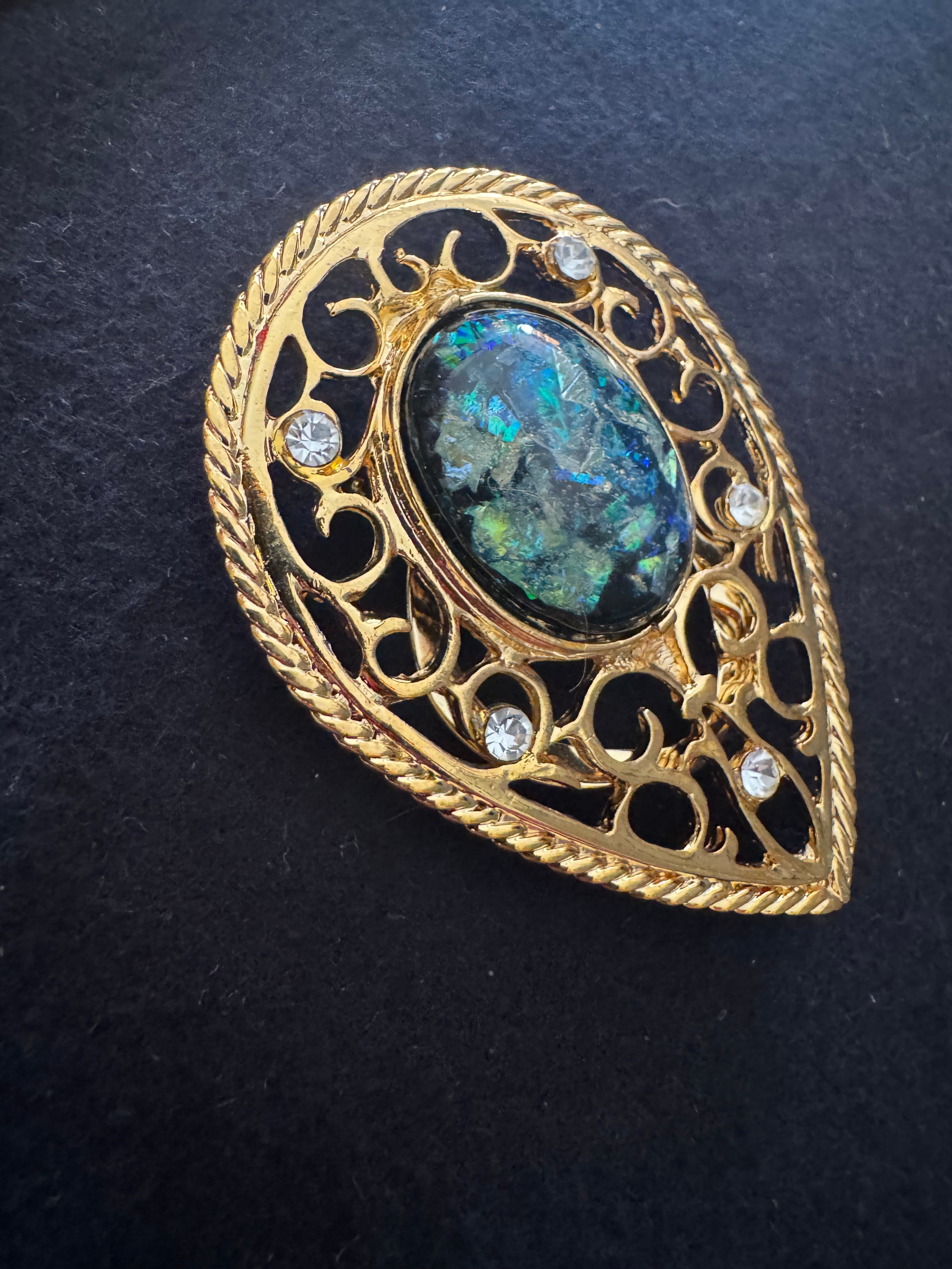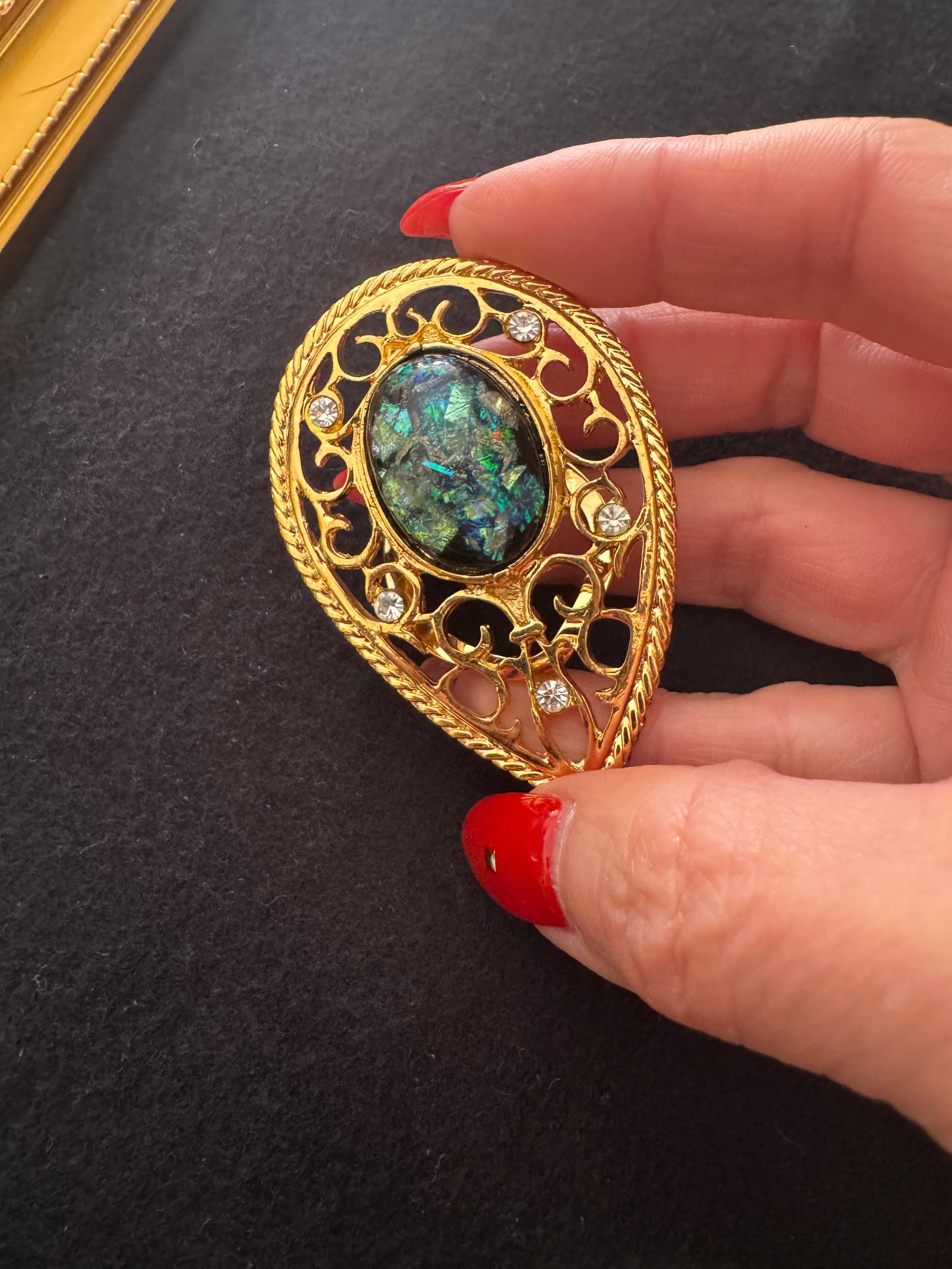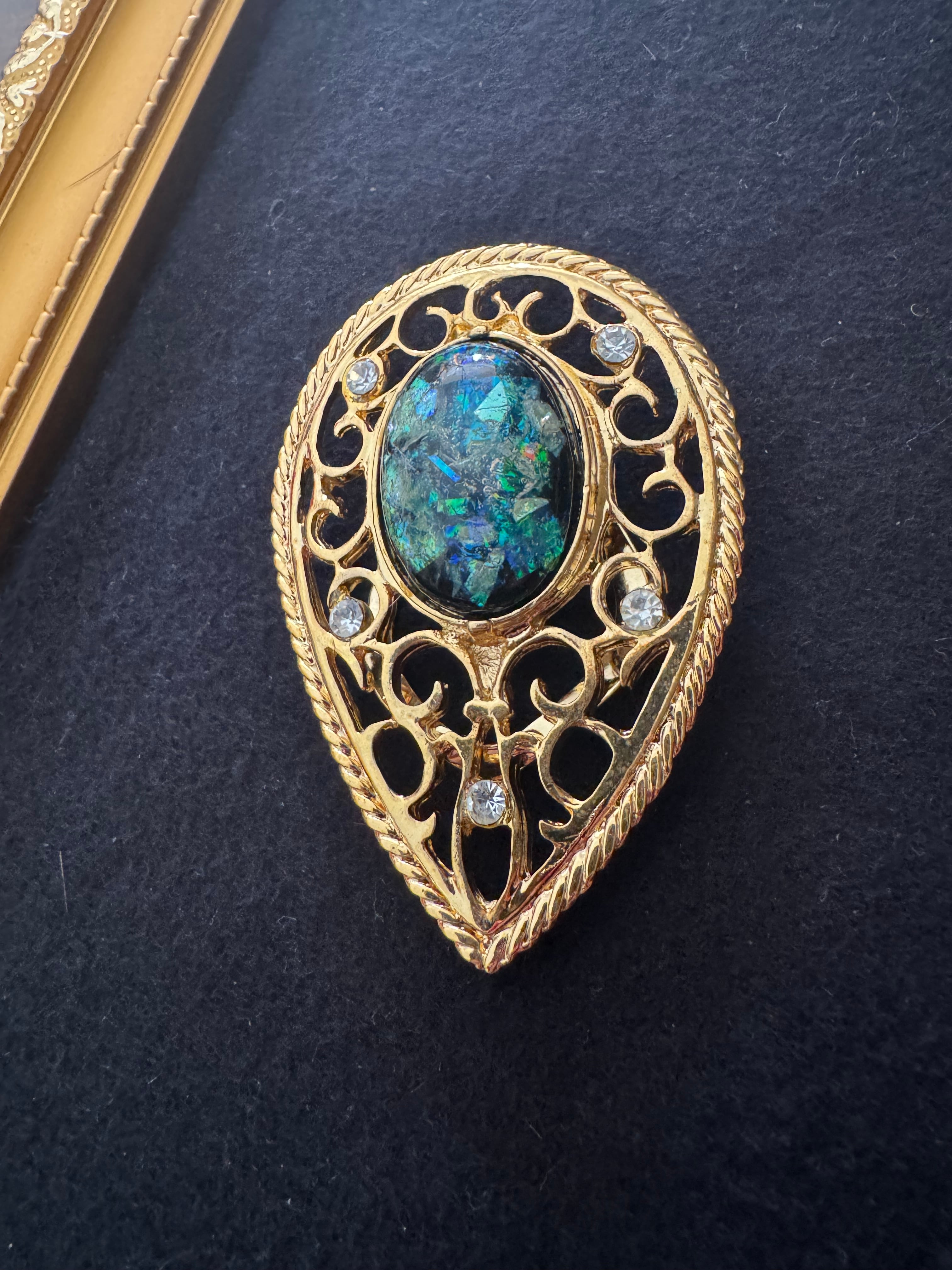 透かし模様の大きなゴールド フレームに、ラメ感のあるグラス ストーンのスカーフ リング & ペンダント ヘッド です。