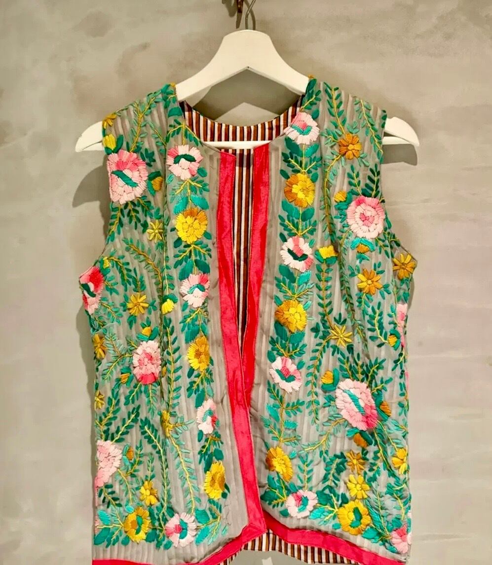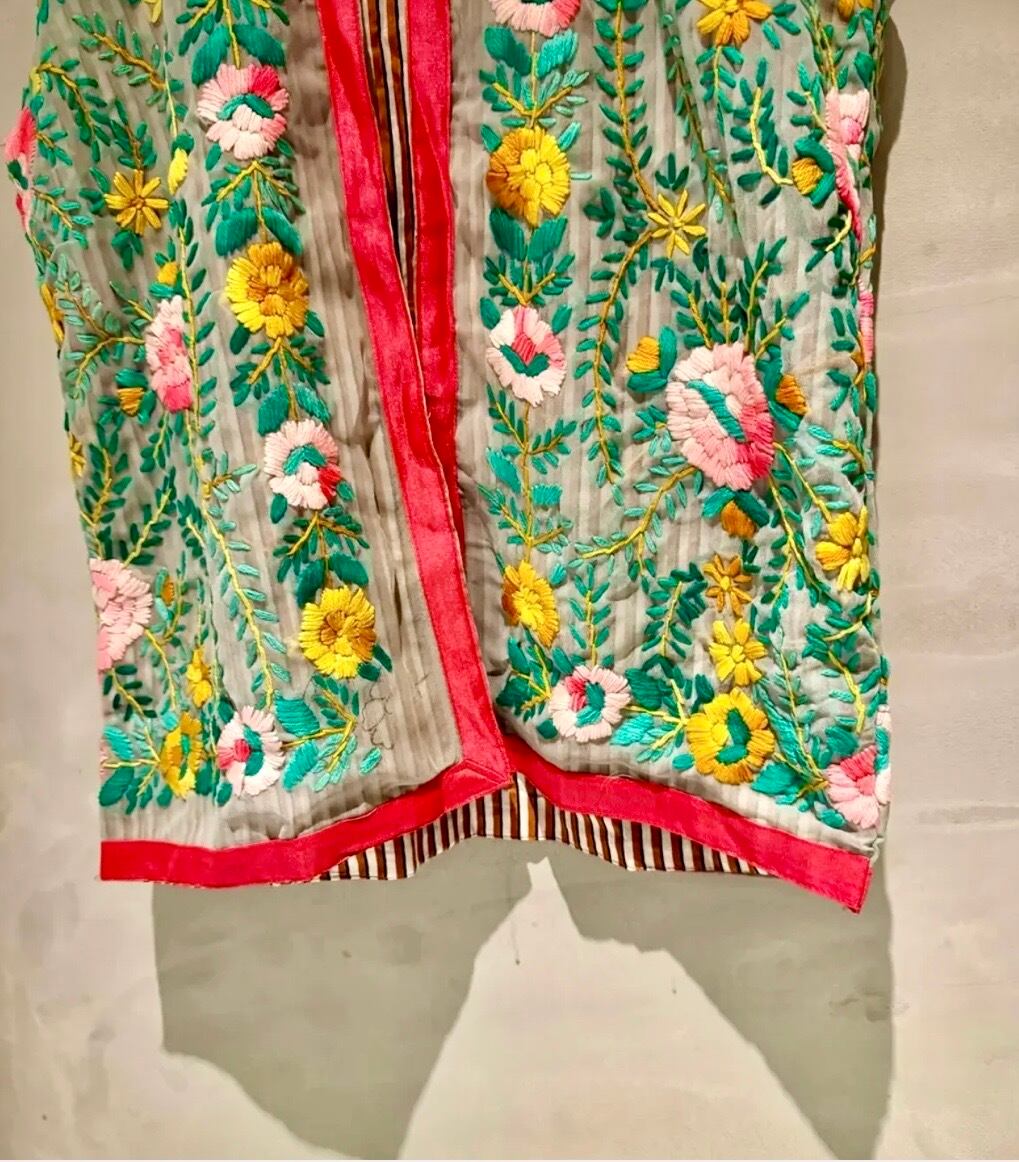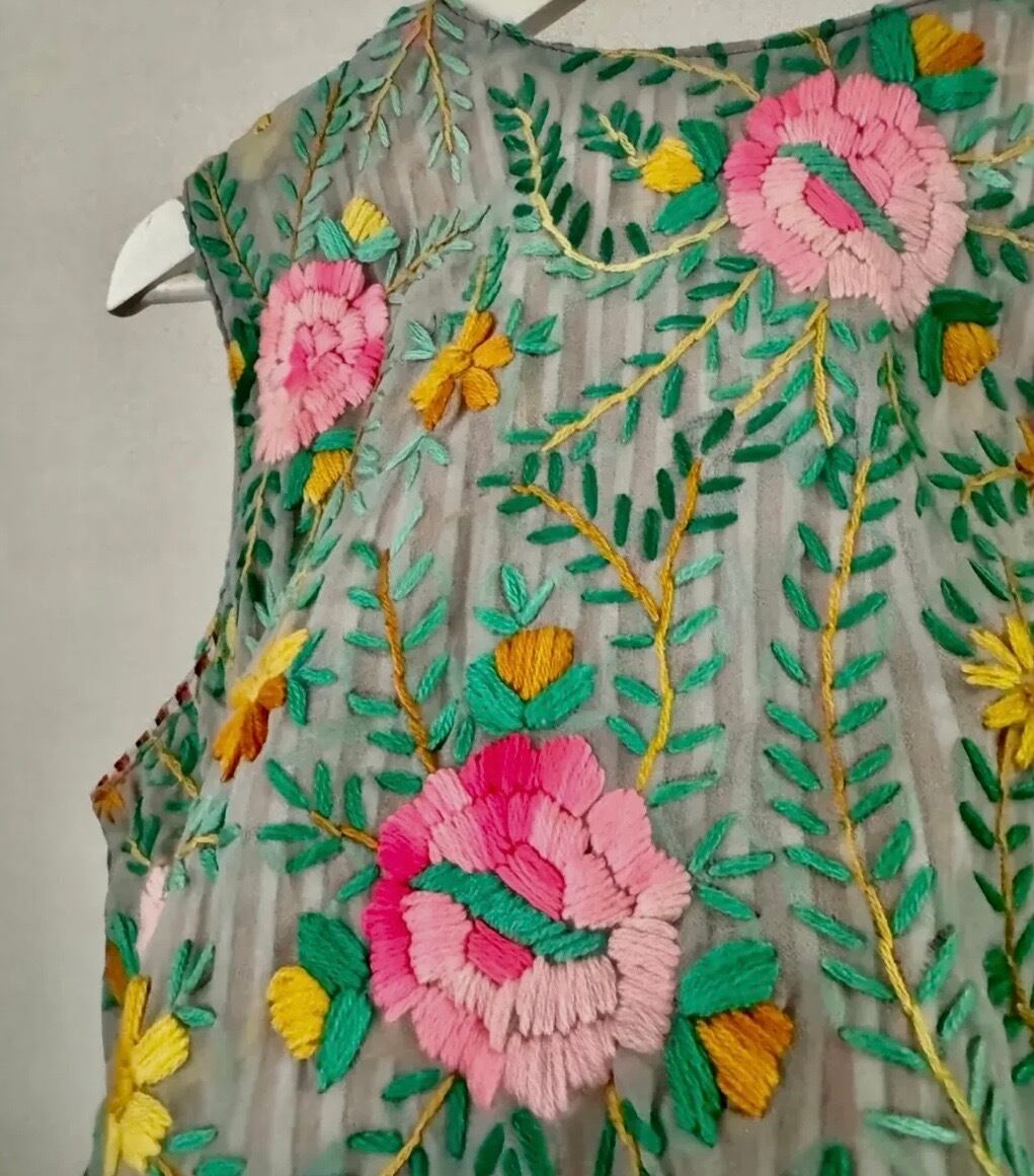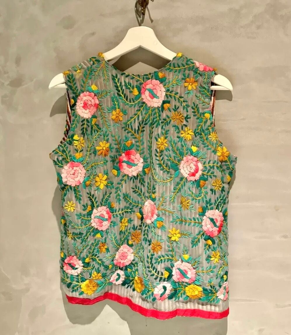 素晴らしいスキルとセンスの シルク シフォンのフル刺繍ベストです。