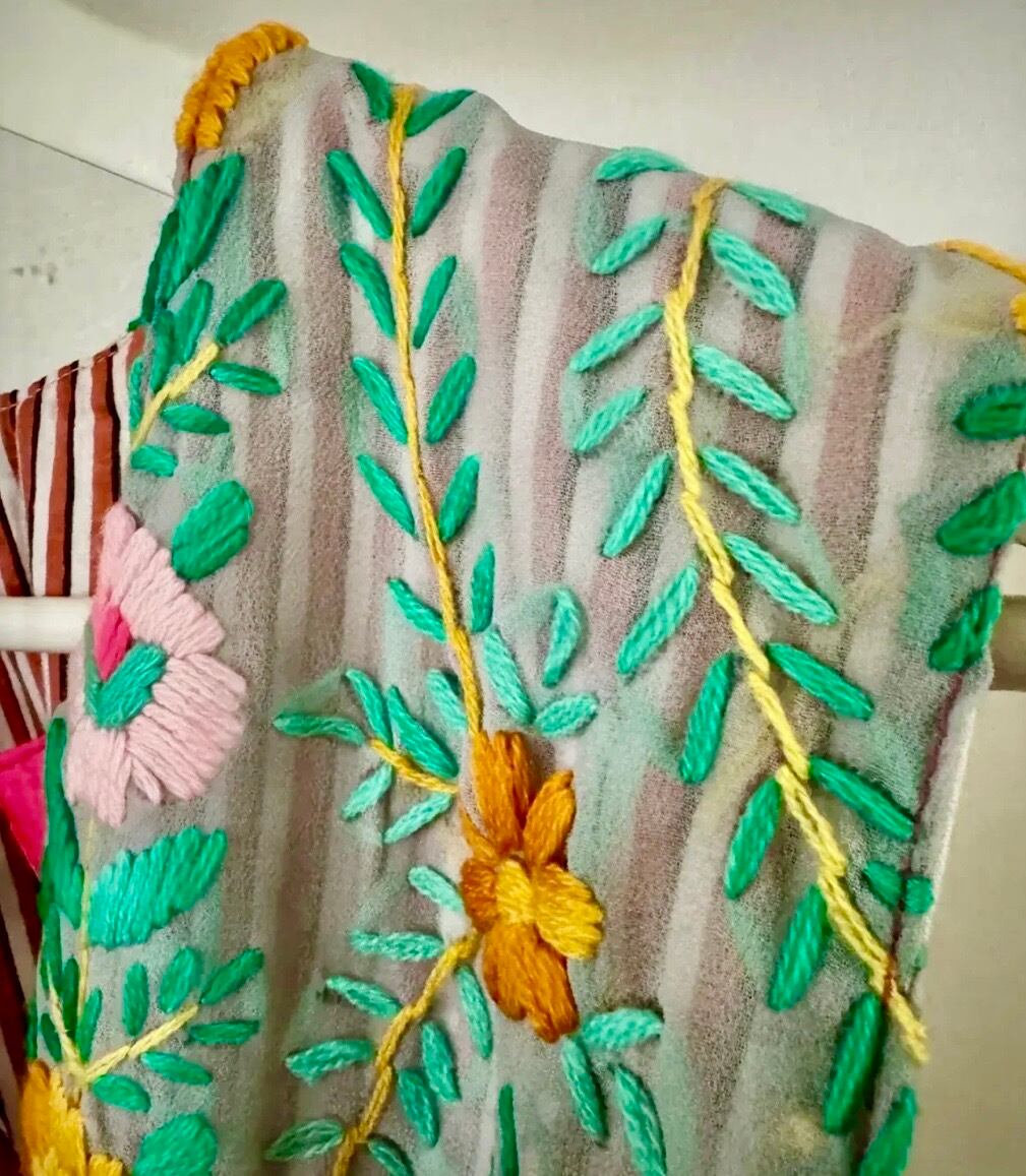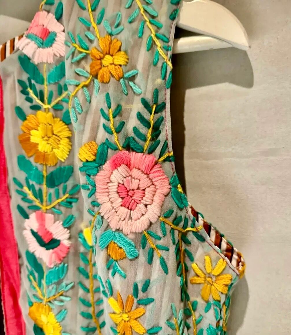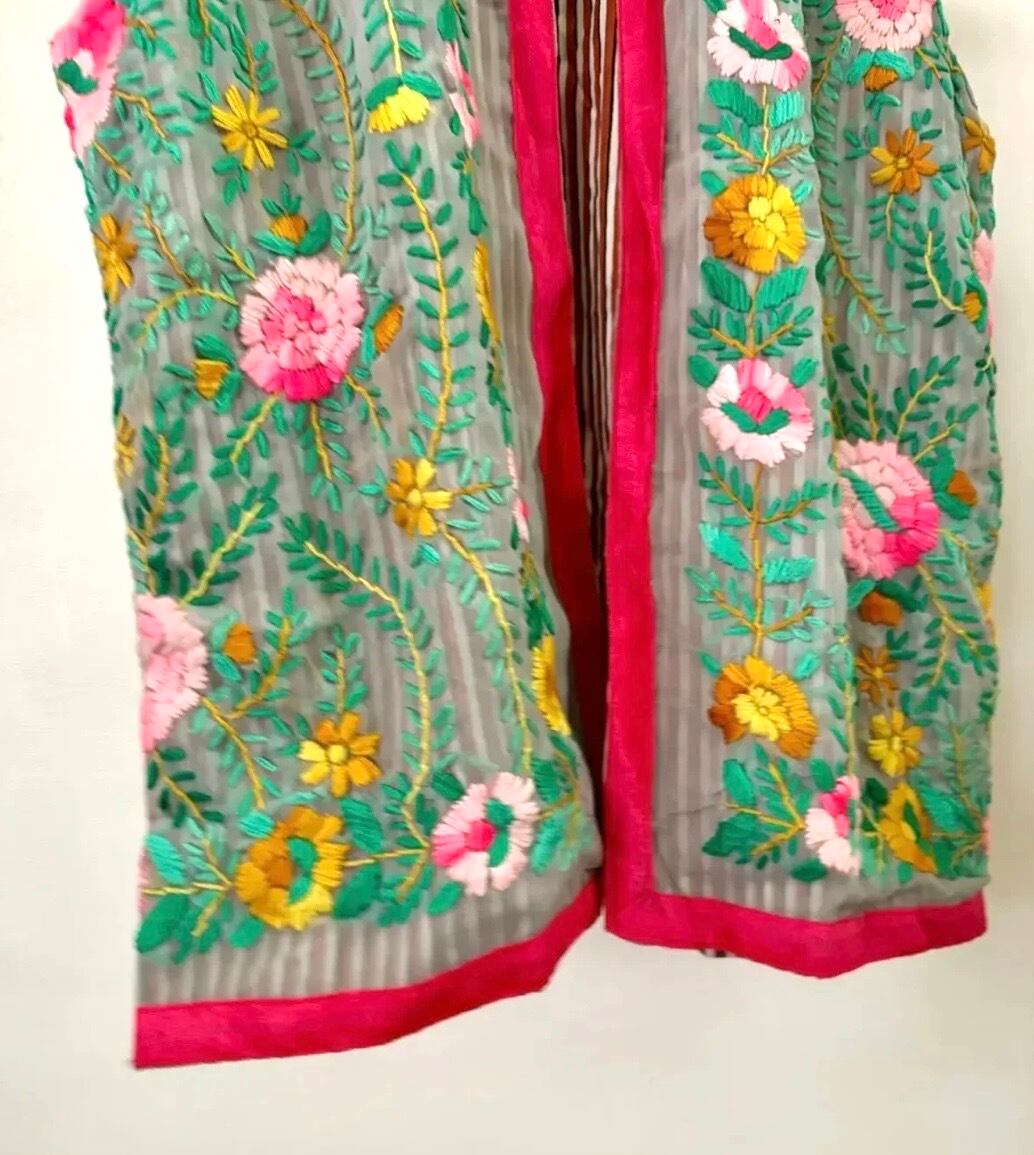 素晴らしいスキルとセンスの シルク シフォンのフル刺繍ベストです。