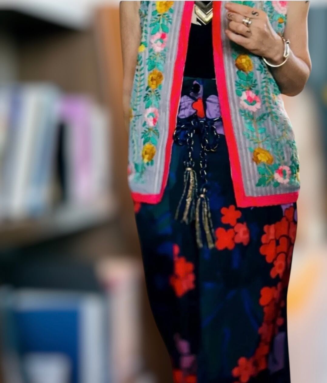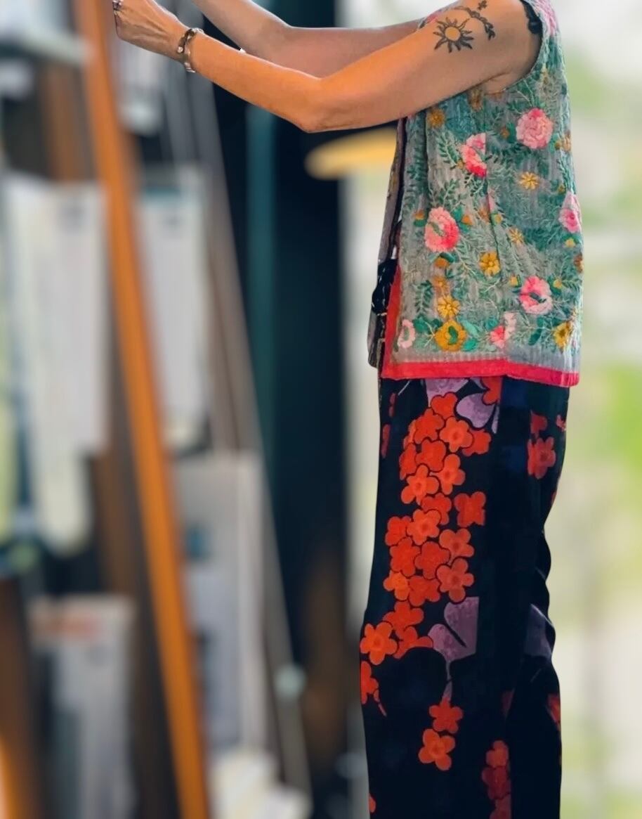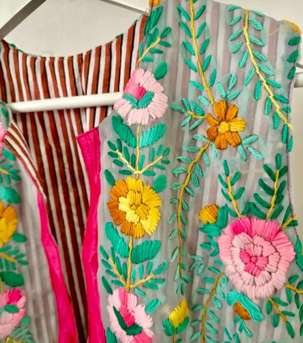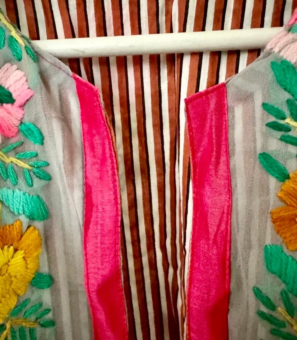 素晴らしいスキルとセンスの シルク シフォンのフル刺繍ベストです。