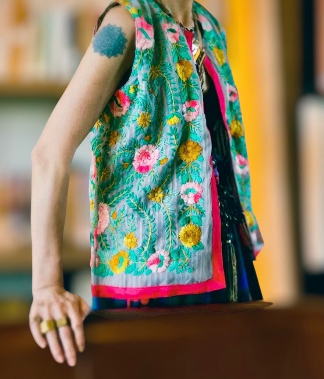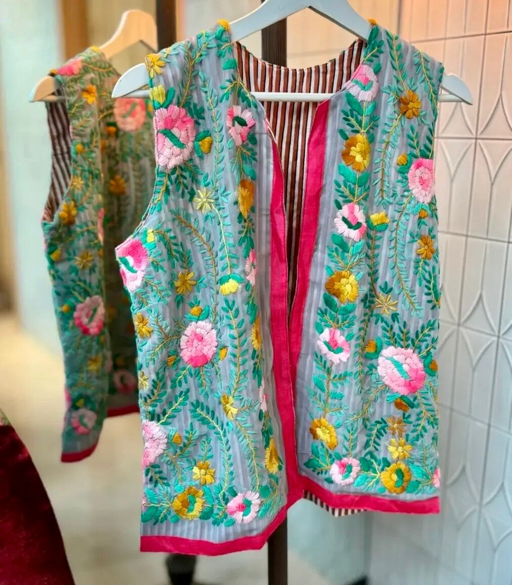 vintage silk chiffon full embroidery vest