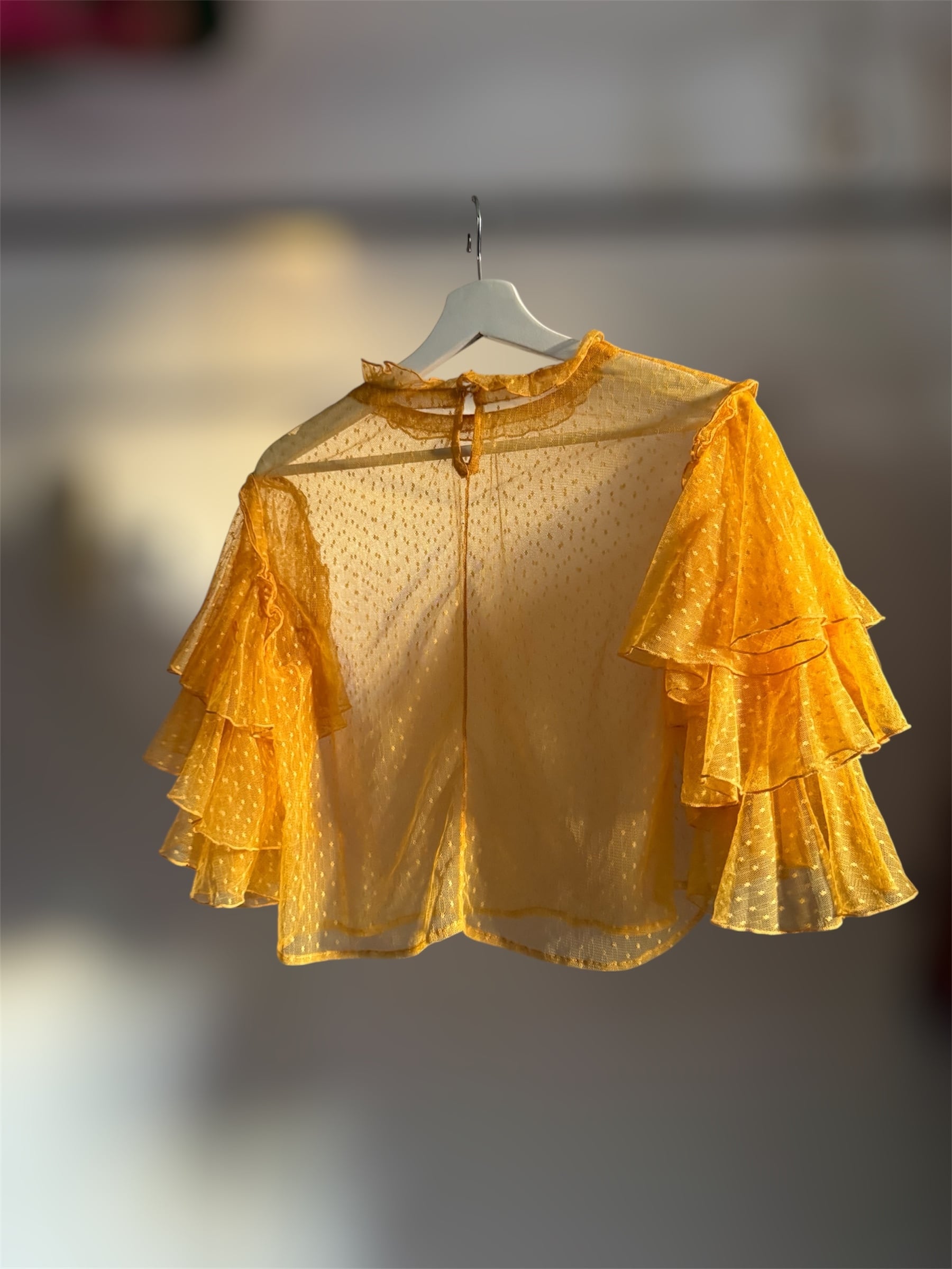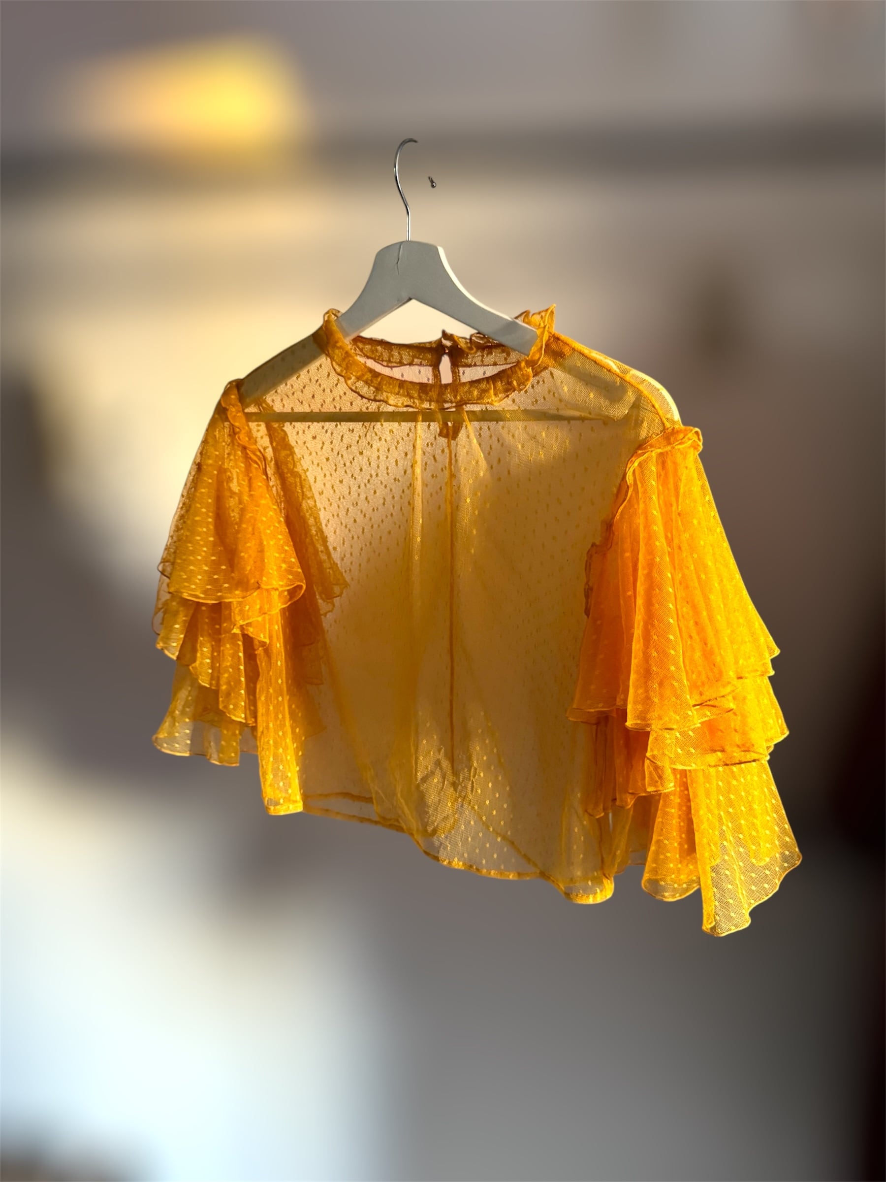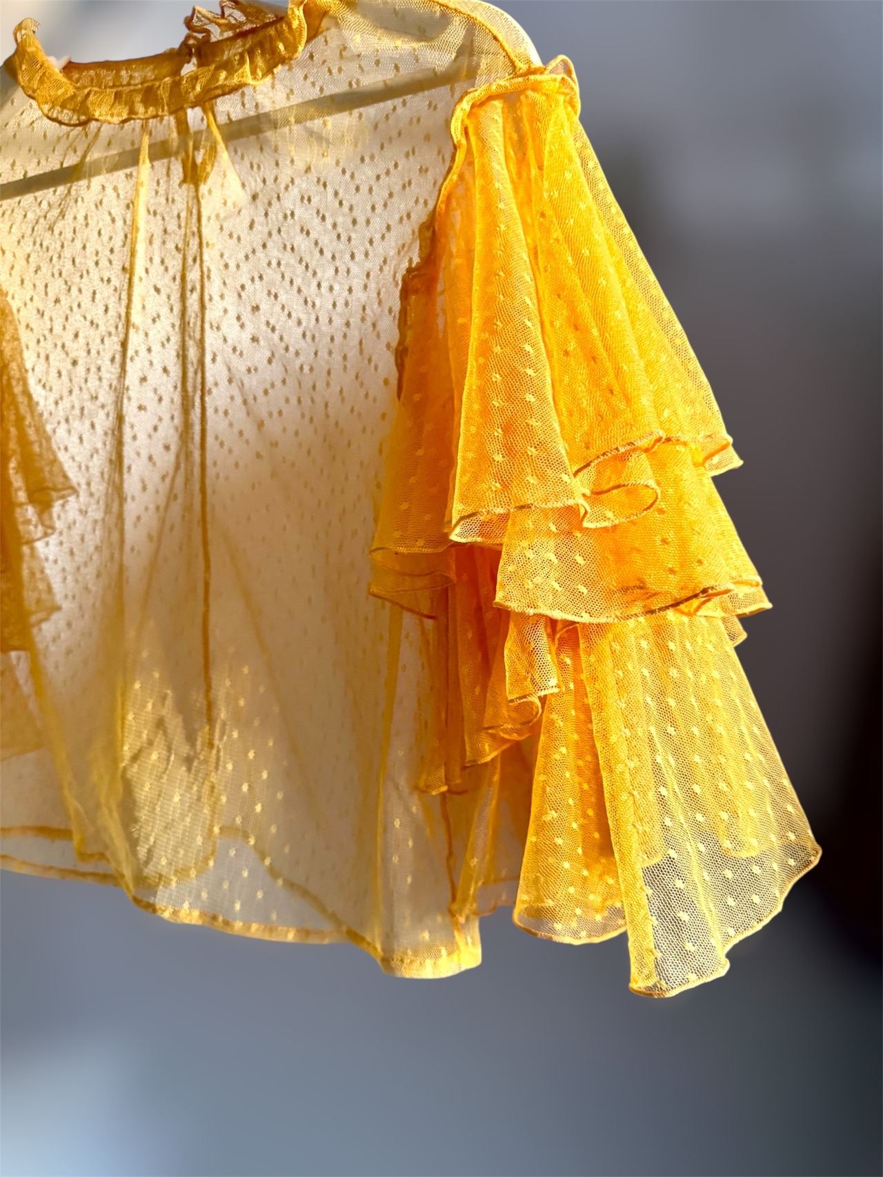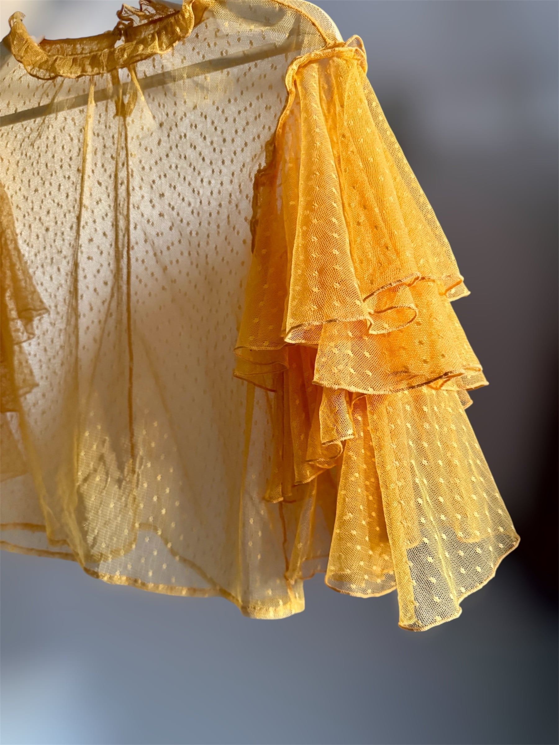ハンドメイド ティアード スリーブ パワーネット トップス