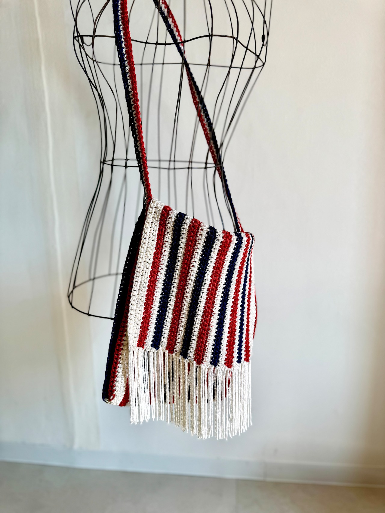 ユーロ ヴィンテージ ハンドメイド フリンジ コード バッグ