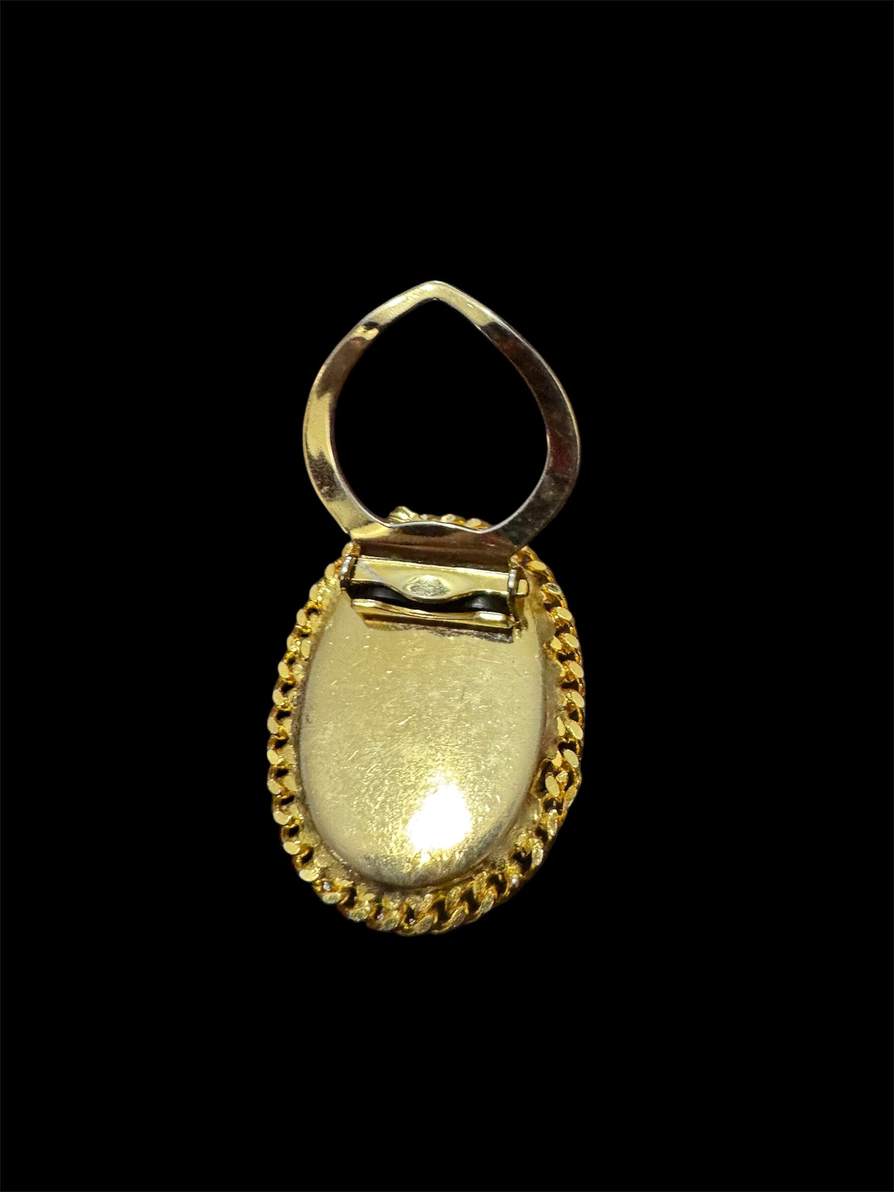 French vintage pink marble stone scarf ring / pendant head