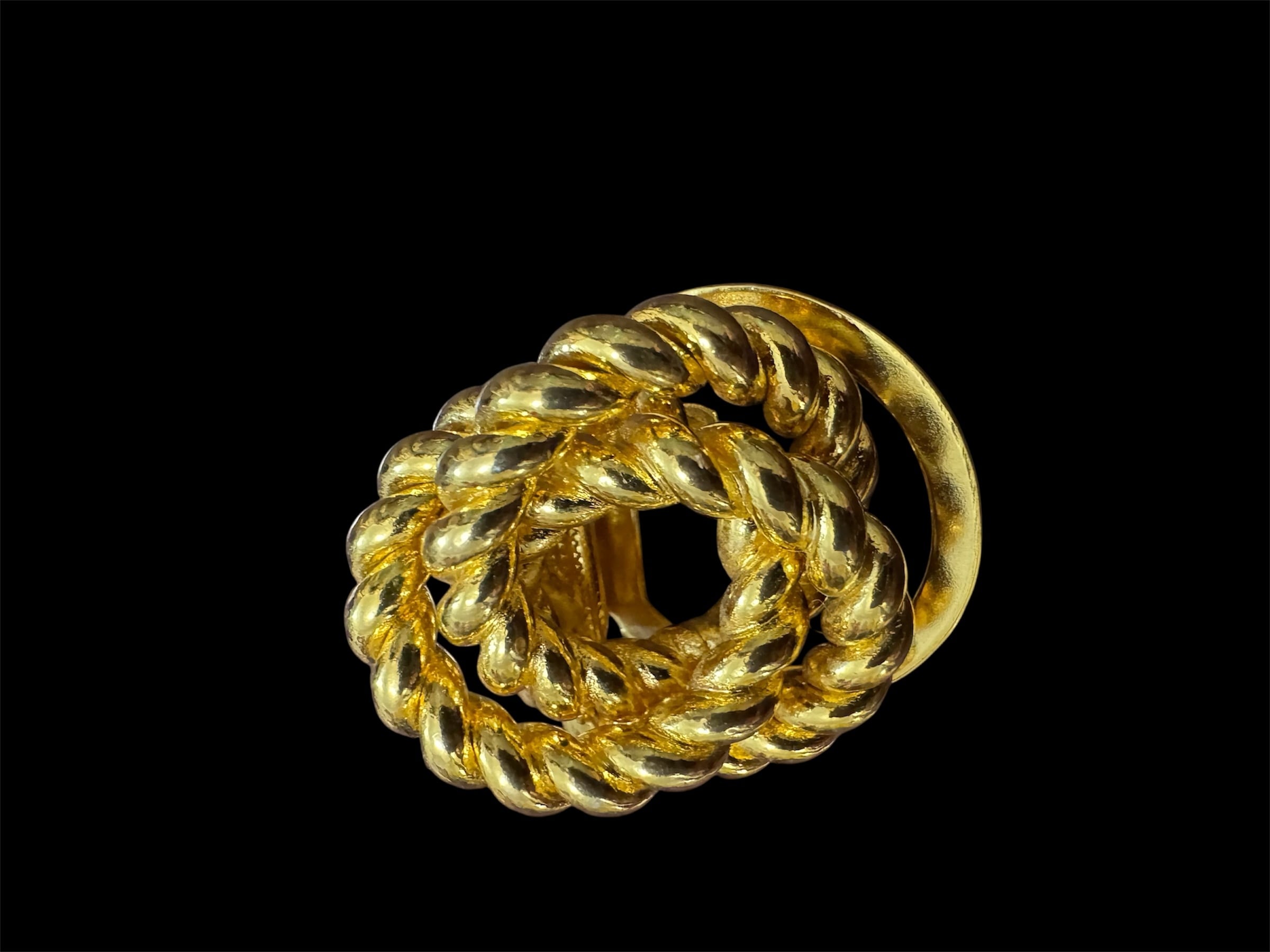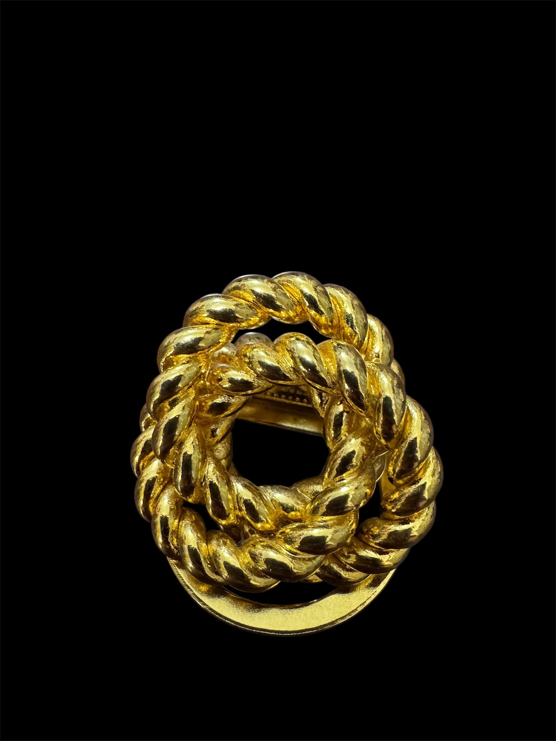 ぐるぐるっとロープが巻きついたデザインのスカーフ リングです。