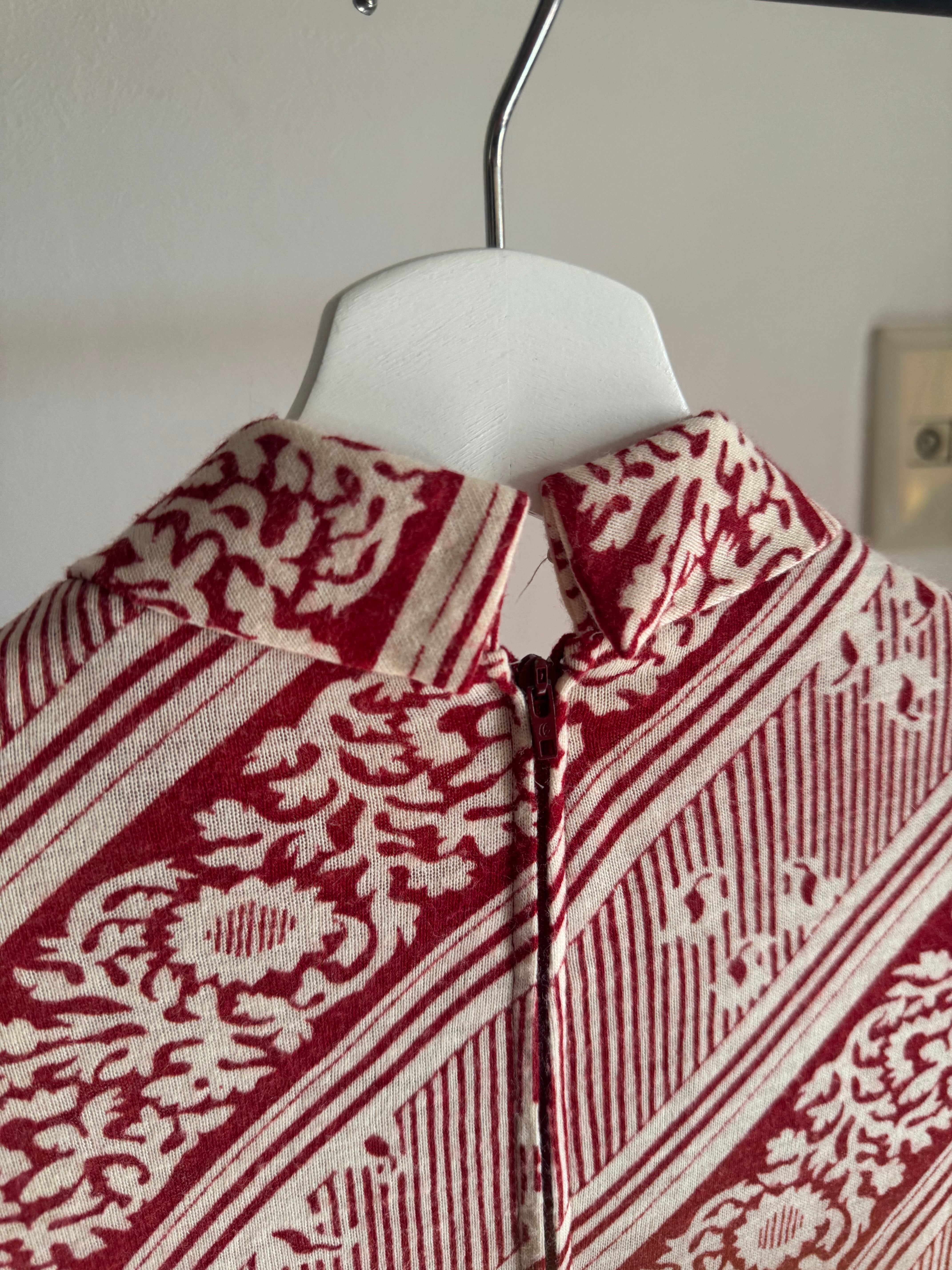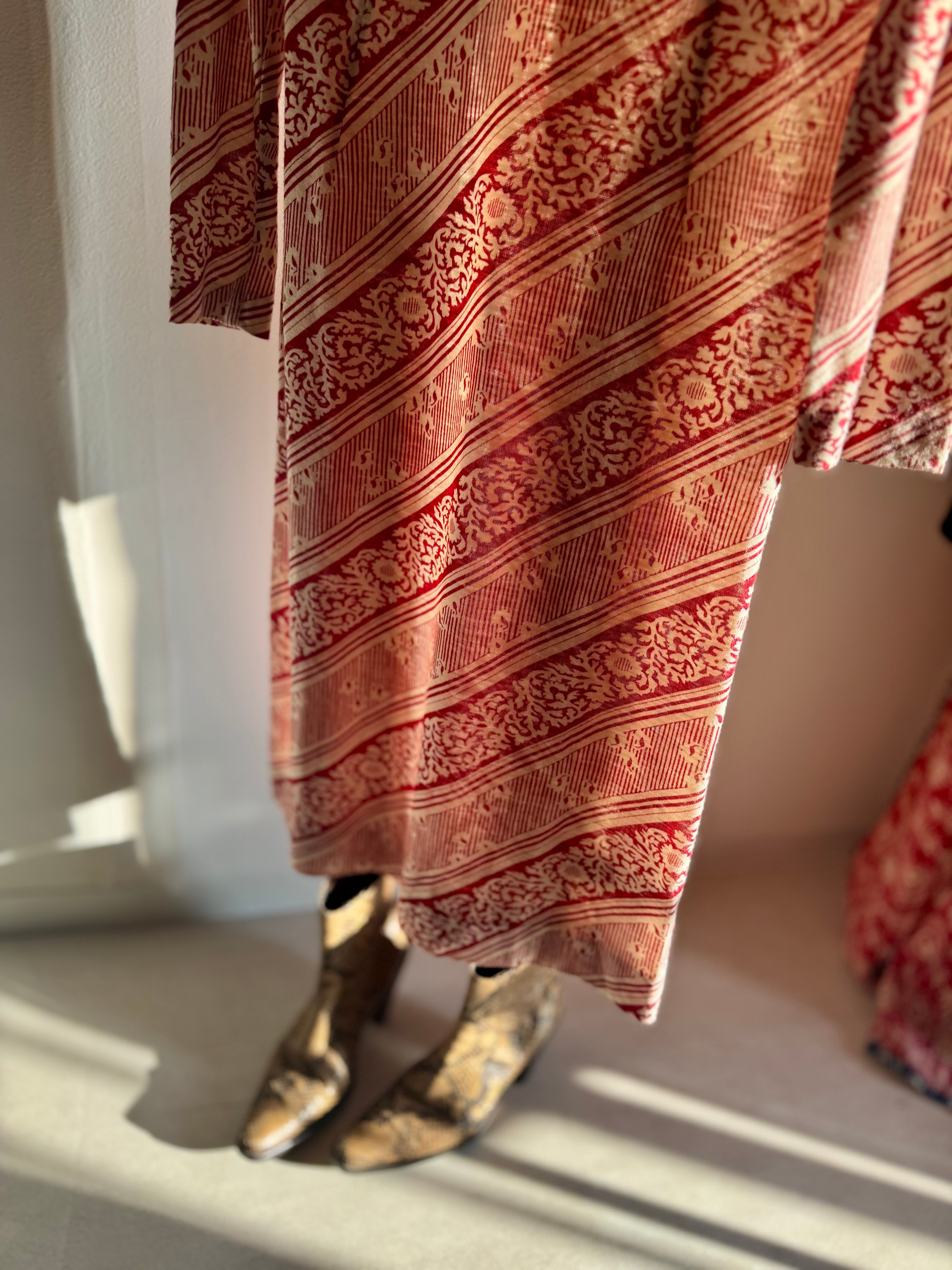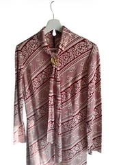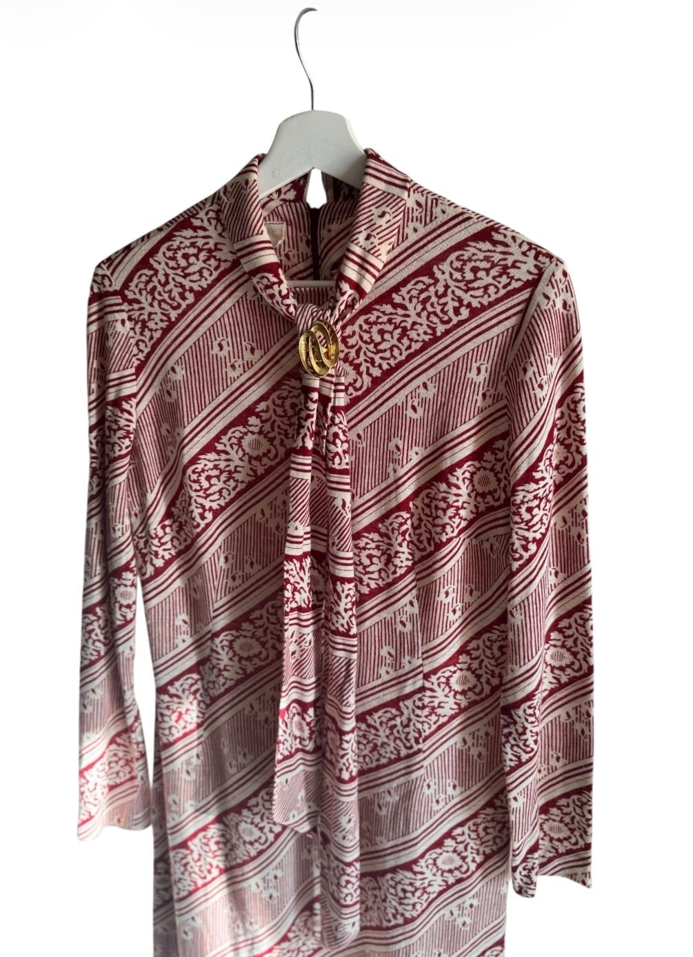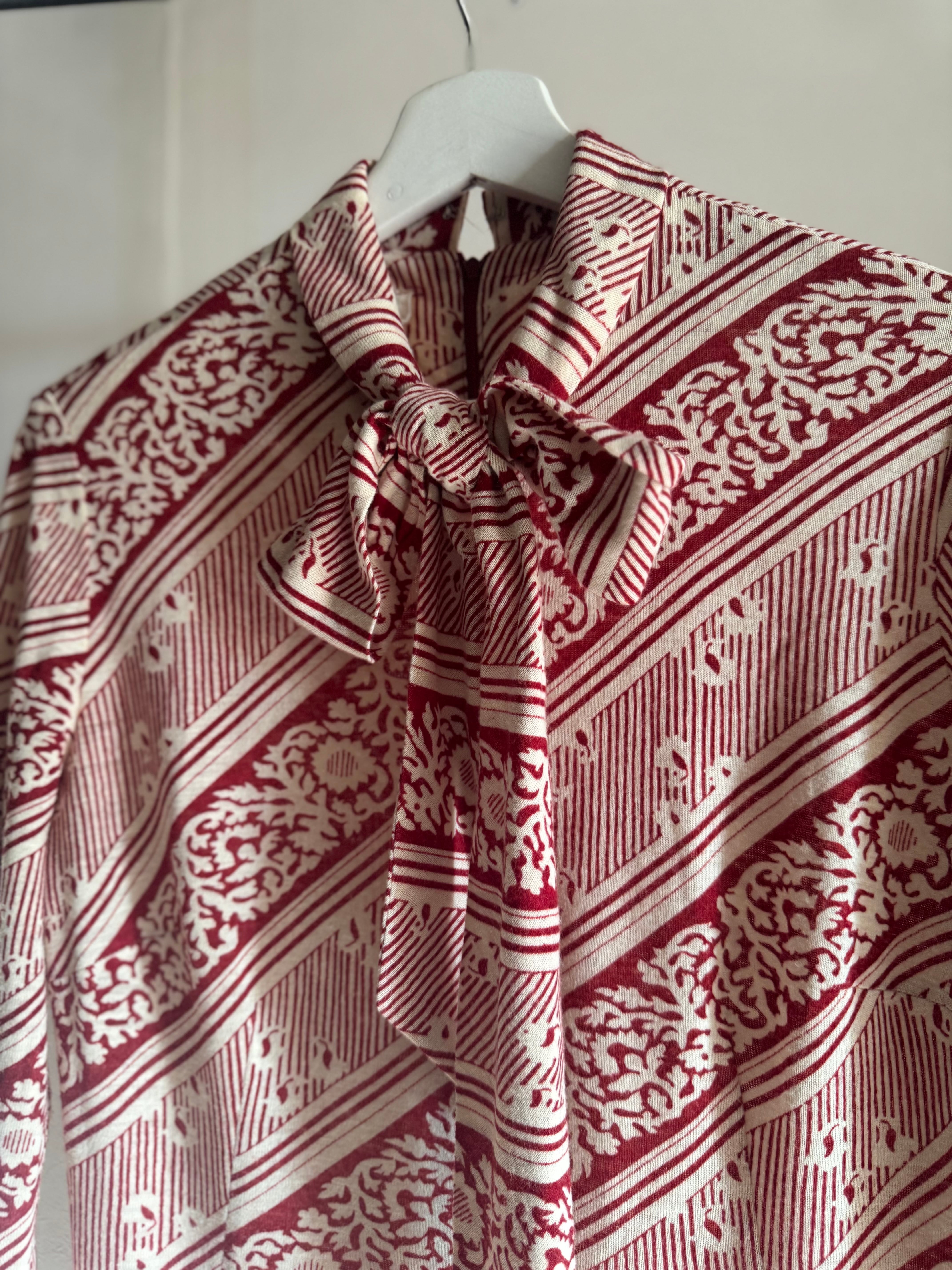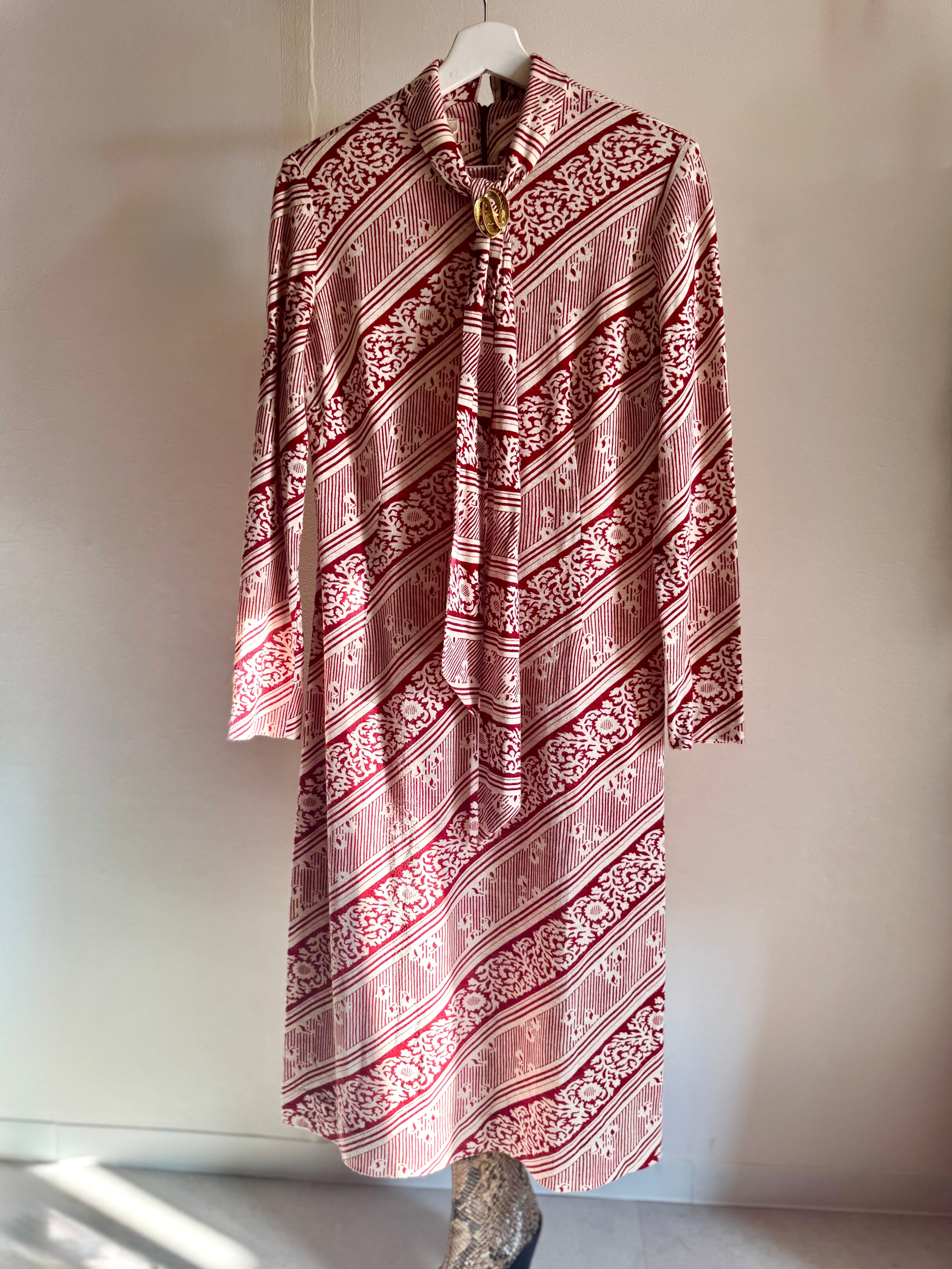 70s US ヴィンテージ バイアス プリント ボウタイ ワンピース