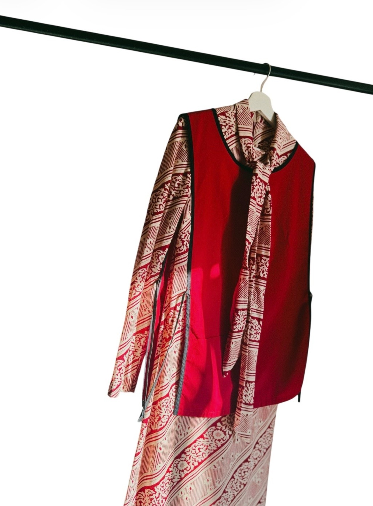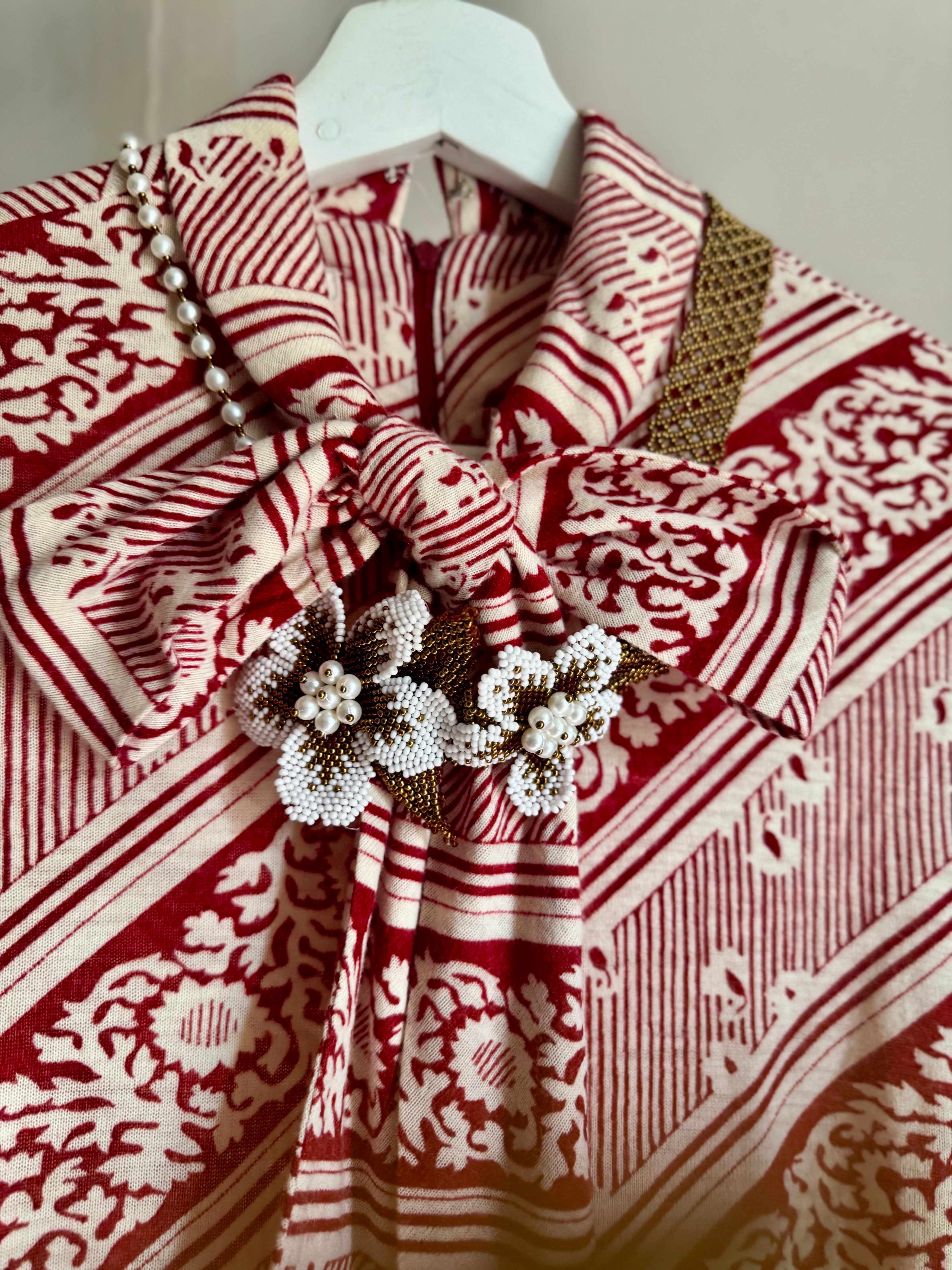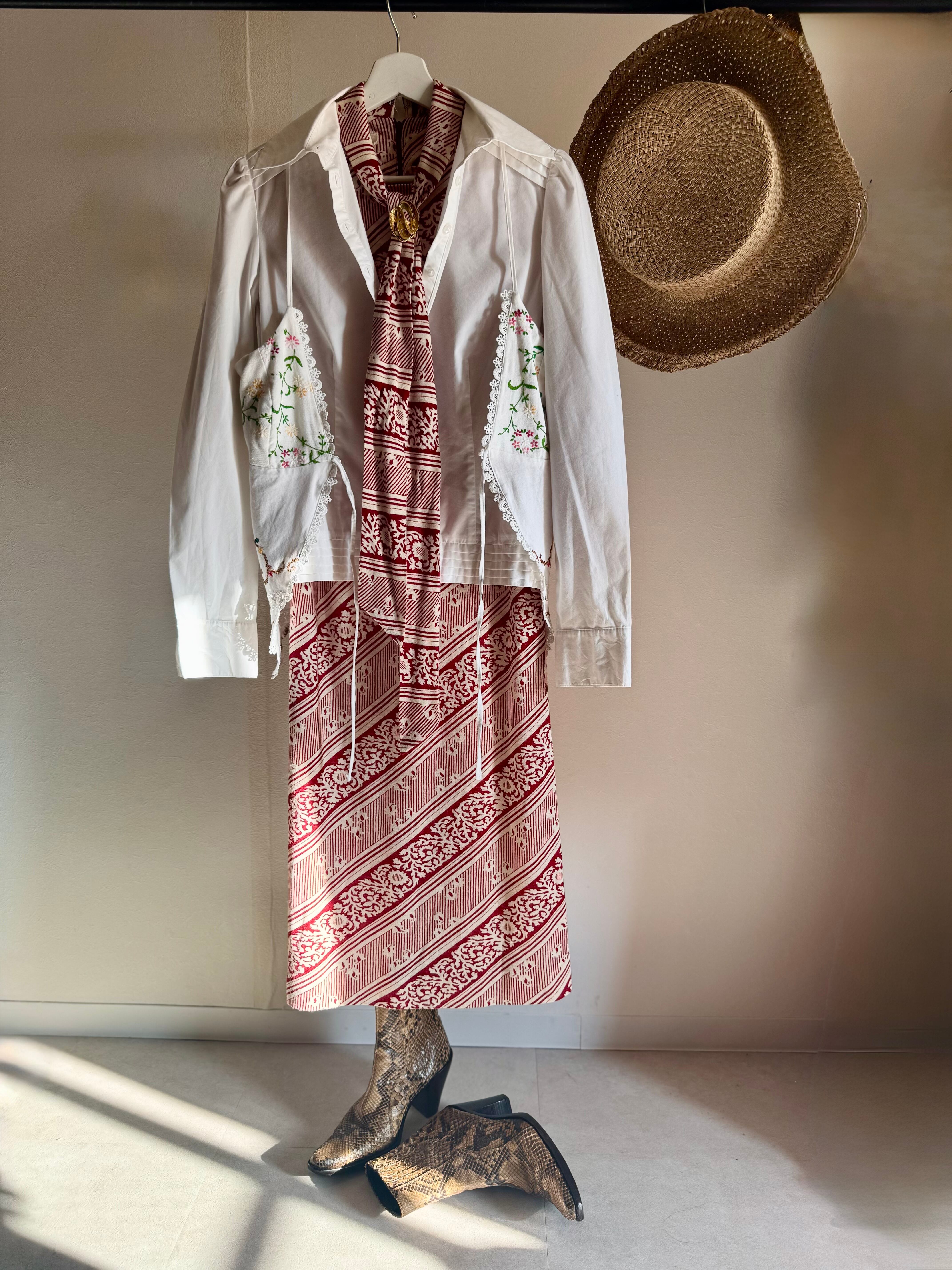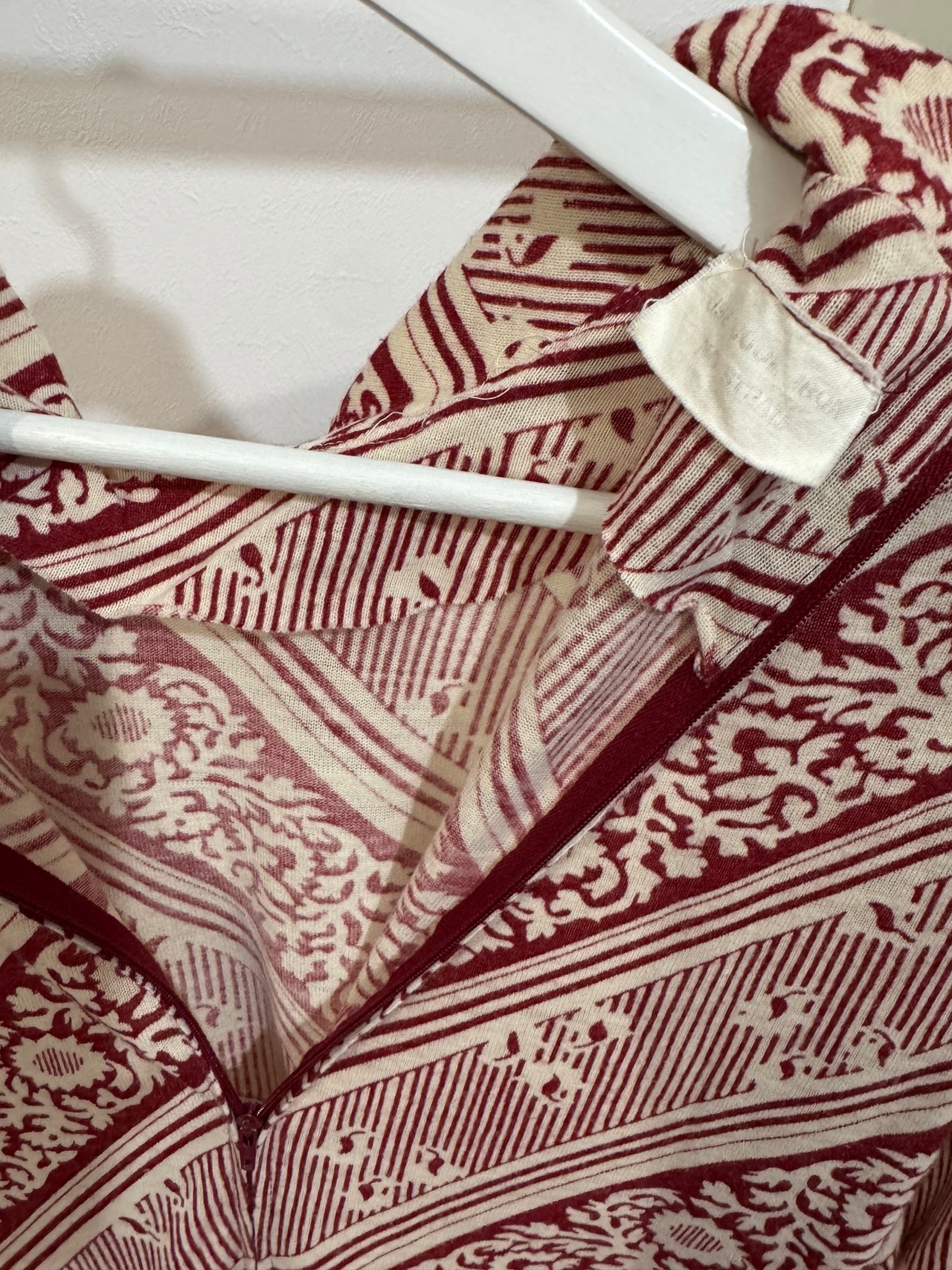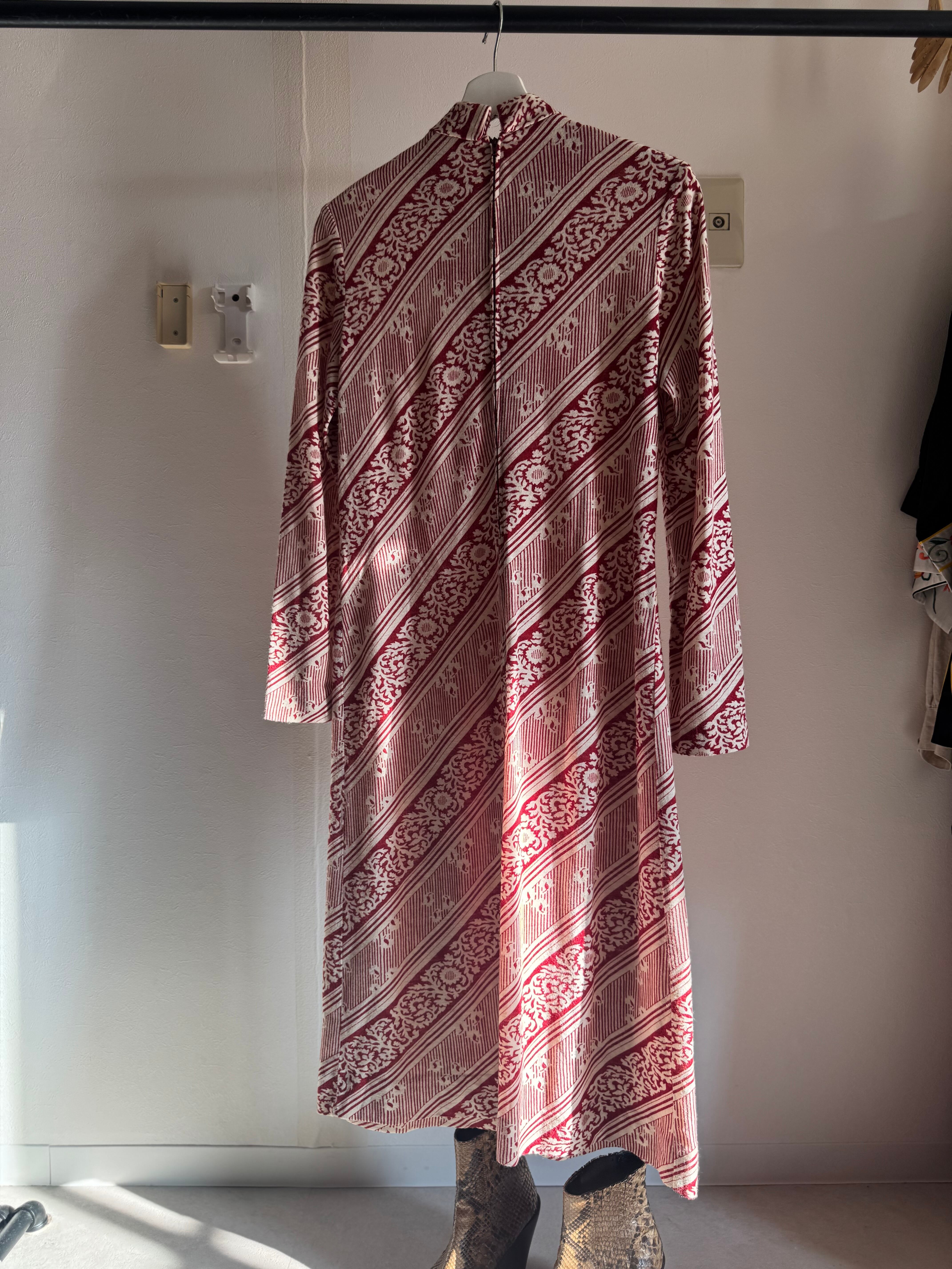 70s US ヴィンテージ バイアス プリント ボウタイ ワンピース