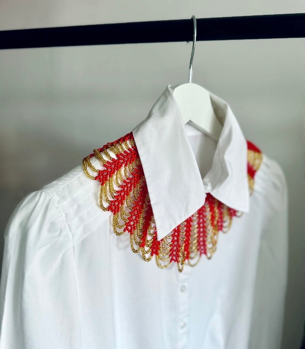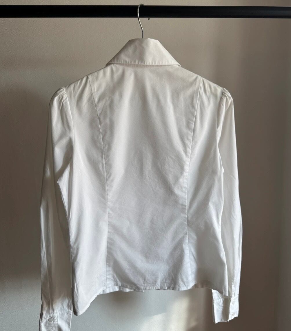 デザイン性の高い白ブラウス