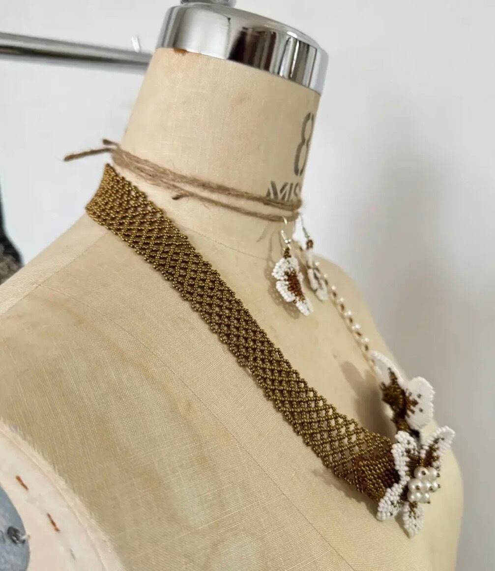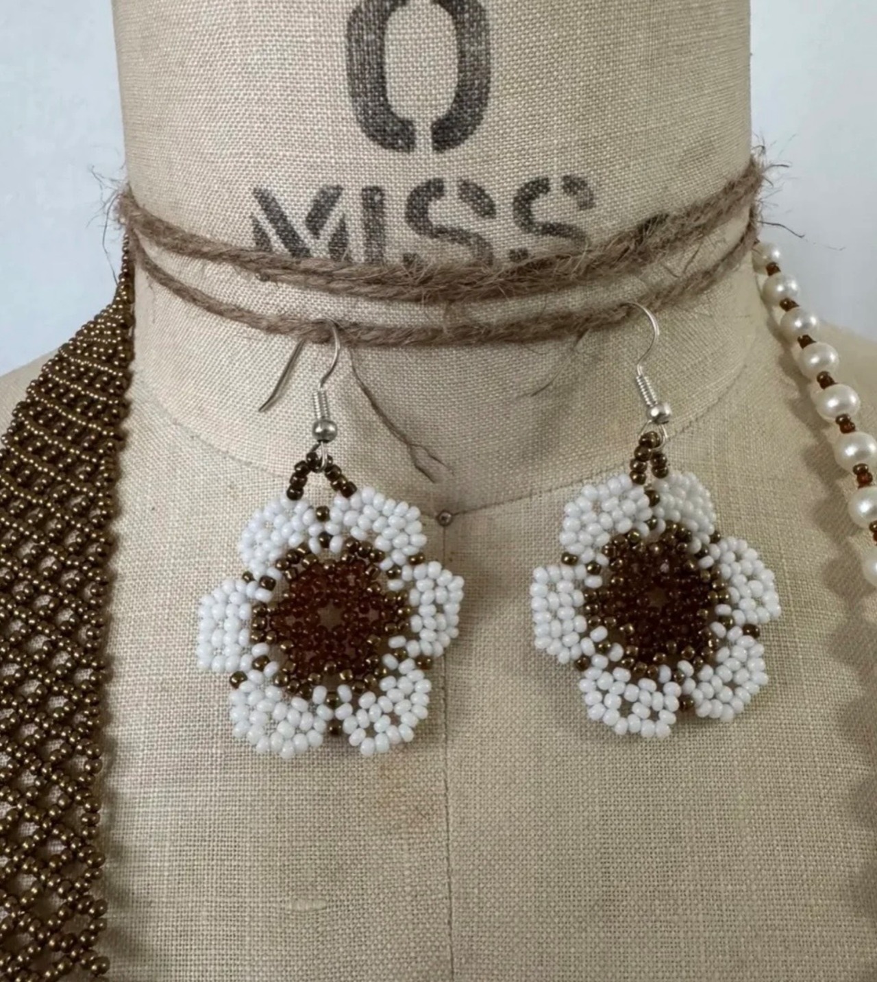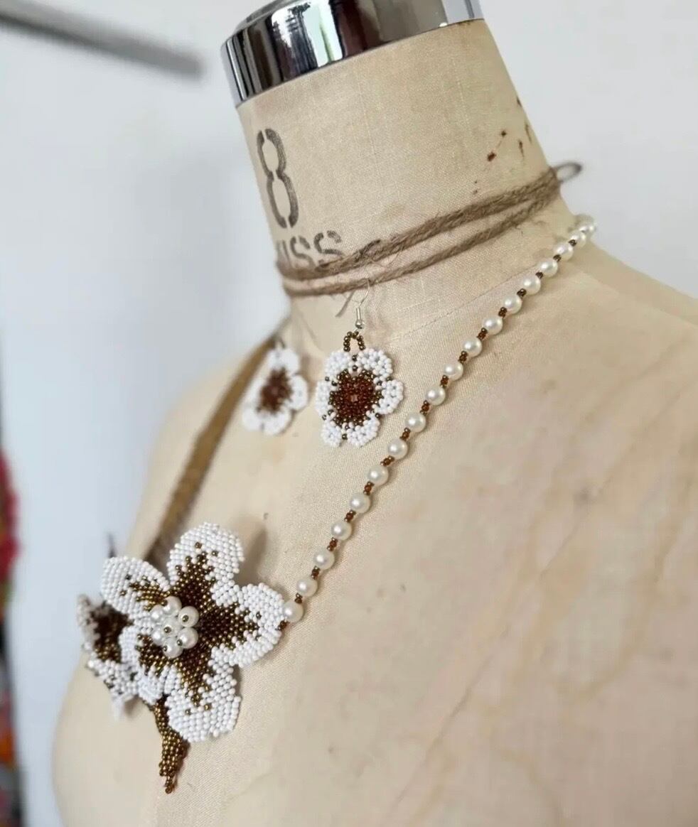 Mexican vintage Asymmetry Design Beads necklace & Pierce _ Flower , dead stock