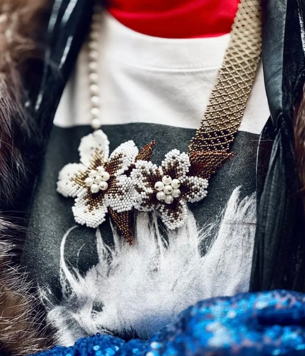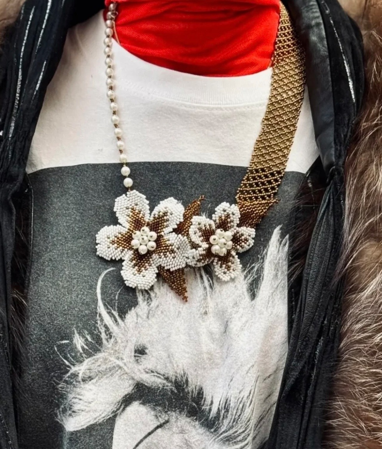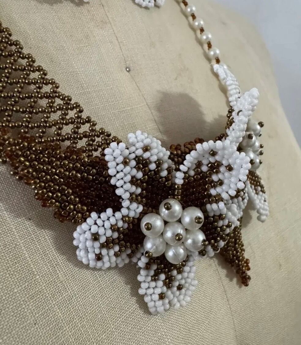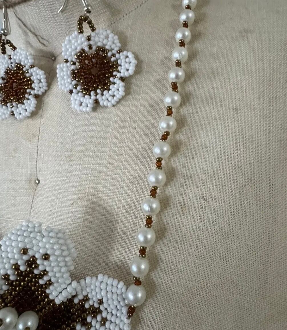 メキシカン ヴィンテージ アシンメトリー デザイン ビーズ ネックレス & ピアス_ フラワー