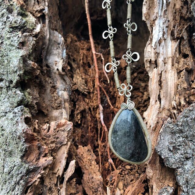 大きなブラック ストーンはラメが入った様な表情のある大変珍しい天然石