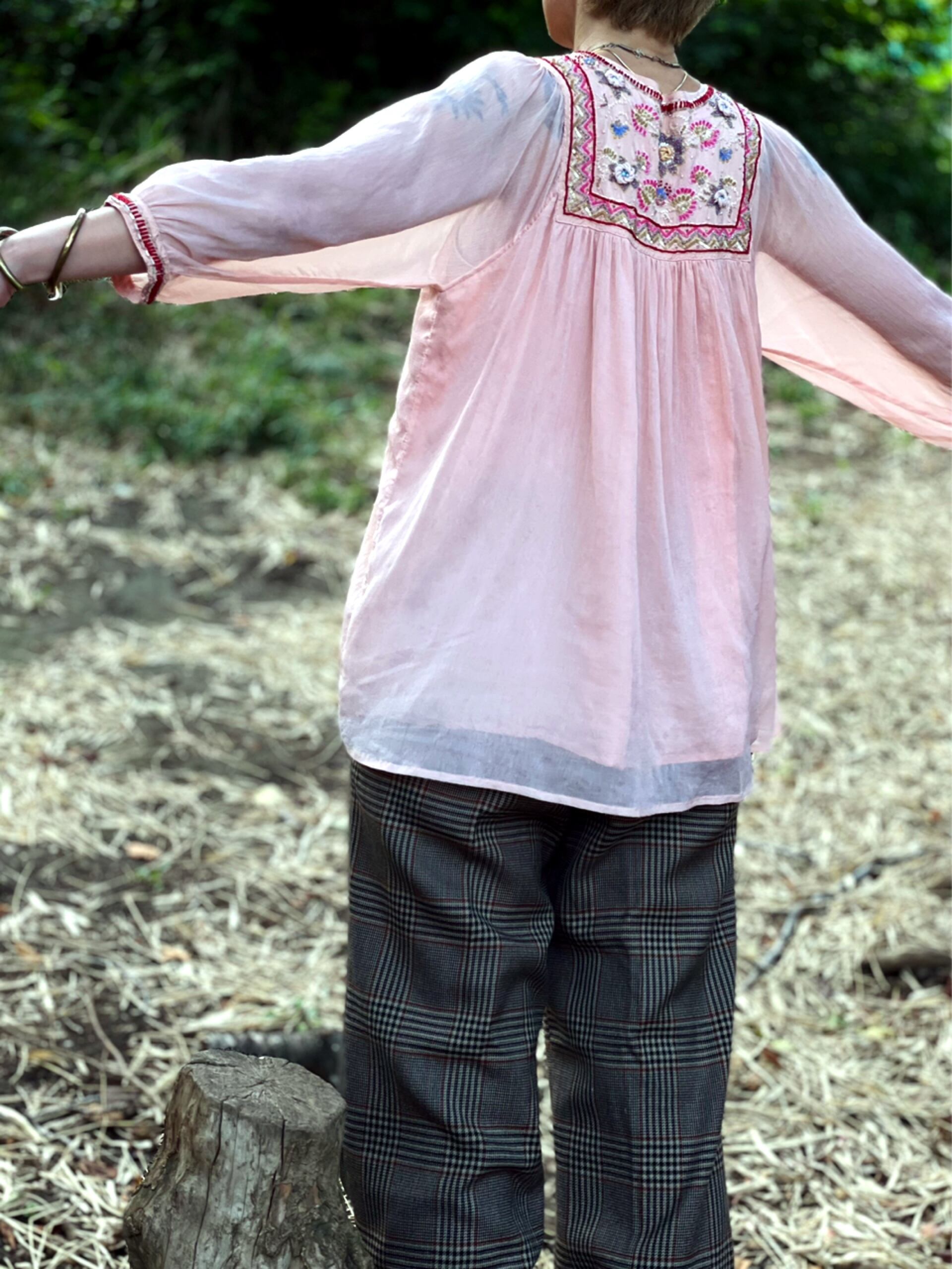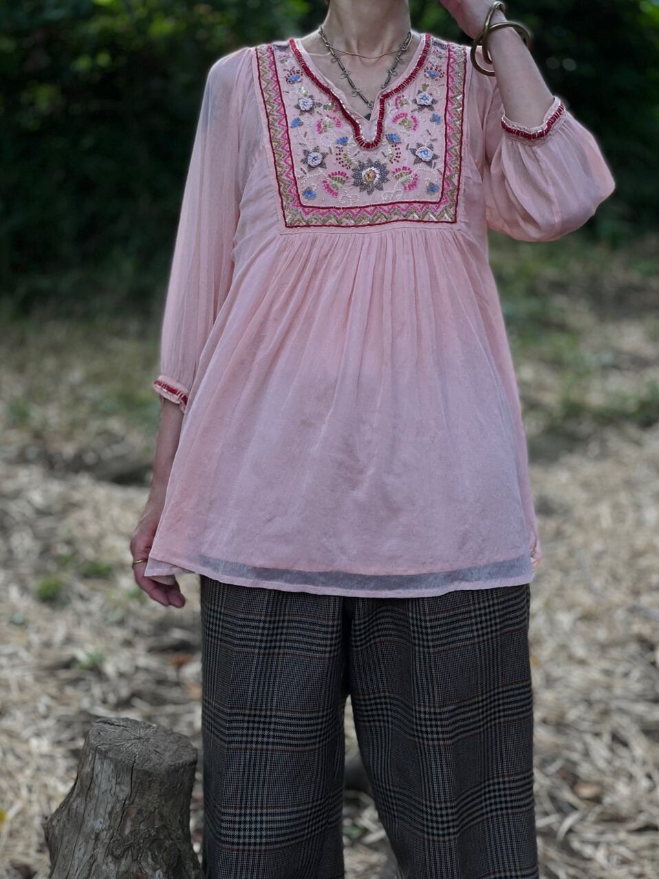 フレンチ ヴィンテージ ビーズ刺繍 シフォン ブラウス