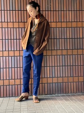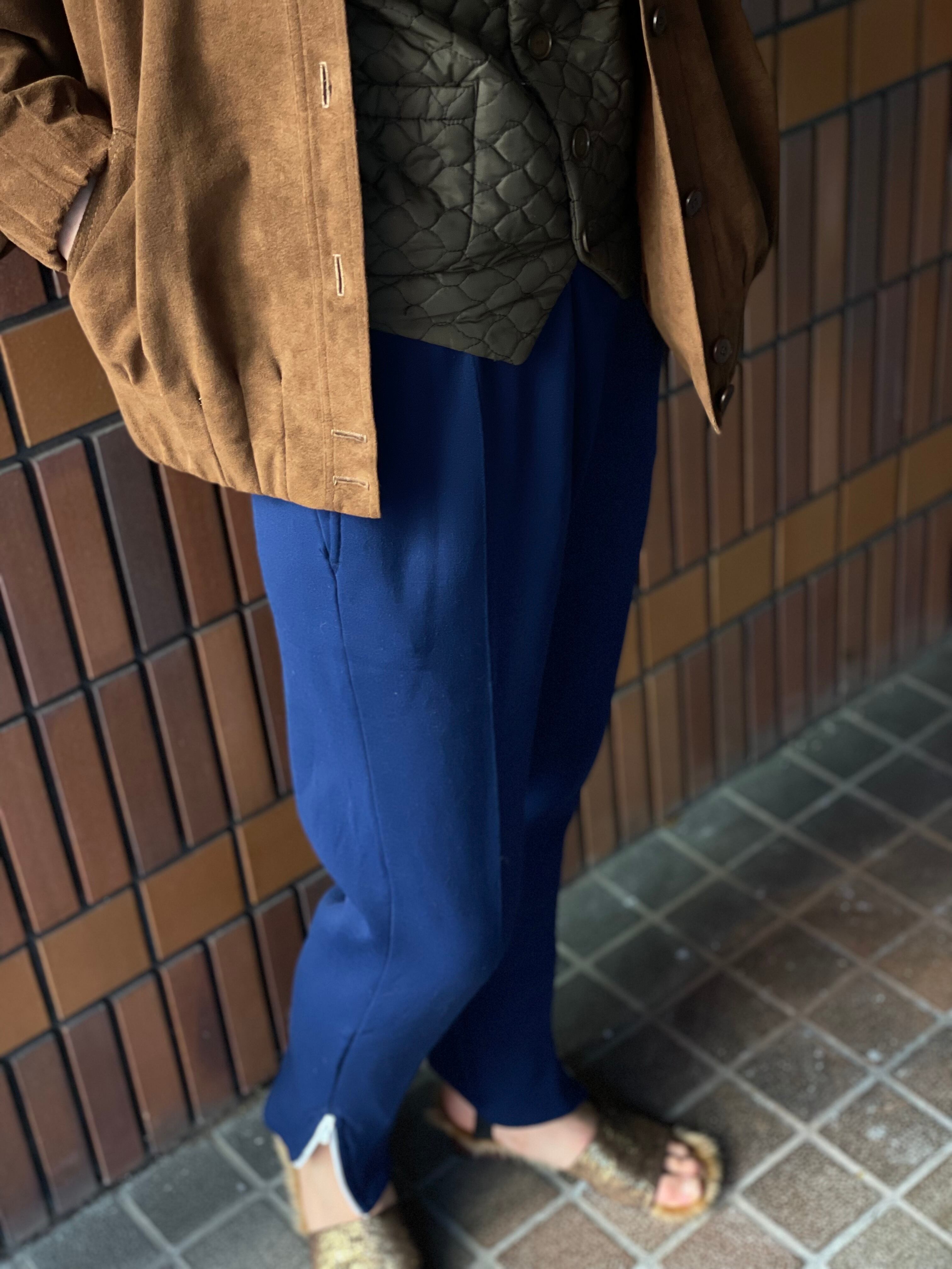 裾スリットのテーパード パンツと ジャージの抜け感の良いとこどり 、という雰囲気。