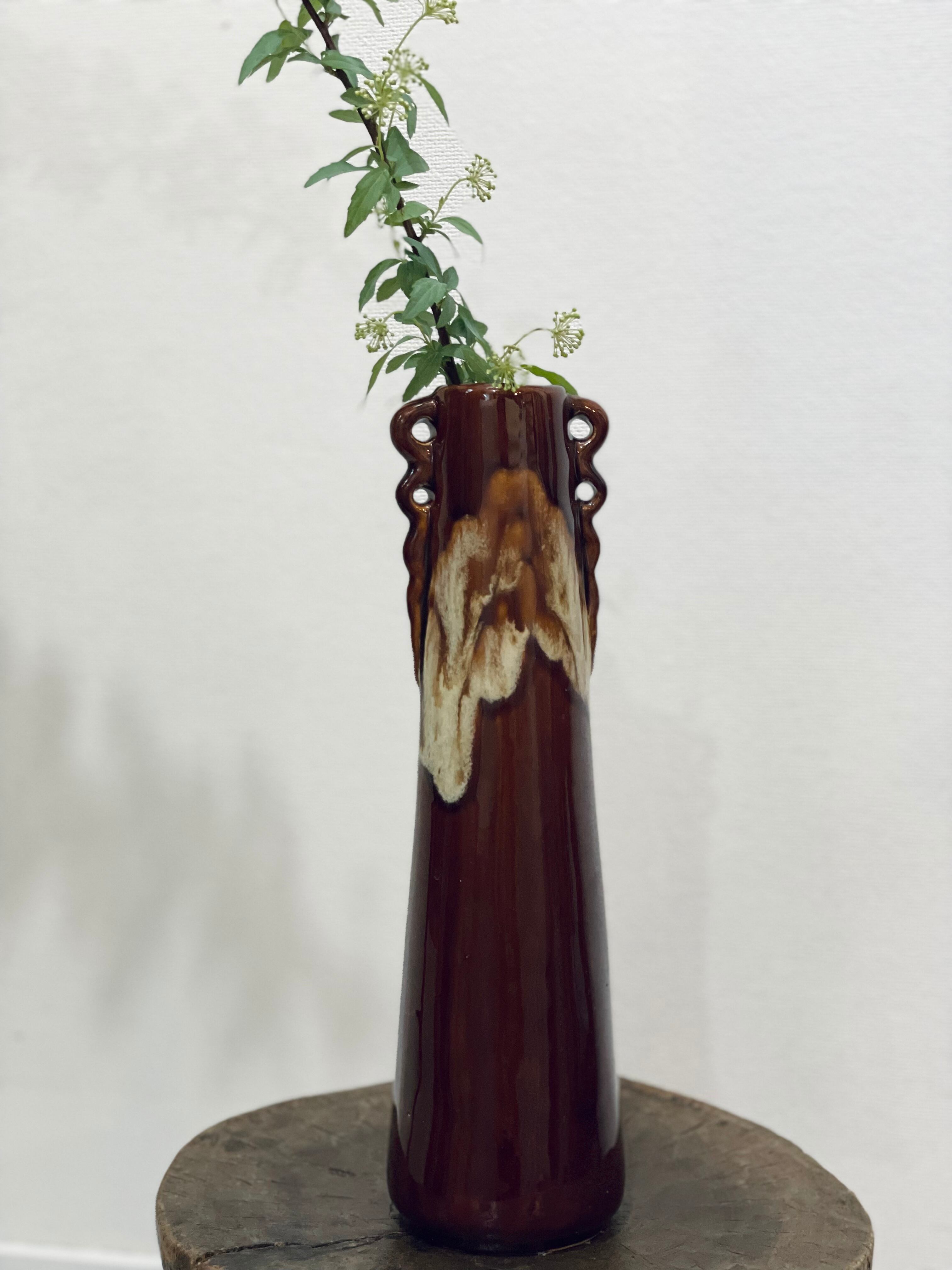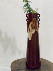 1960s Poland vintage vase running glaze Polish Art Pottery