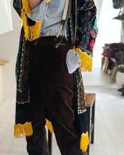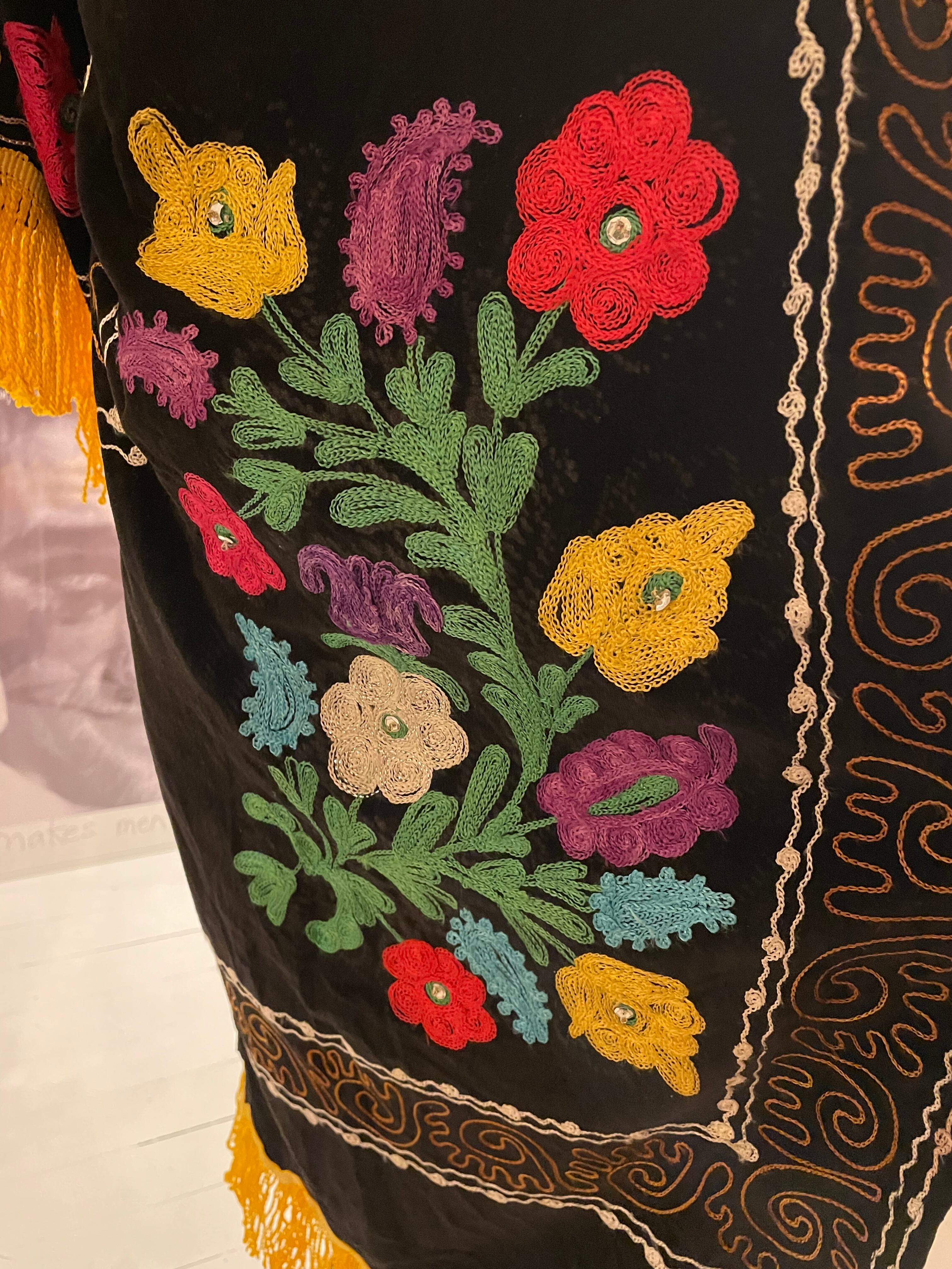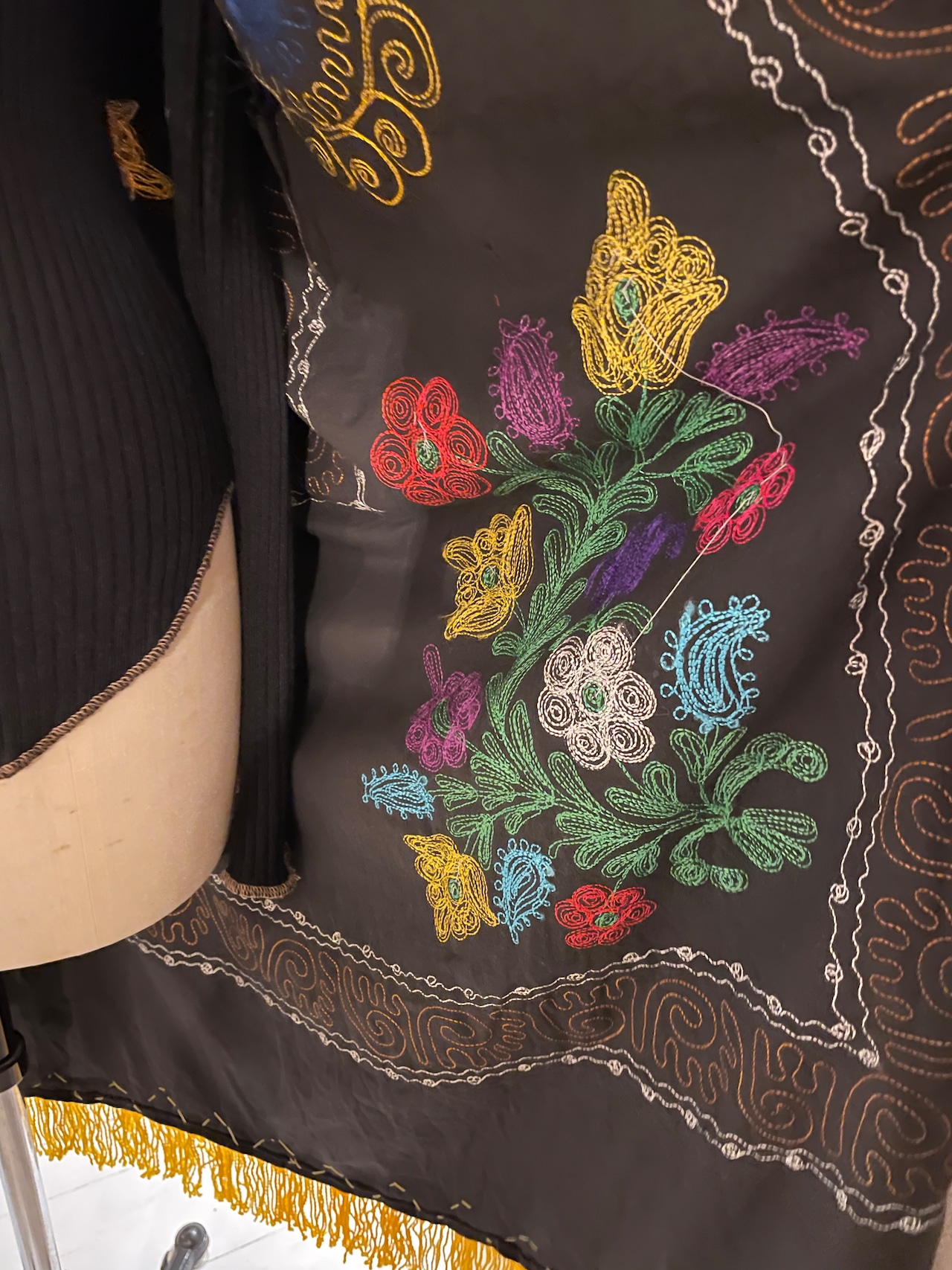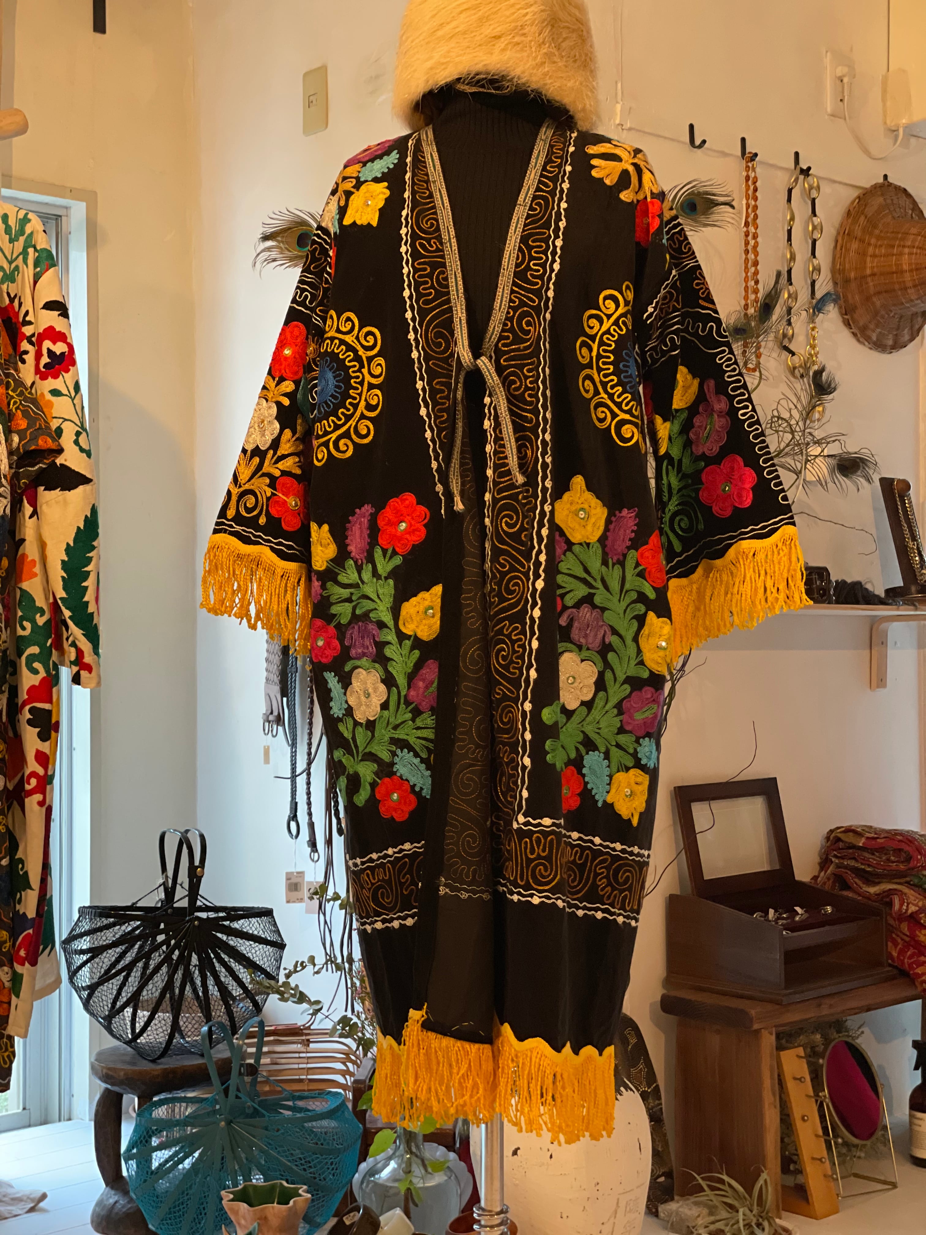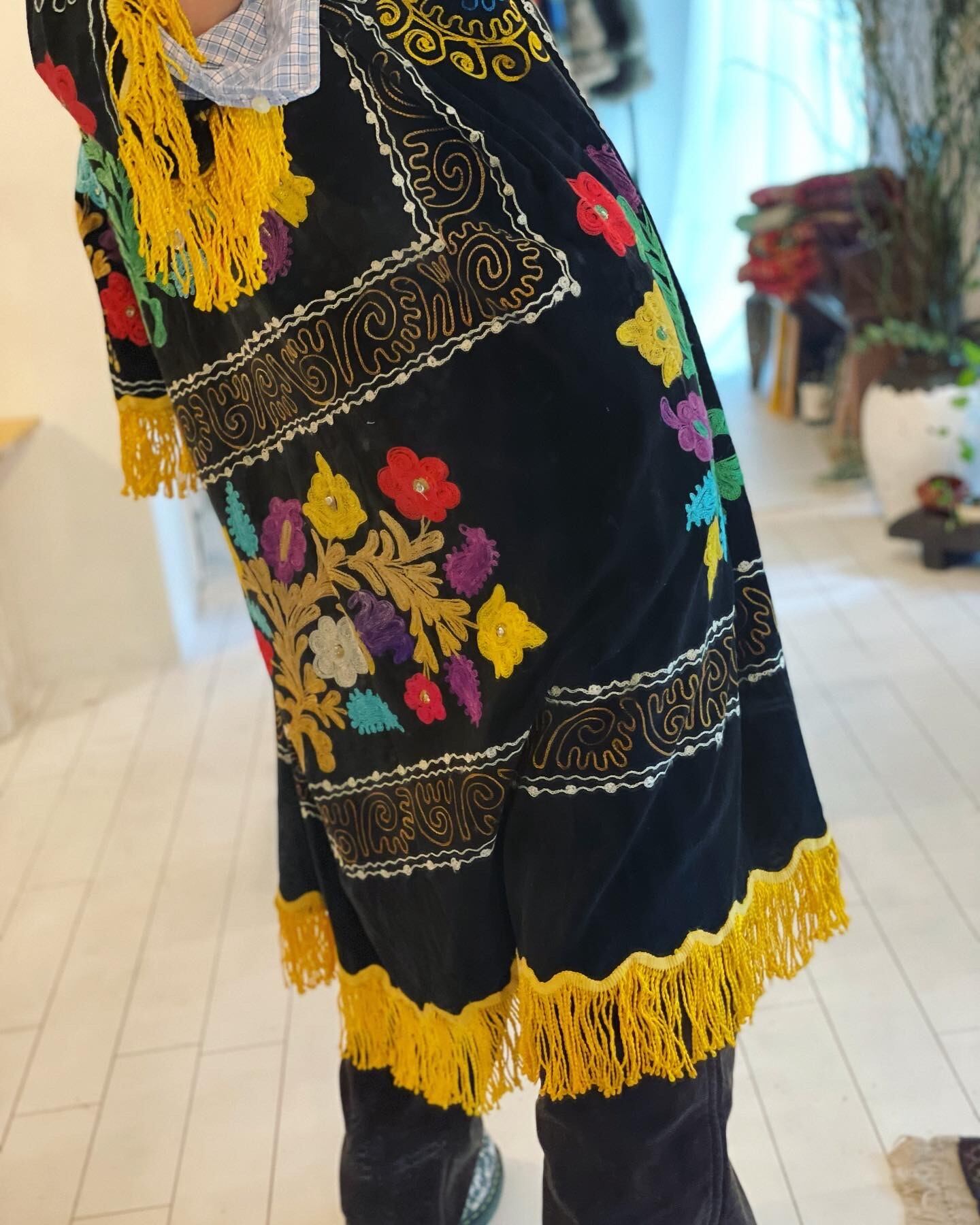 1980s  ウズベク ヴィンテージ ハンドメイド刺繍 スザニ ローブ _ ベルベット フリンジ