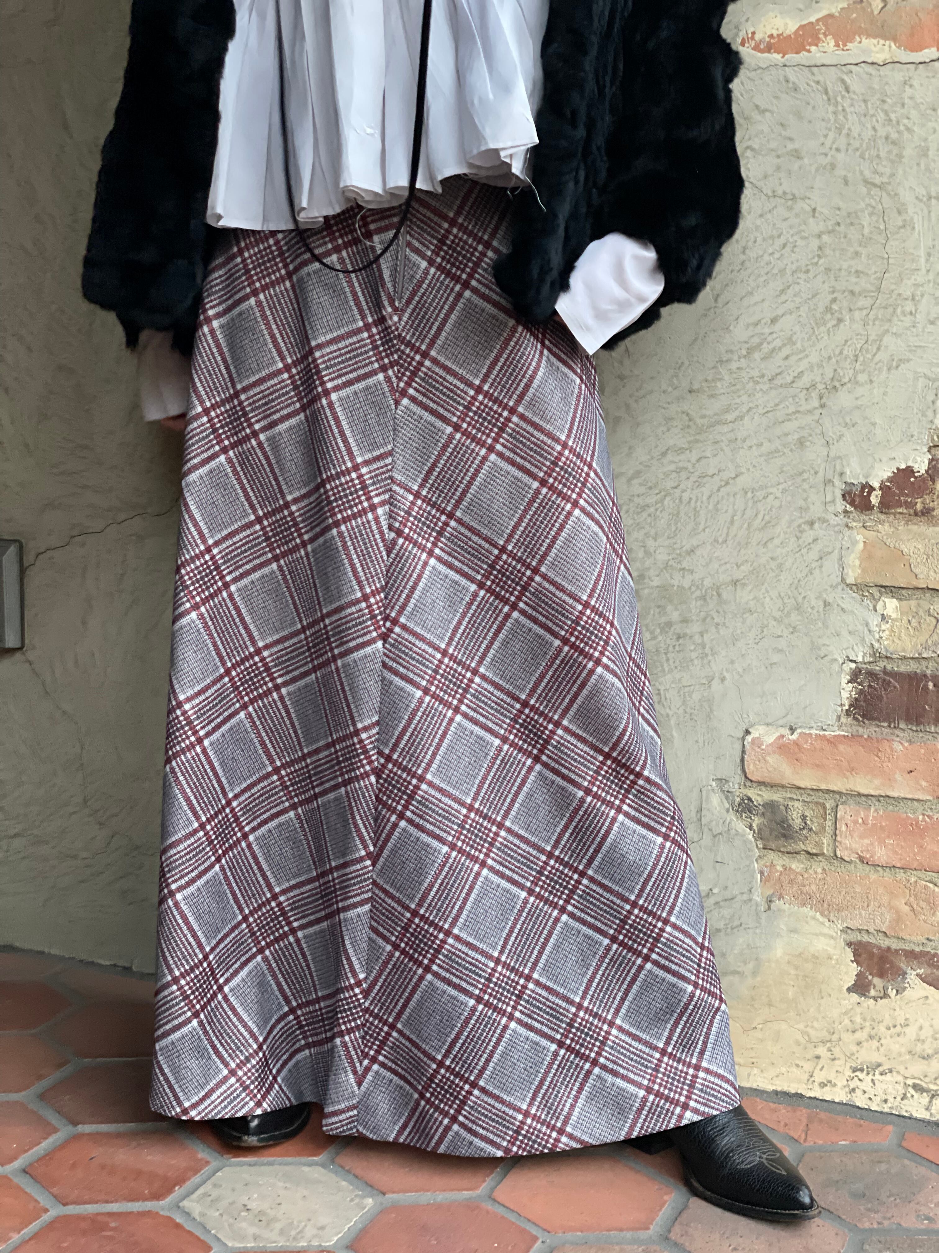 1970〜80s チェック柄 バイアス フレア マキシ スカート