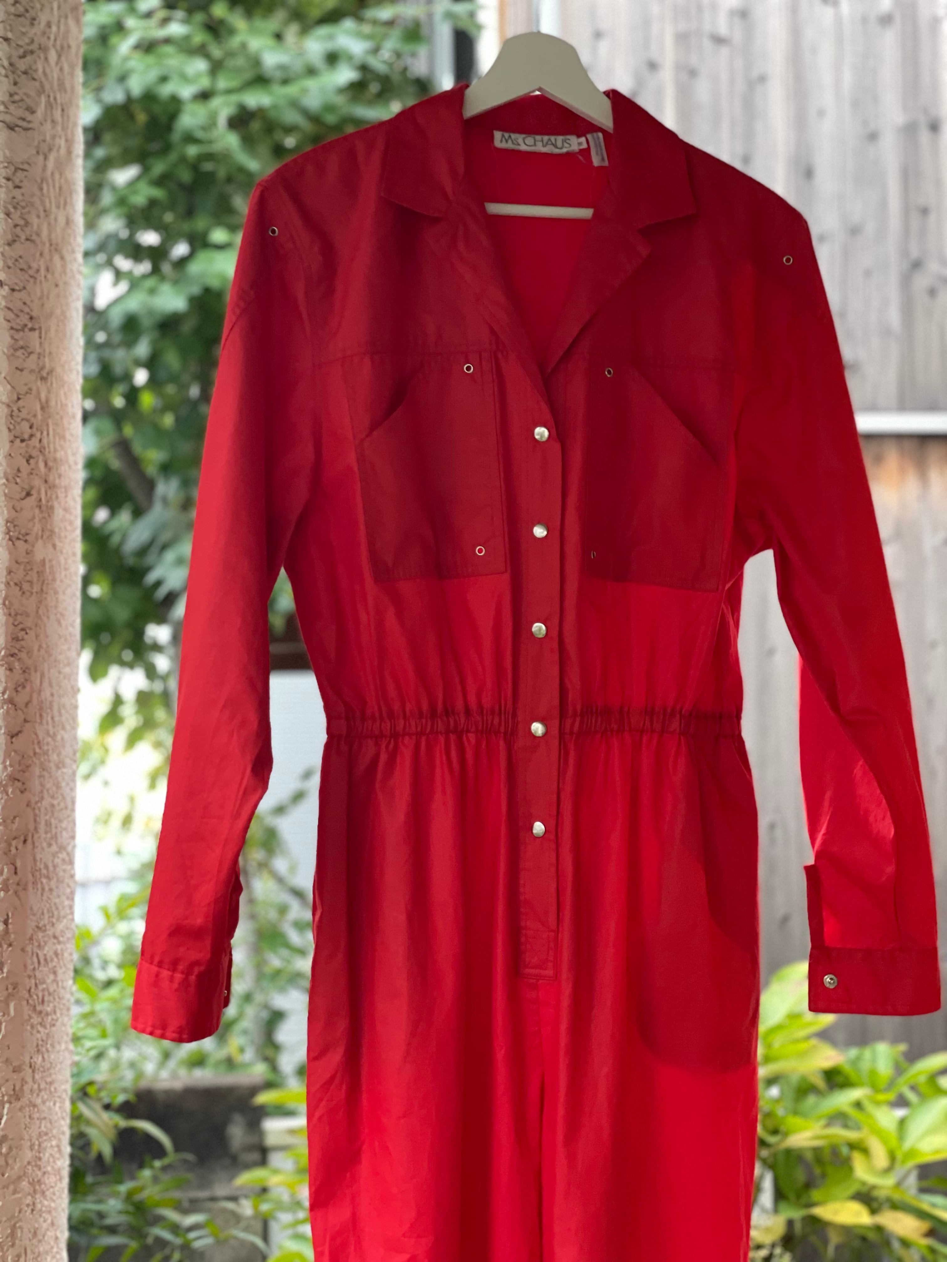 1980s UK vintage RED jumpsuit 1980s UK ヴィンテージ レッド ジャンプスーツ
