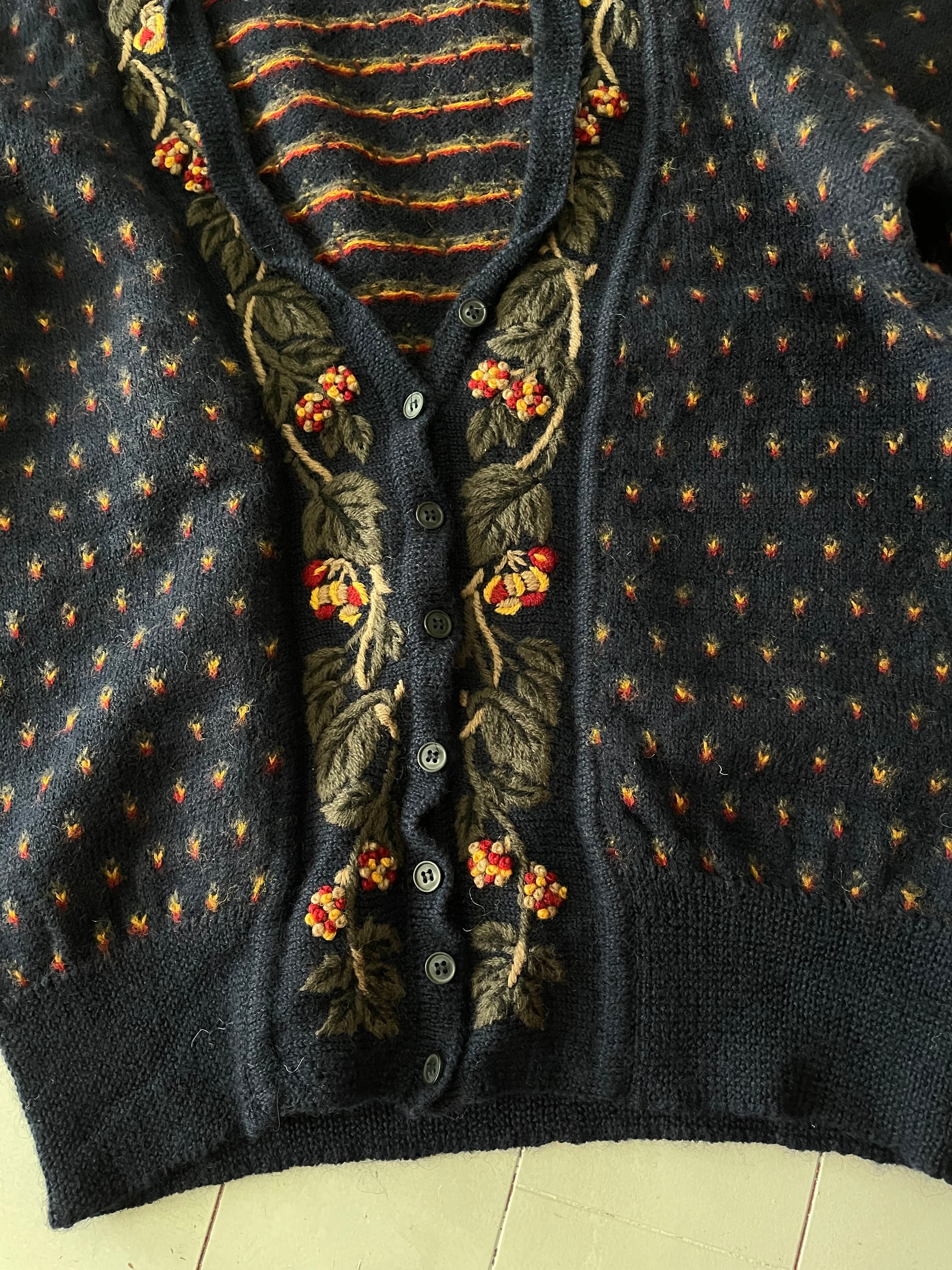 80s jacquard embroidery cardigan