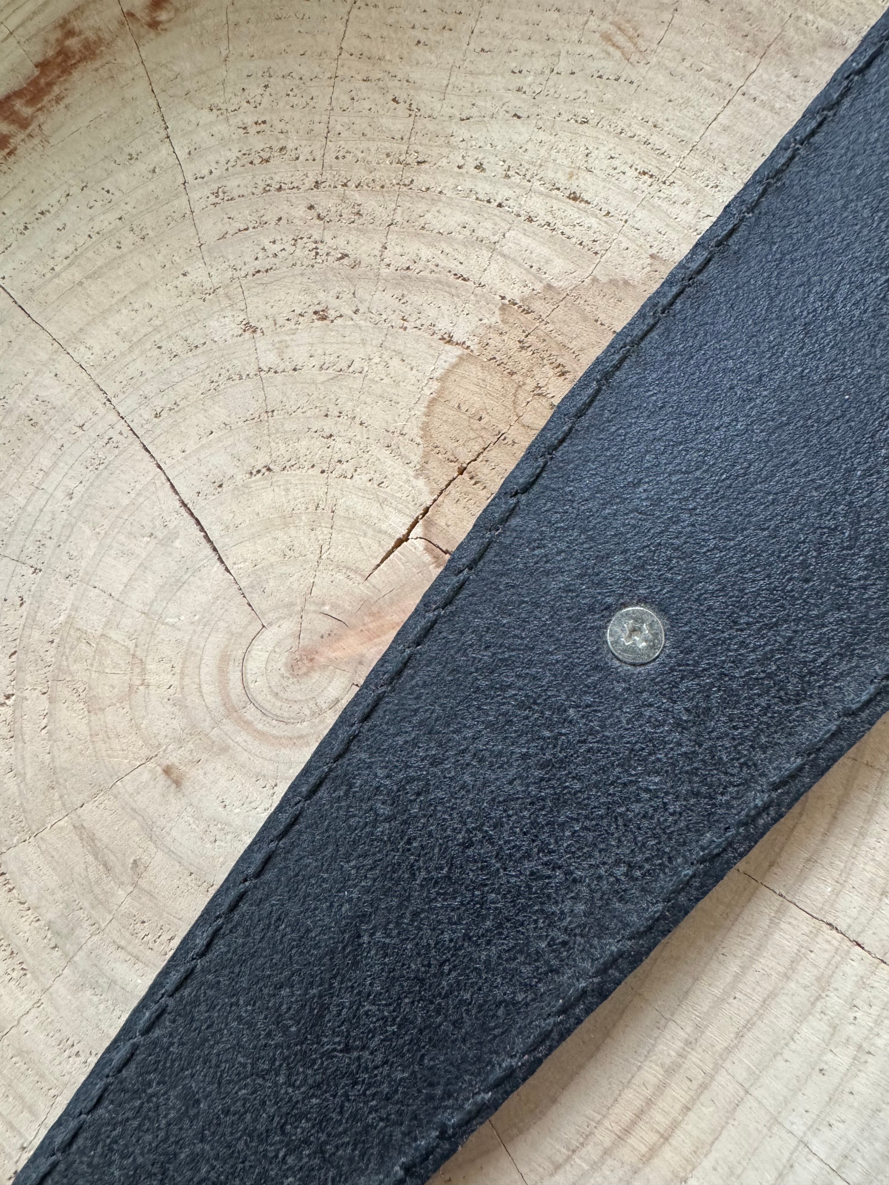 腕に巻き 通す部分のカットの断面までブラックに染めたミニマルなデザインに仕上げました。