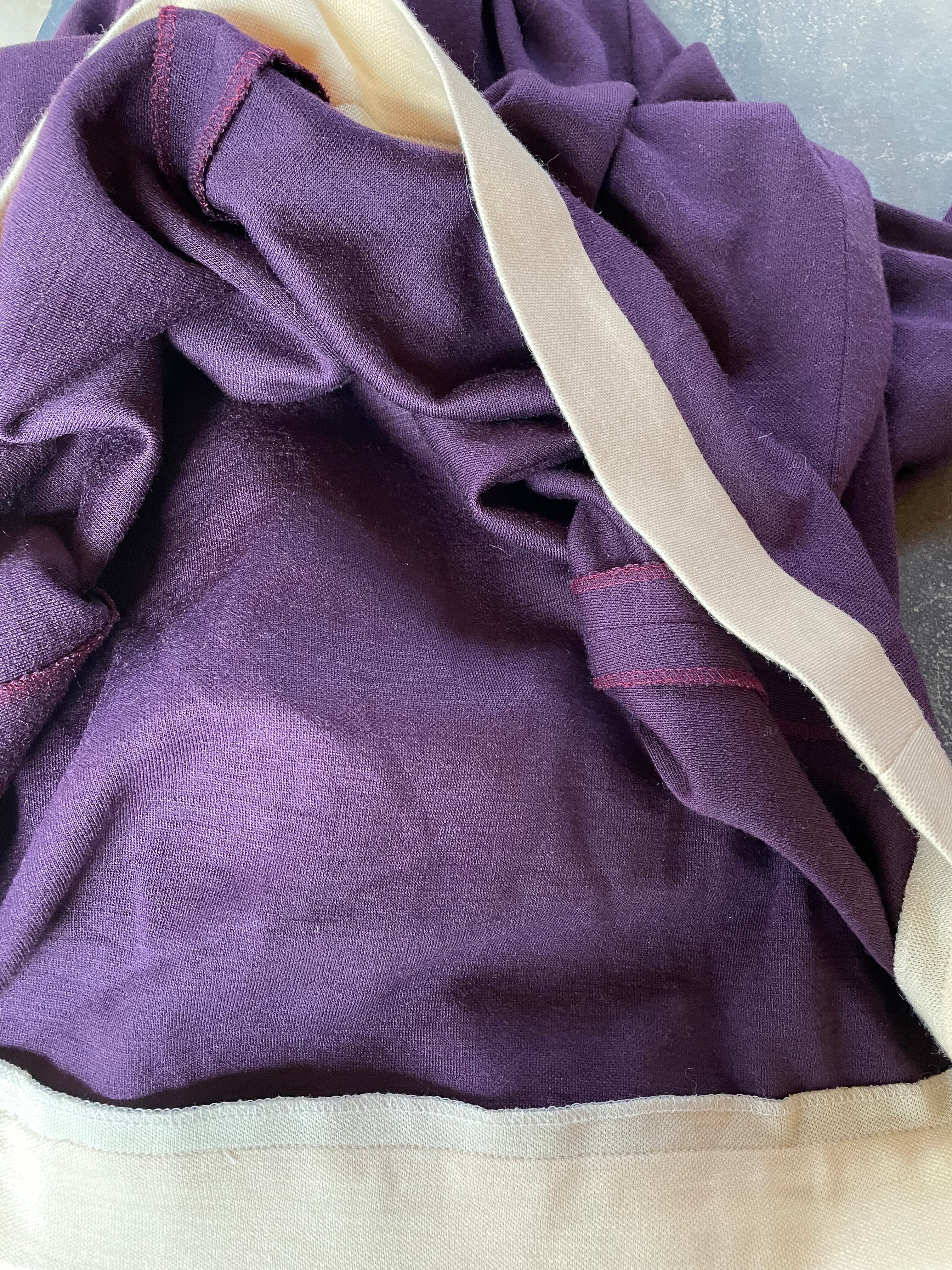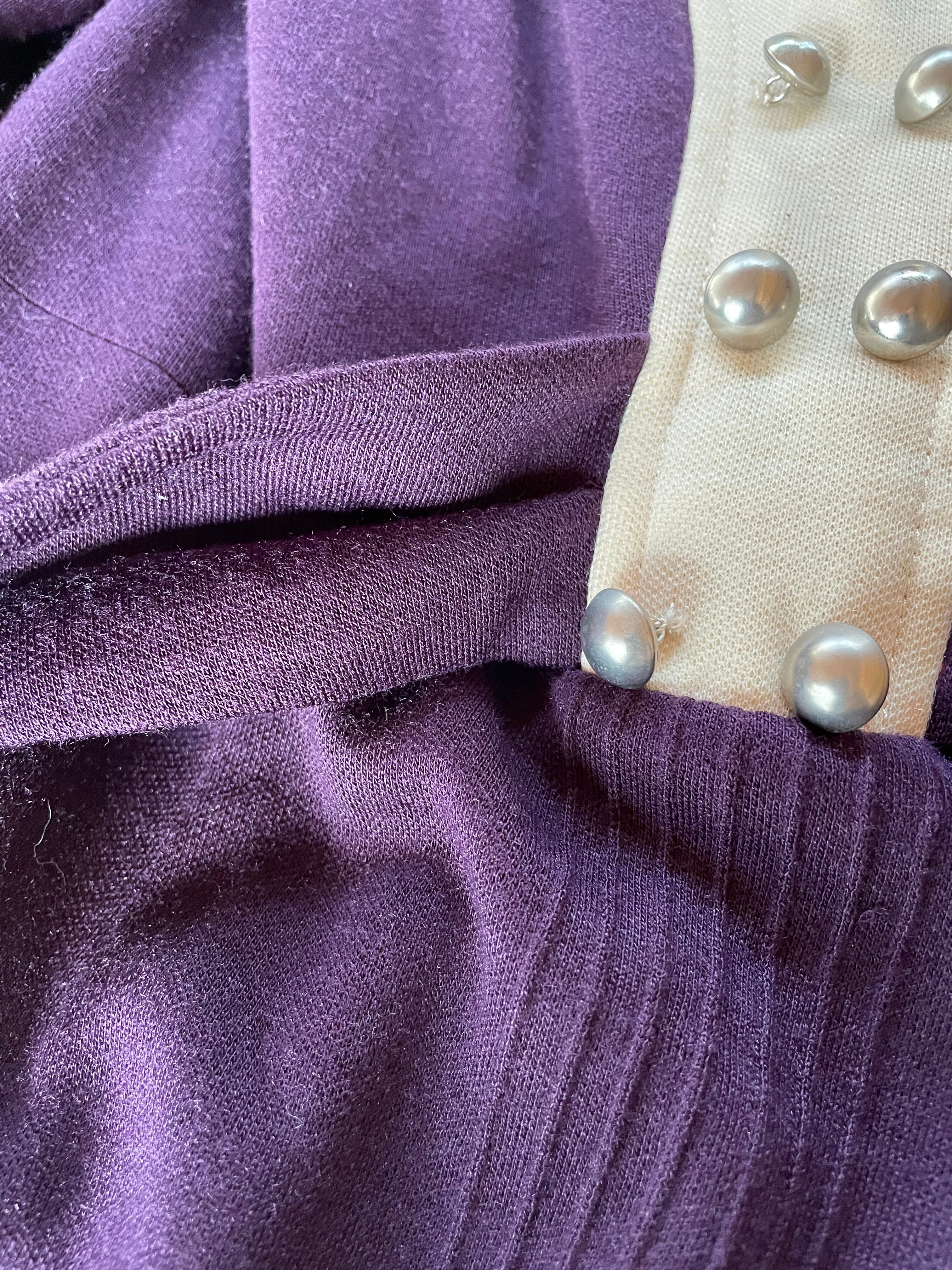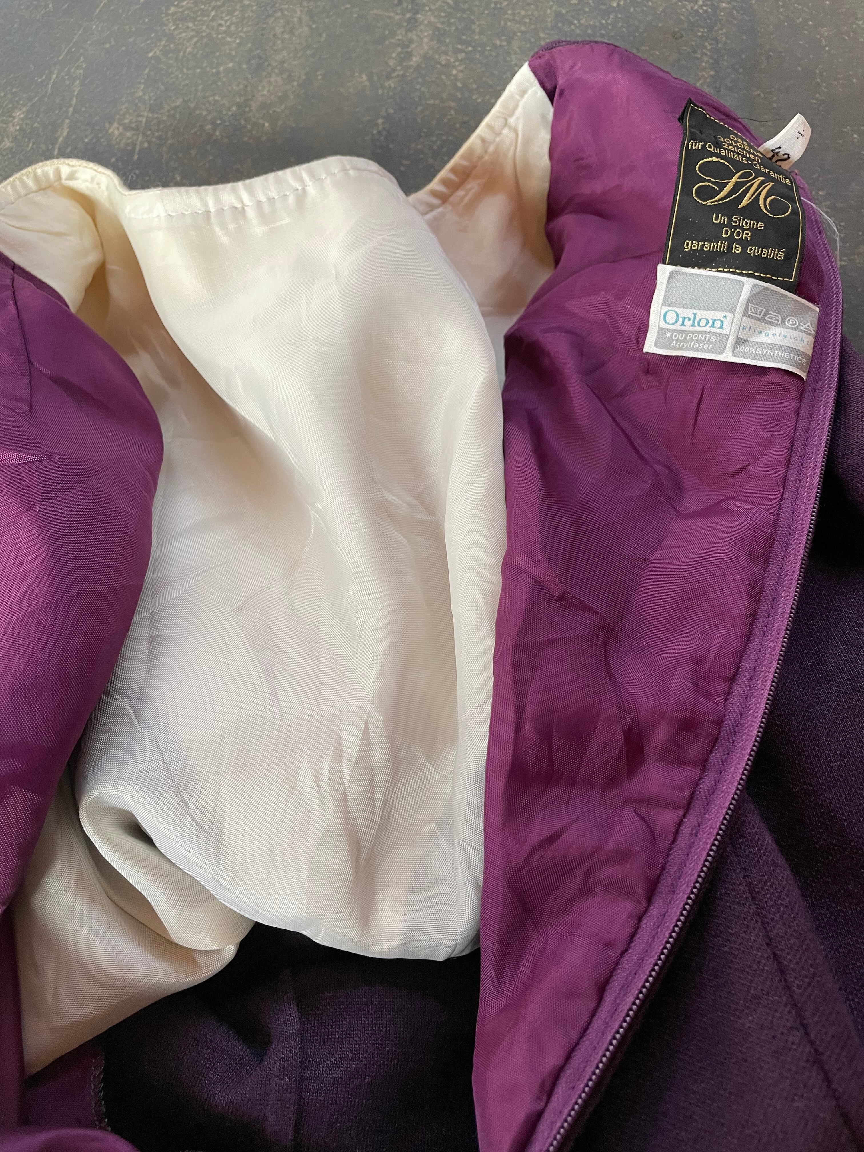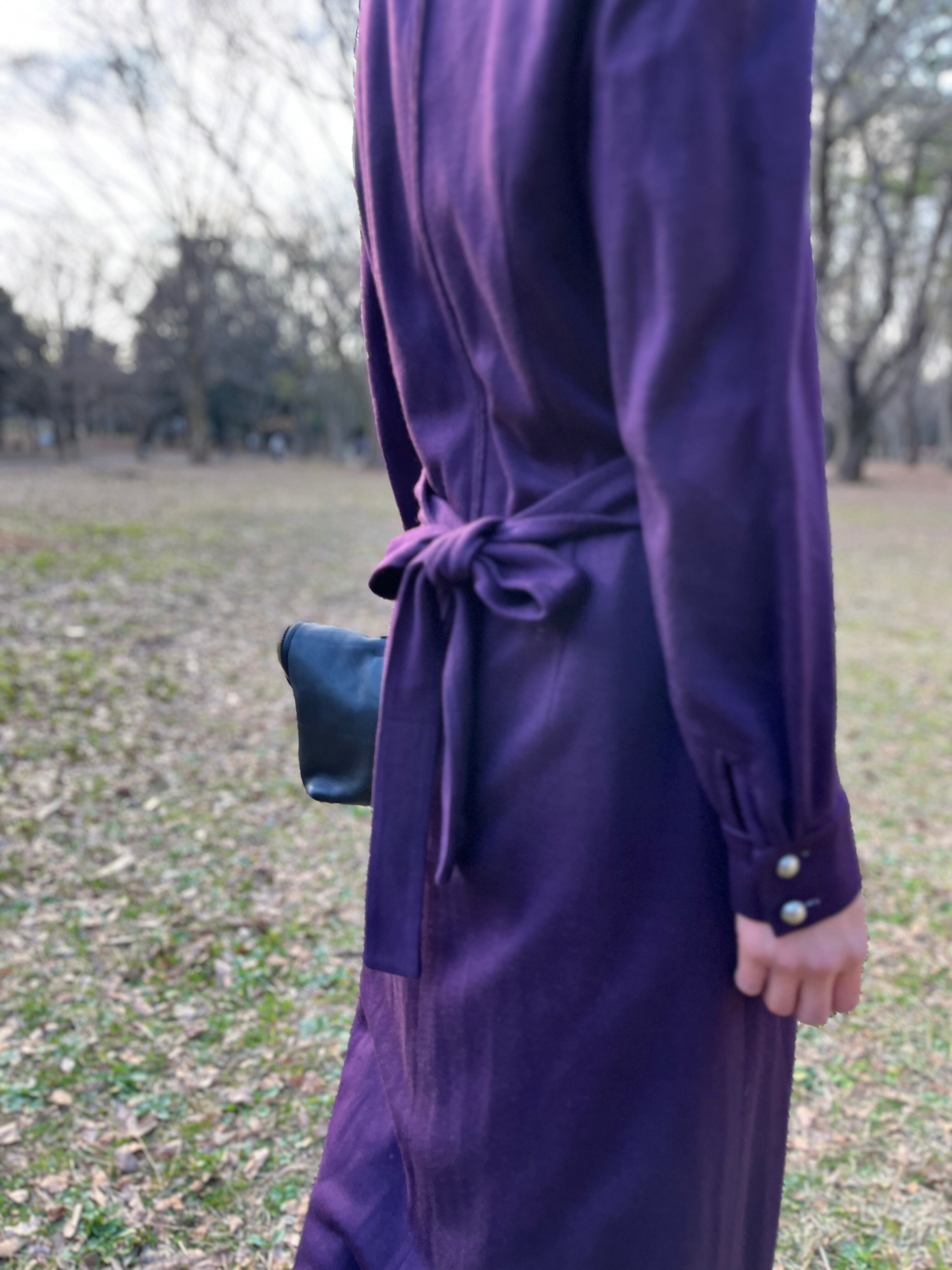 パープルのような ブラウンのような クラシックな色目。アイボリーとのバイカラー仕立てもデザインにマッチしていて とても素敵です。