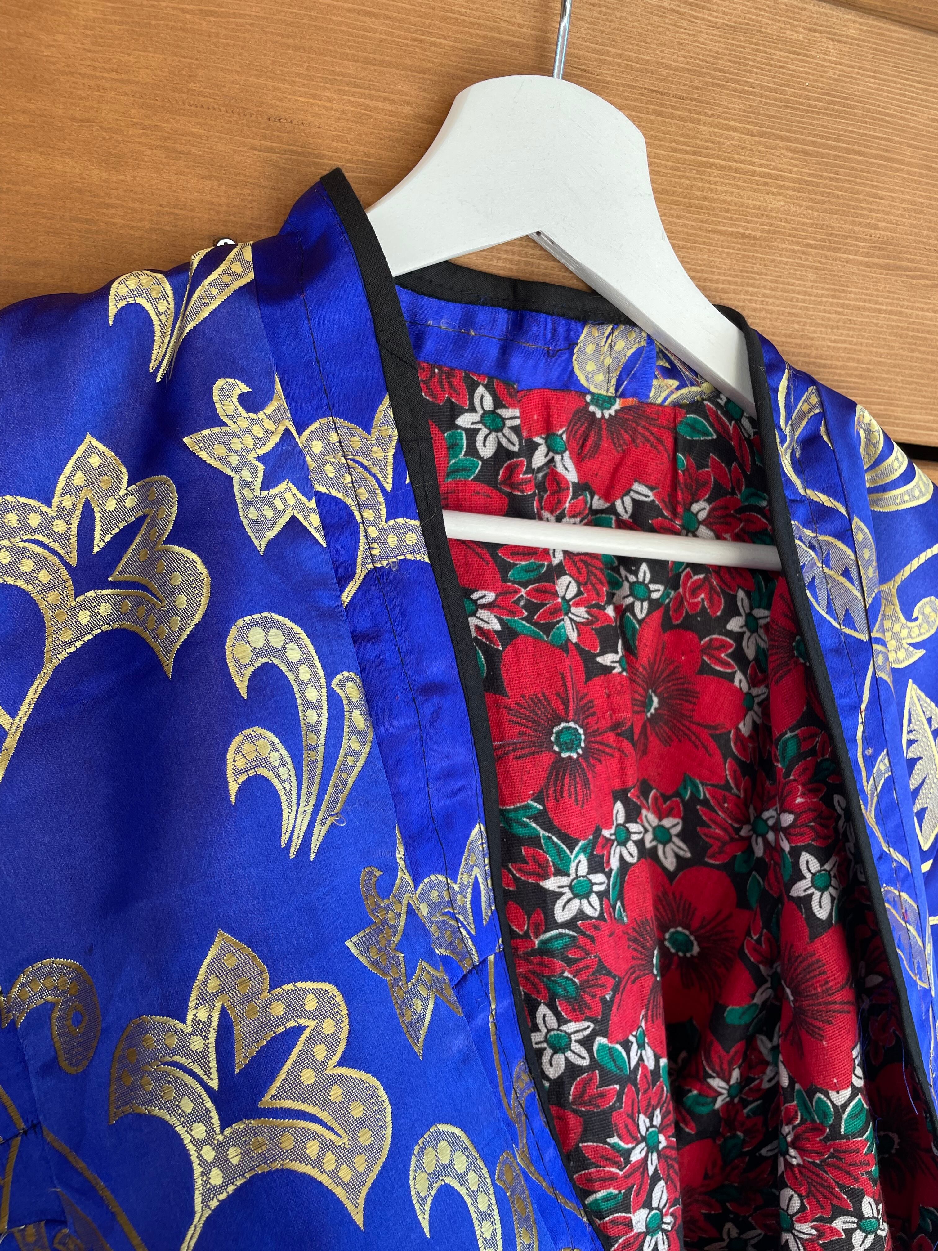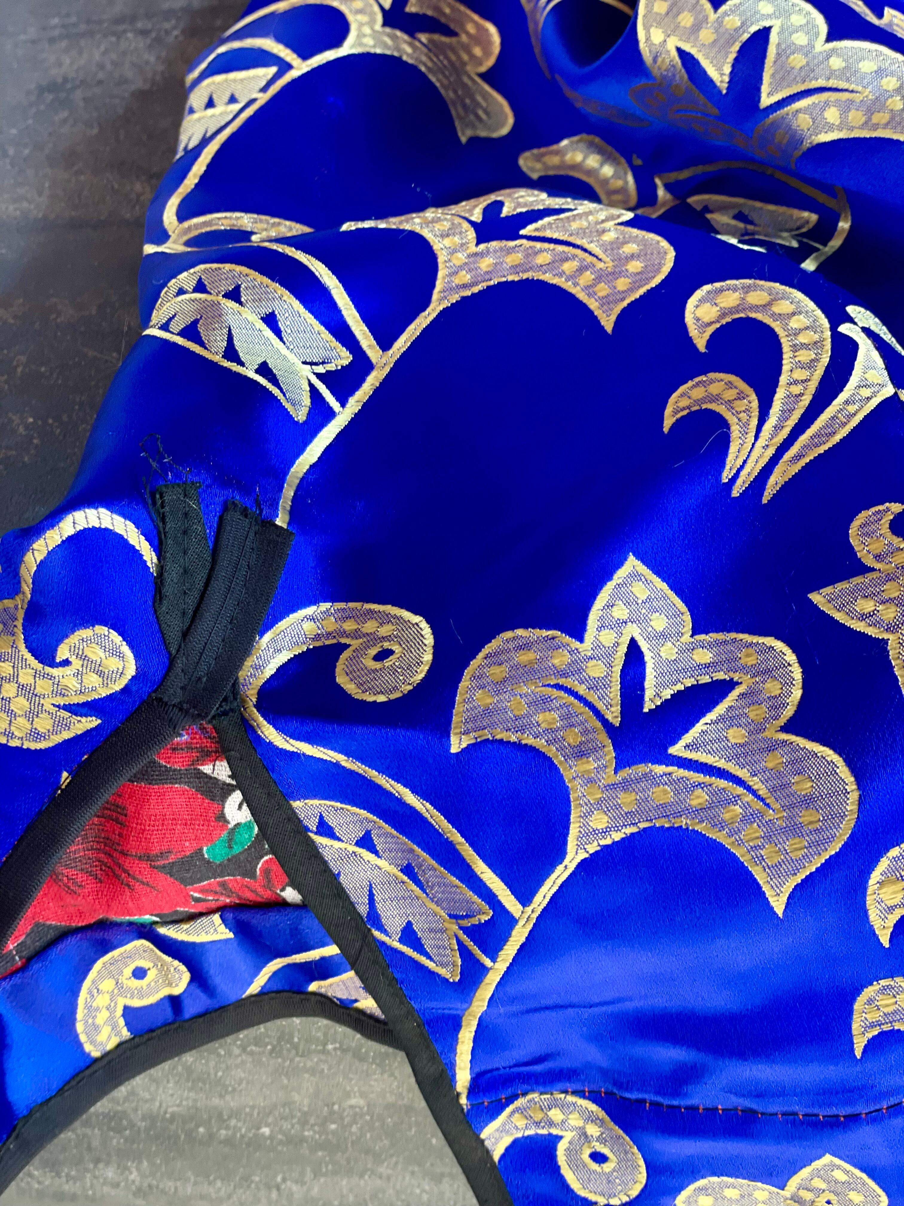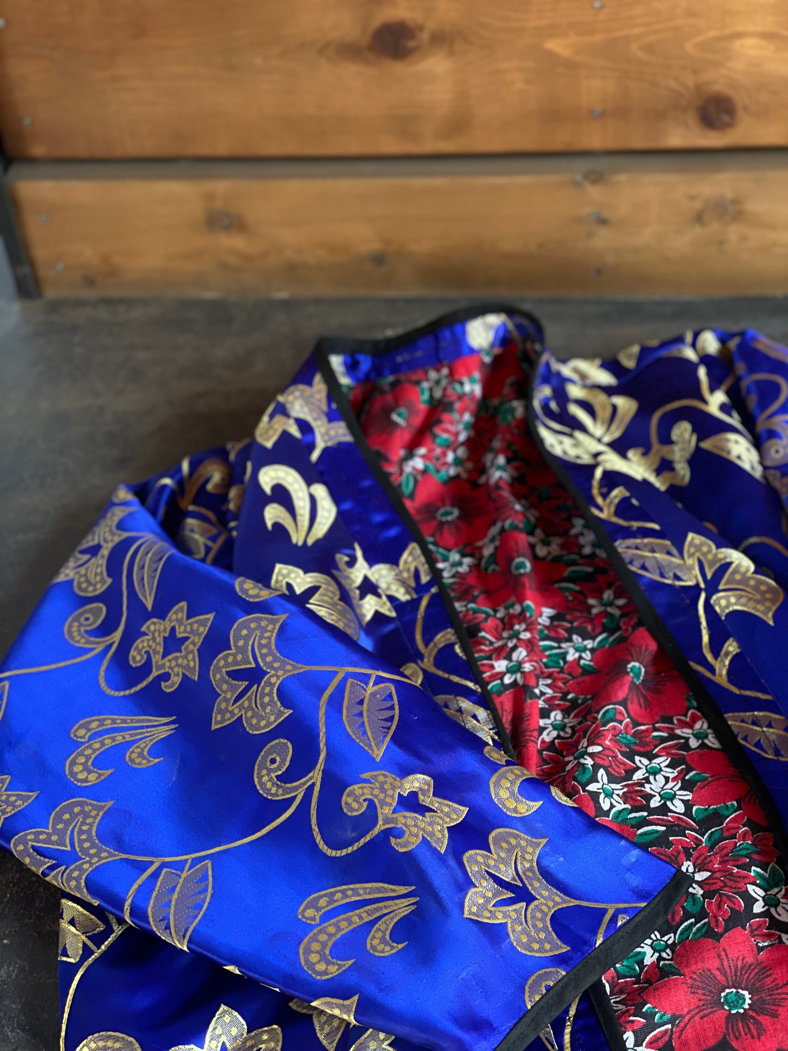 織り糸の縦横糸を シルク × シルク で織り上げられ、金糸による織り柄が上品なヴィンテージ チャパン。