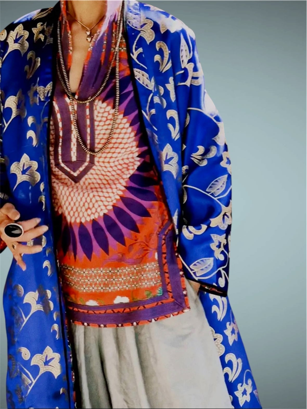 シルクロードの中継地として栄えてきたウズベキスタンならではの、ダイナミックな図柄がとても美しく魅了される一着。
