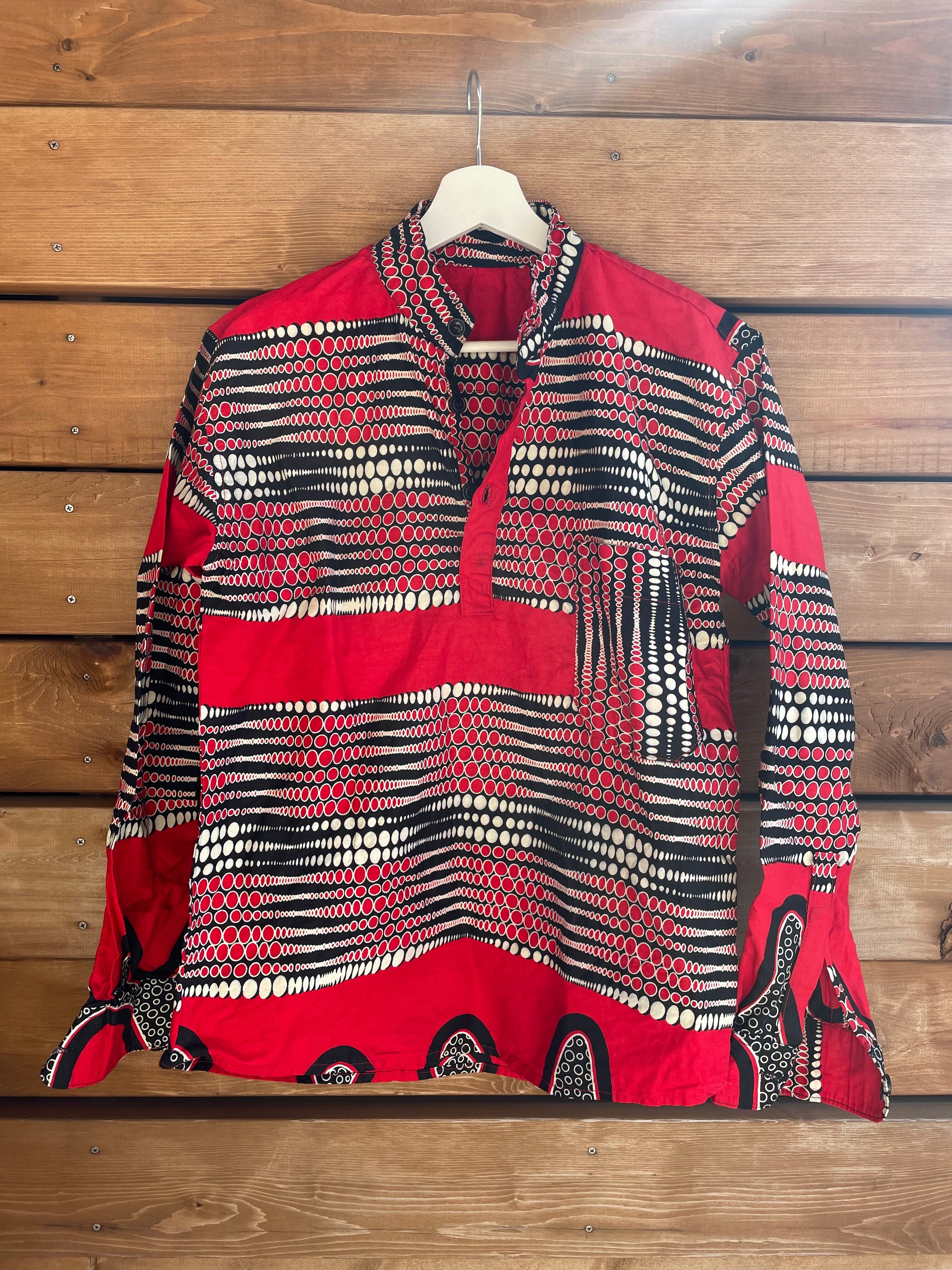Euro vintage order made African batik band collar shirts EUヴィンテージ オーダーメイド アフリン バティック バンドカラー シャツ