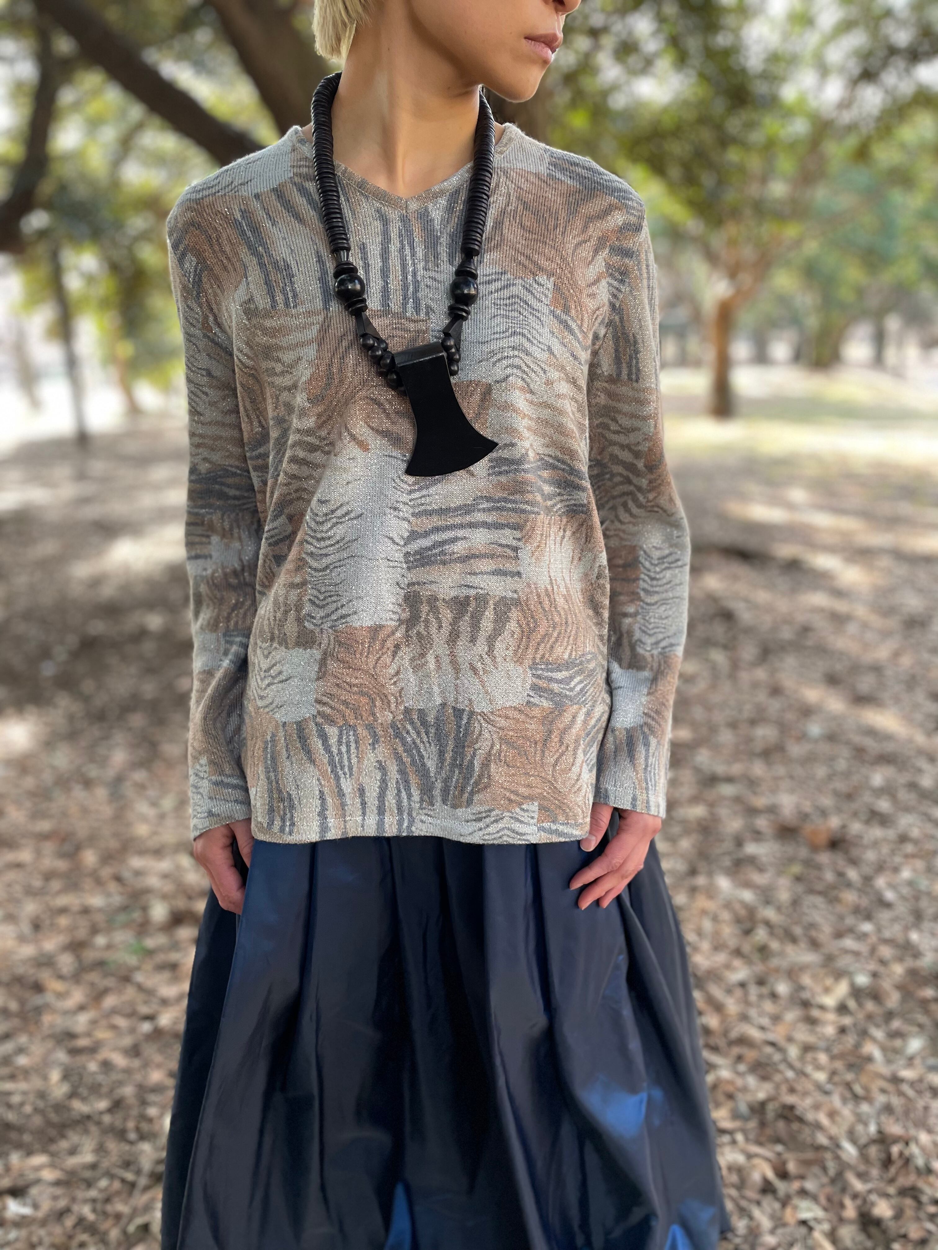 80s Italy vintage Gold lamé Zebra knit