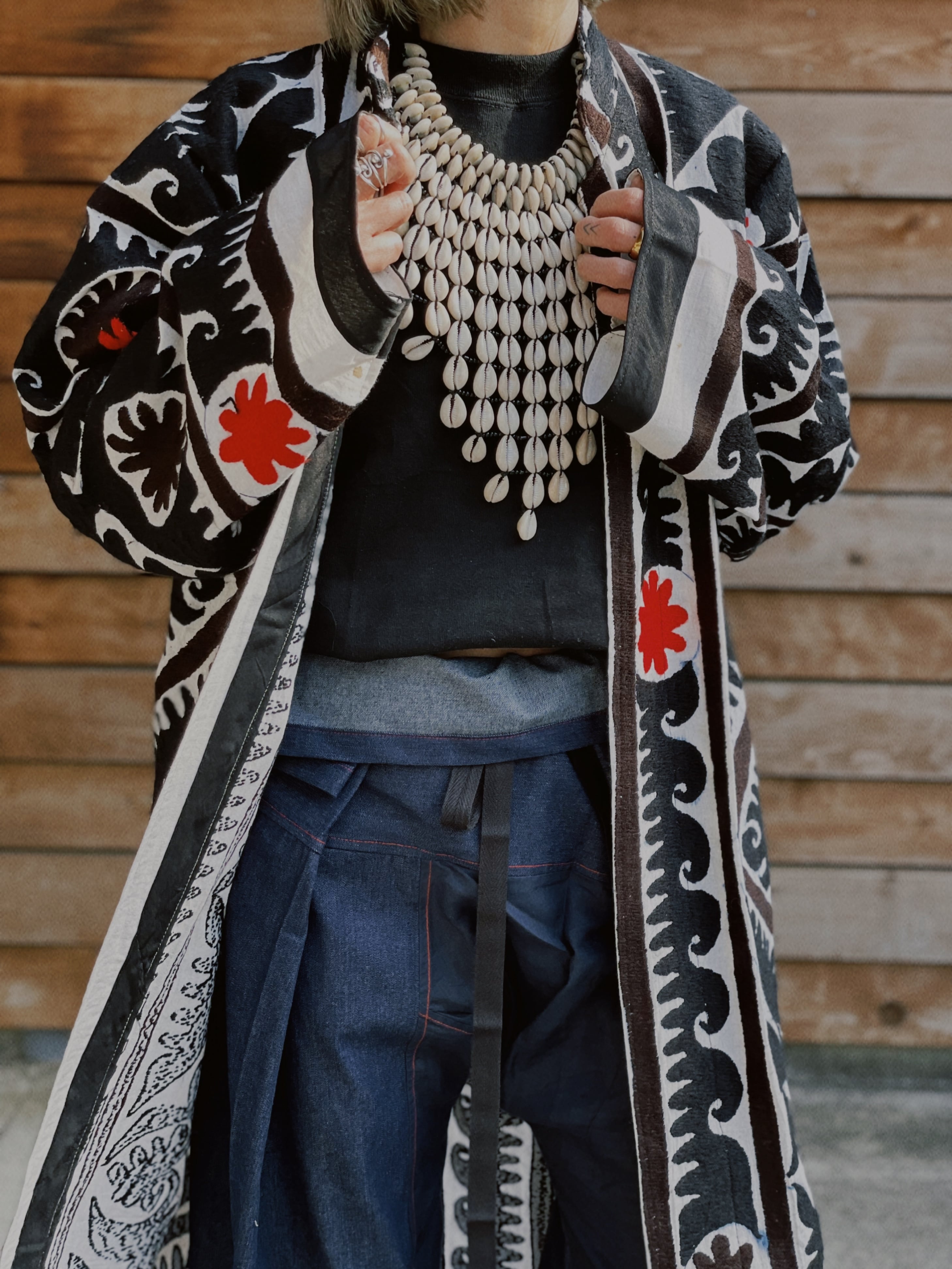 ウズベク ヴィンテージ ハンドメイド刺繍 スザニ ローブ _ ロング トライバル