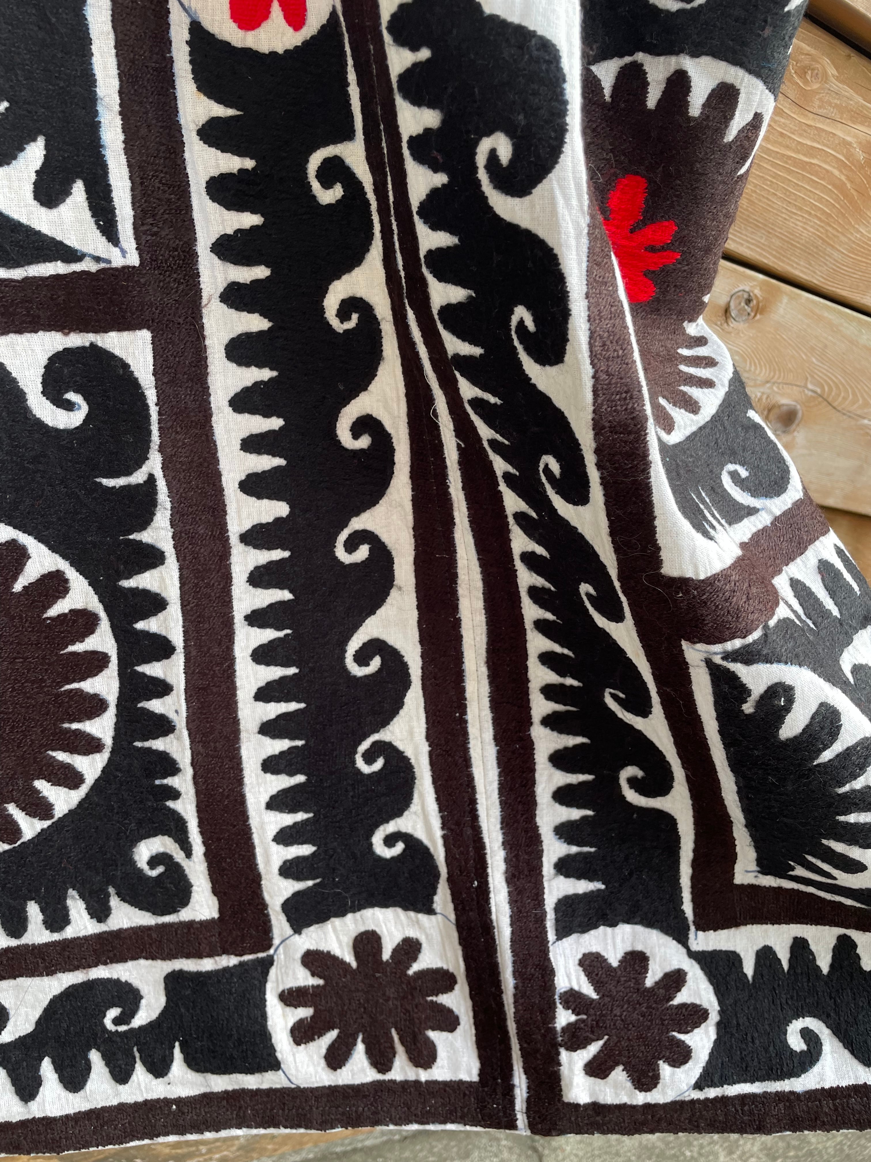 スザニは17世紀ごろから中央アジアあたりの遊牧民の女性たちが手刺繍で代々受け継いできた伝統のひとつだと言われています。