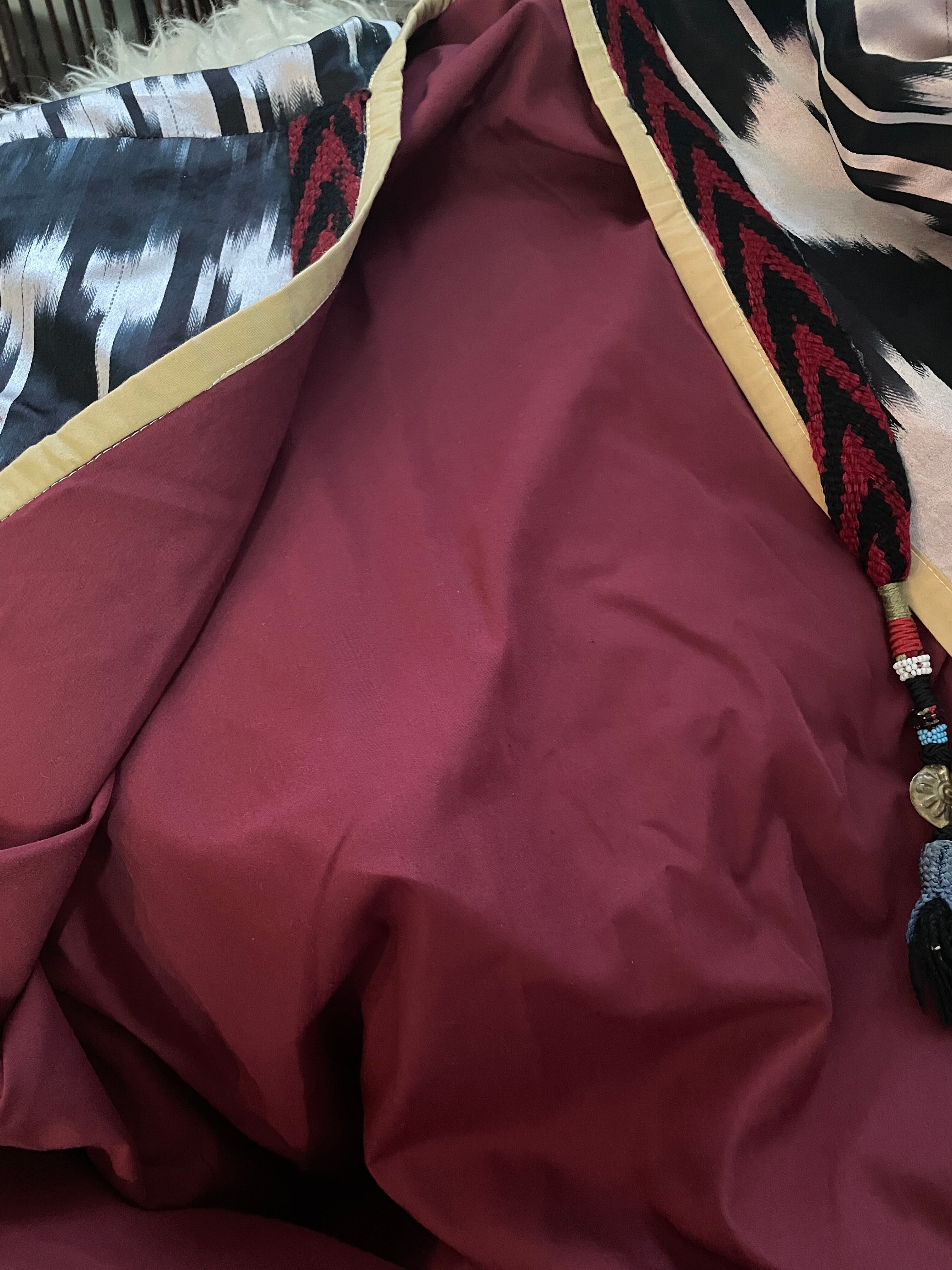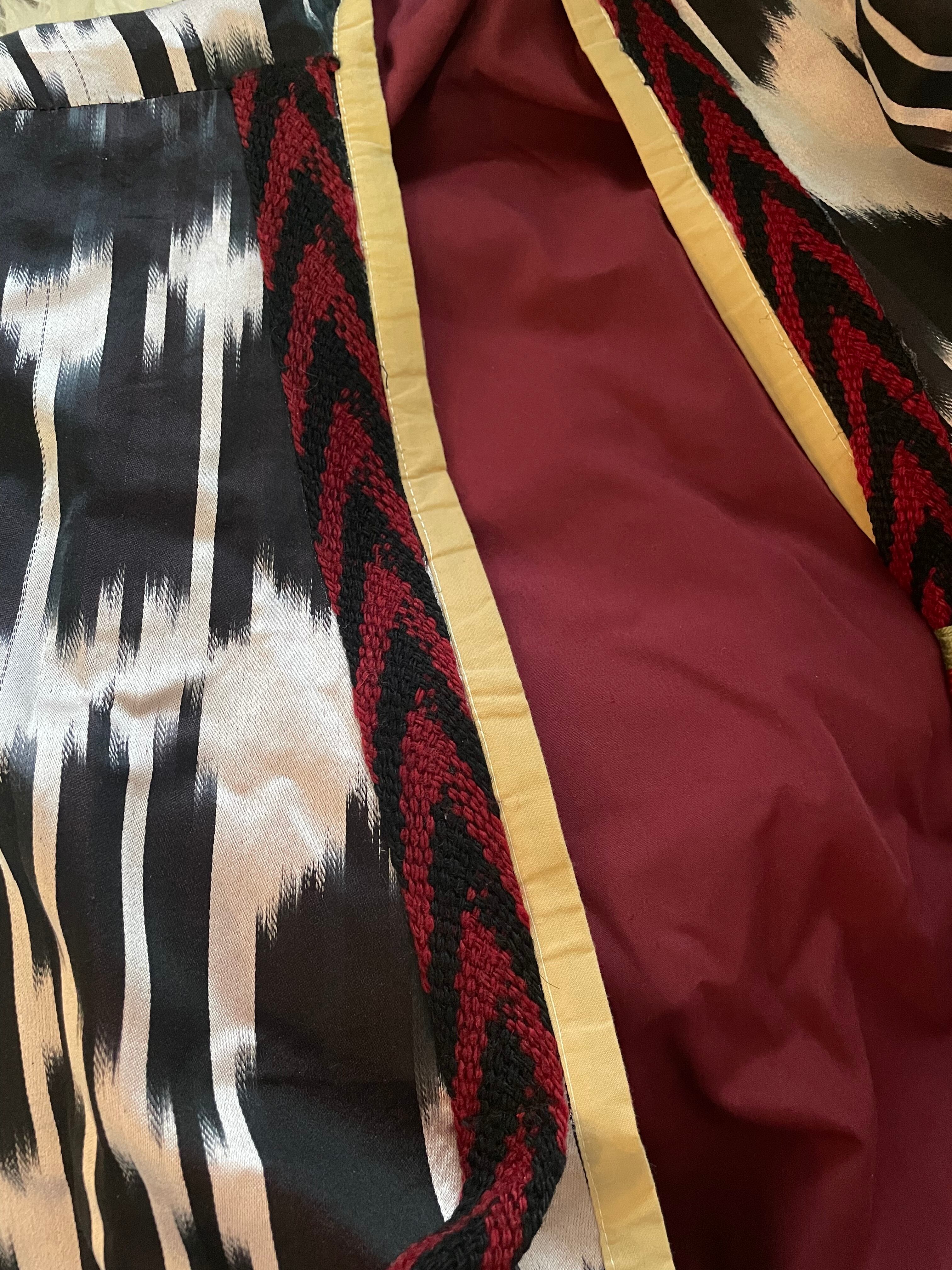 ウズベキスタンに伝わるスザニともう一つの民族衣装、アトラス(絣)柄の ヴィンテージ チャパンです。