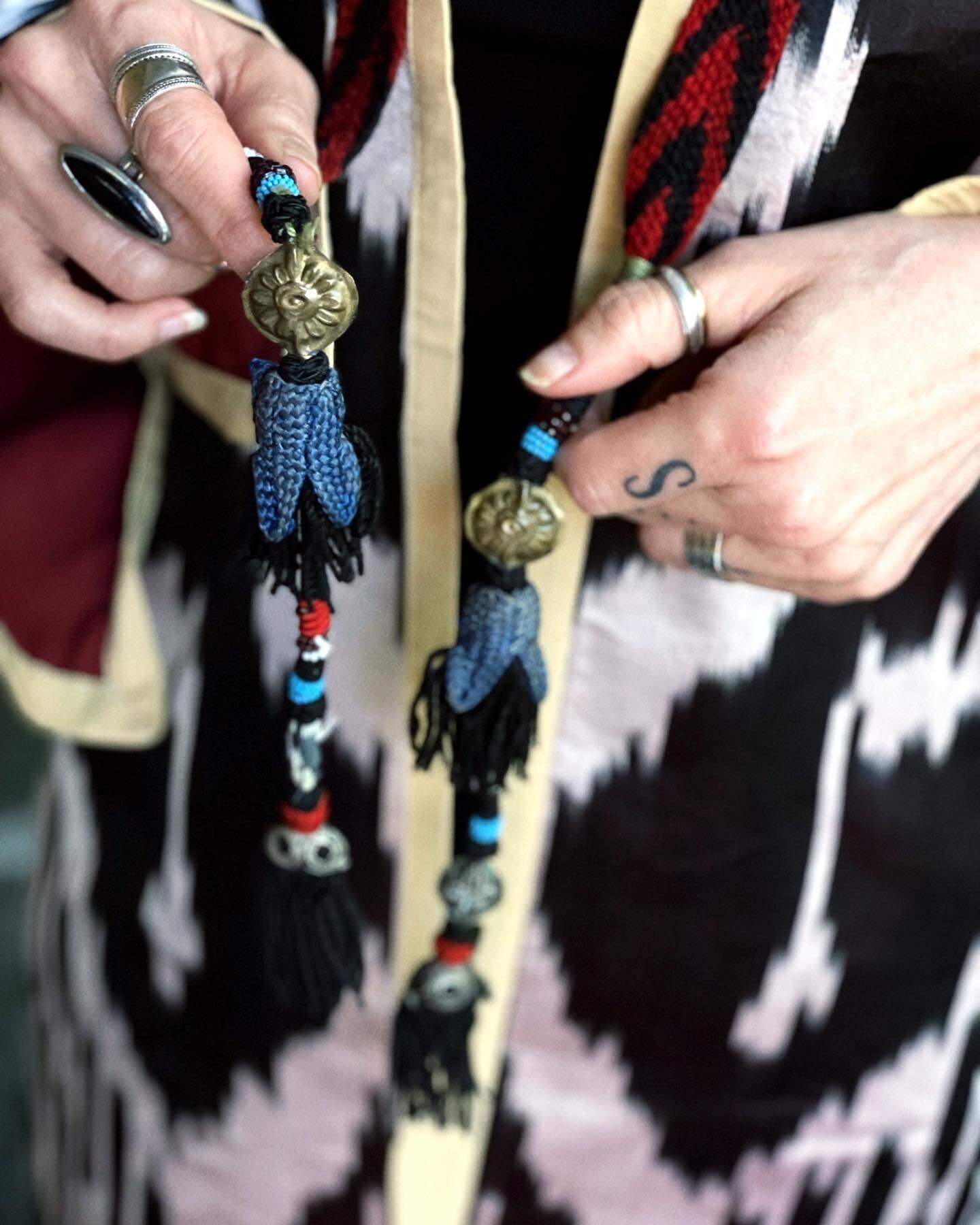 元々男性が着用することが多かった民族衣装のようですが、羽織り物としても、 ベルト使いでドレスとしても素敵です。