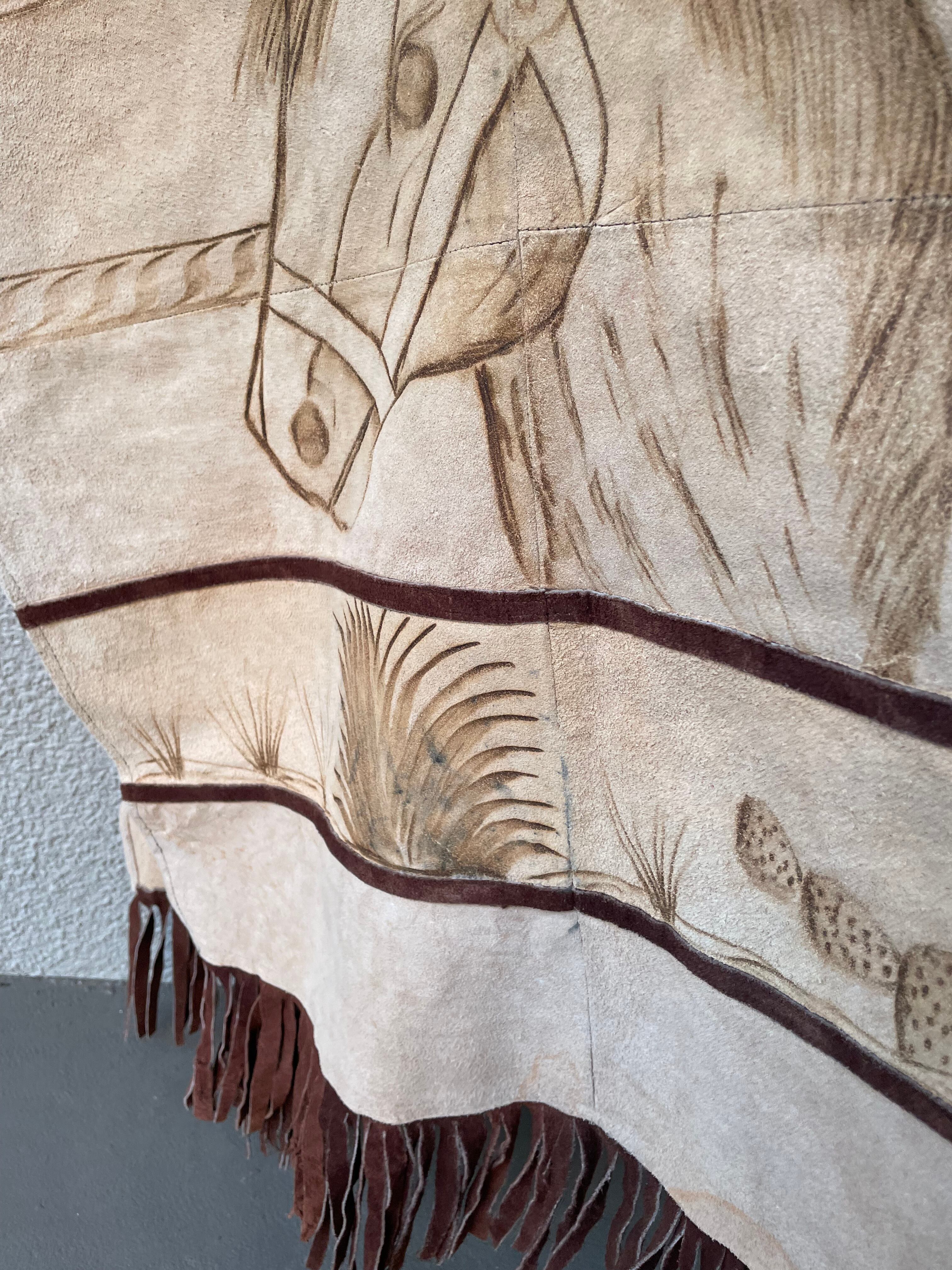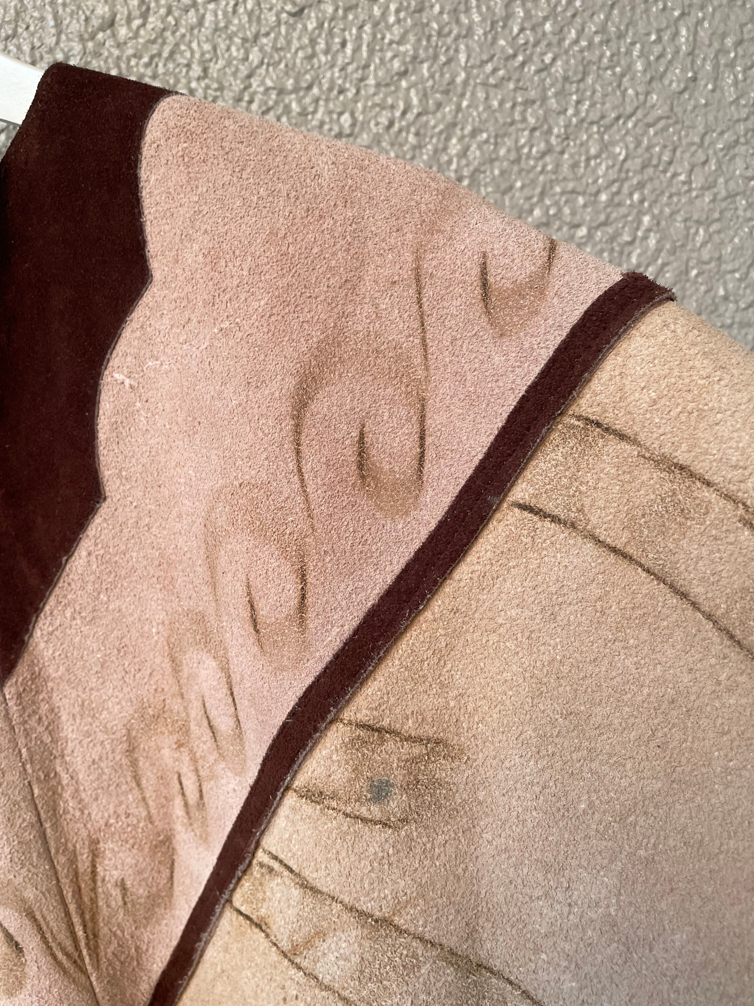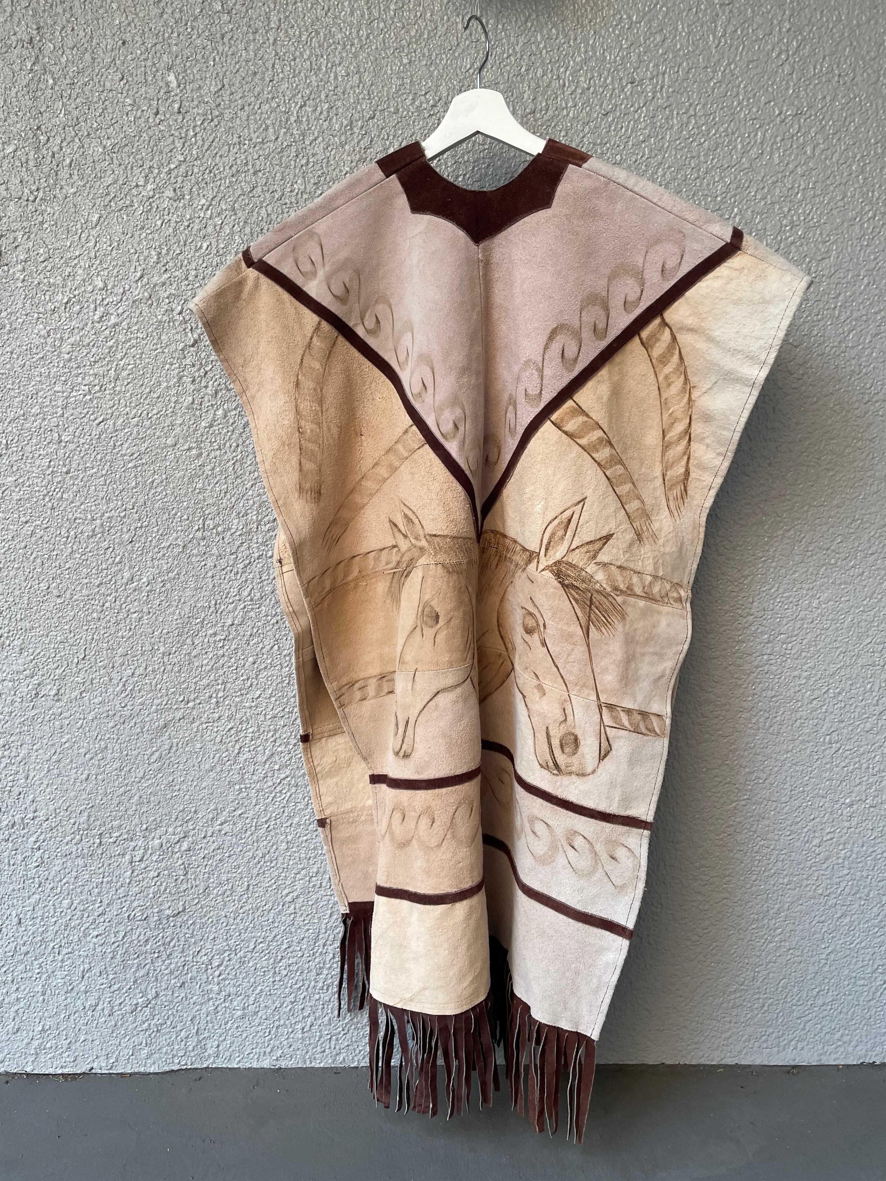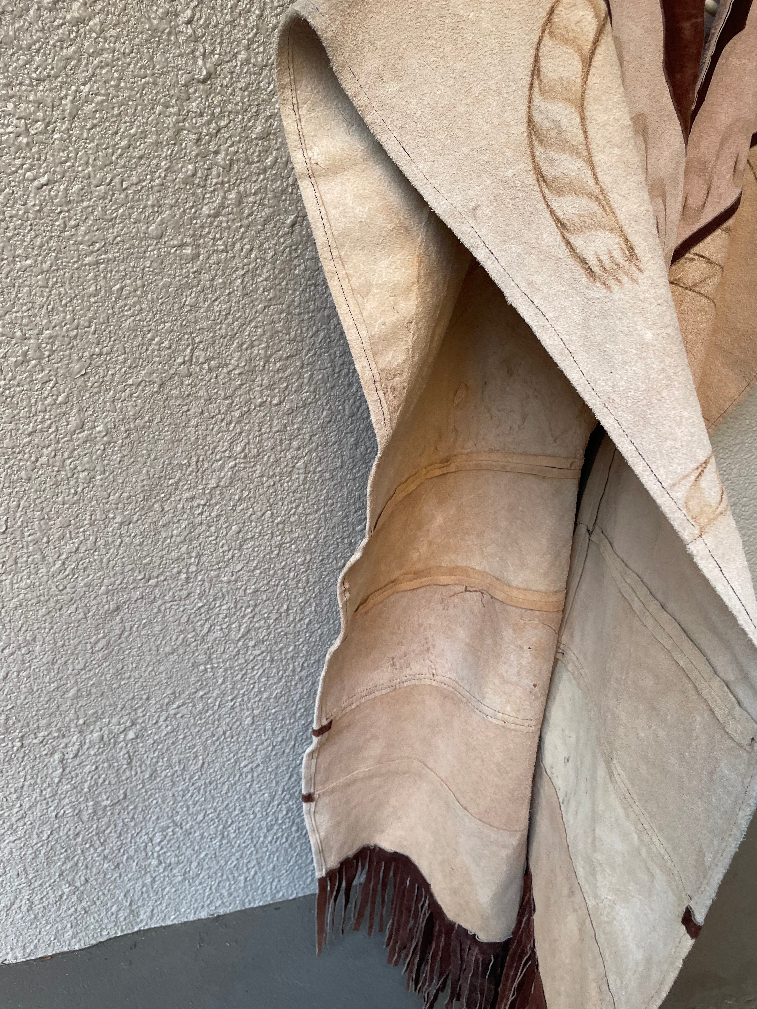 Mexico vintage Real  Leather Hand paint BIG poncho