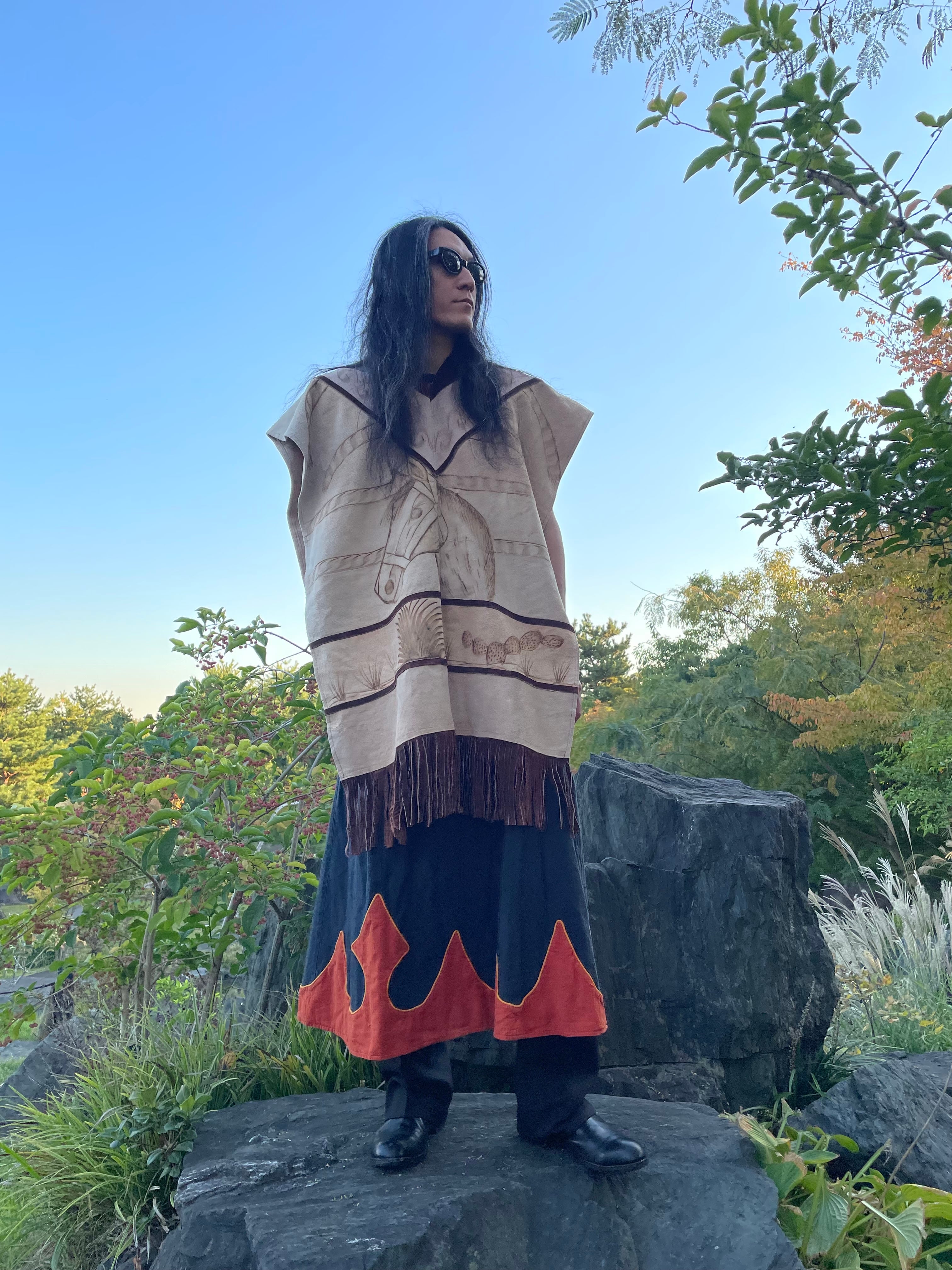 レザー職人によるオール ハンドクラフトのスウェード ポンチョです。