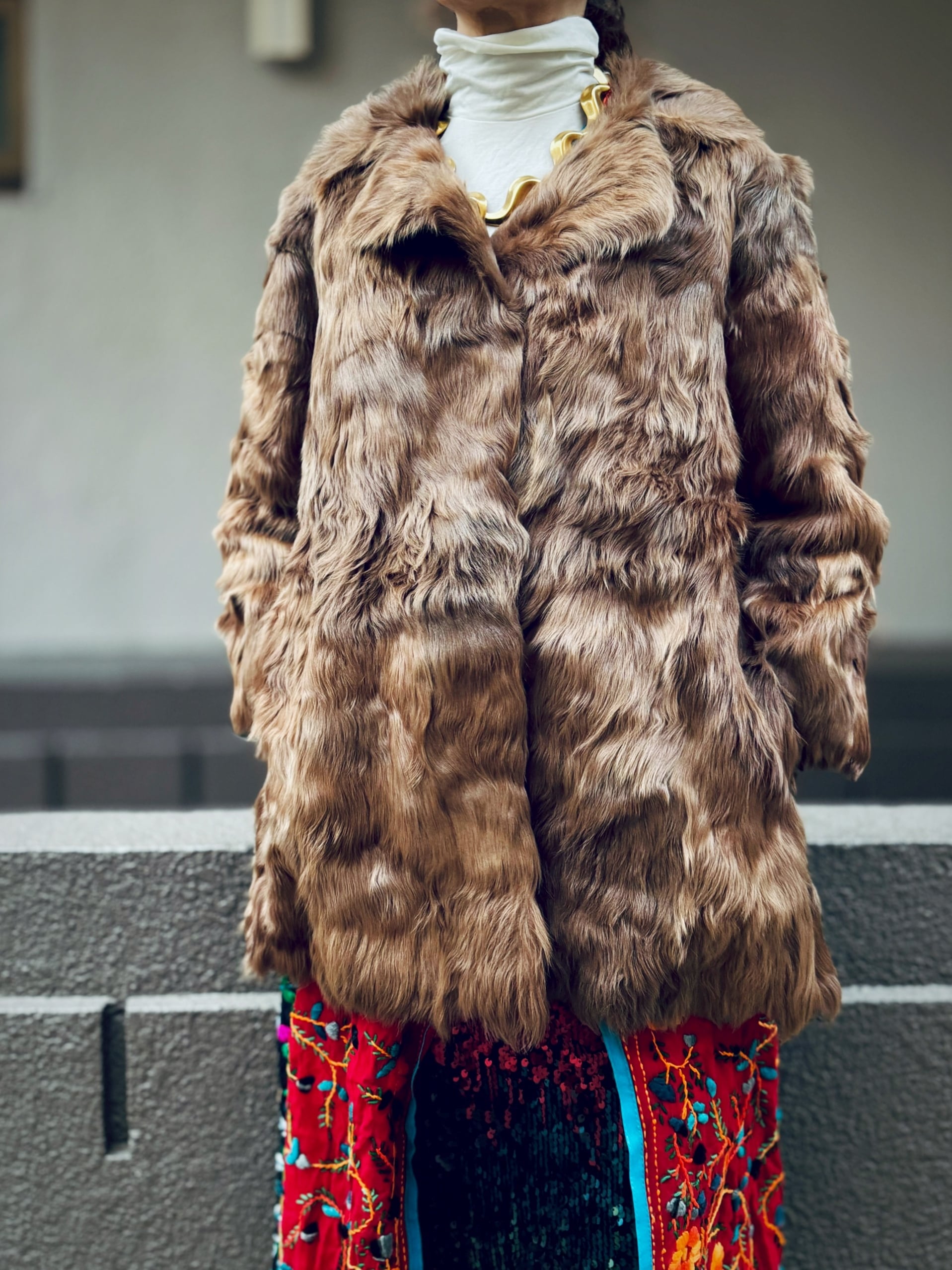ユーロ ヴィンテージ リアル ファー ラム ハーフ コート