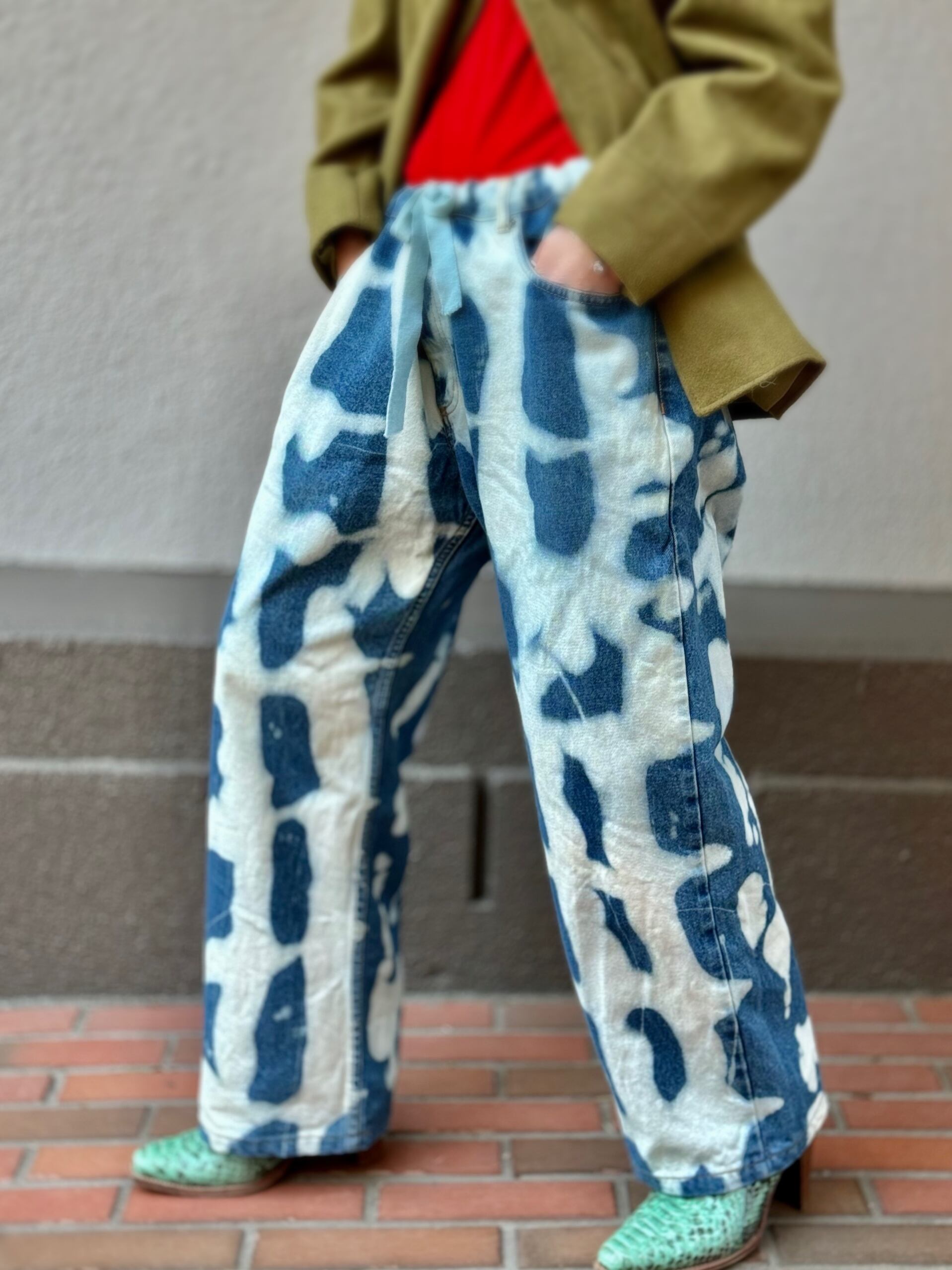 こちらは手染めのブリーチアウト デニム