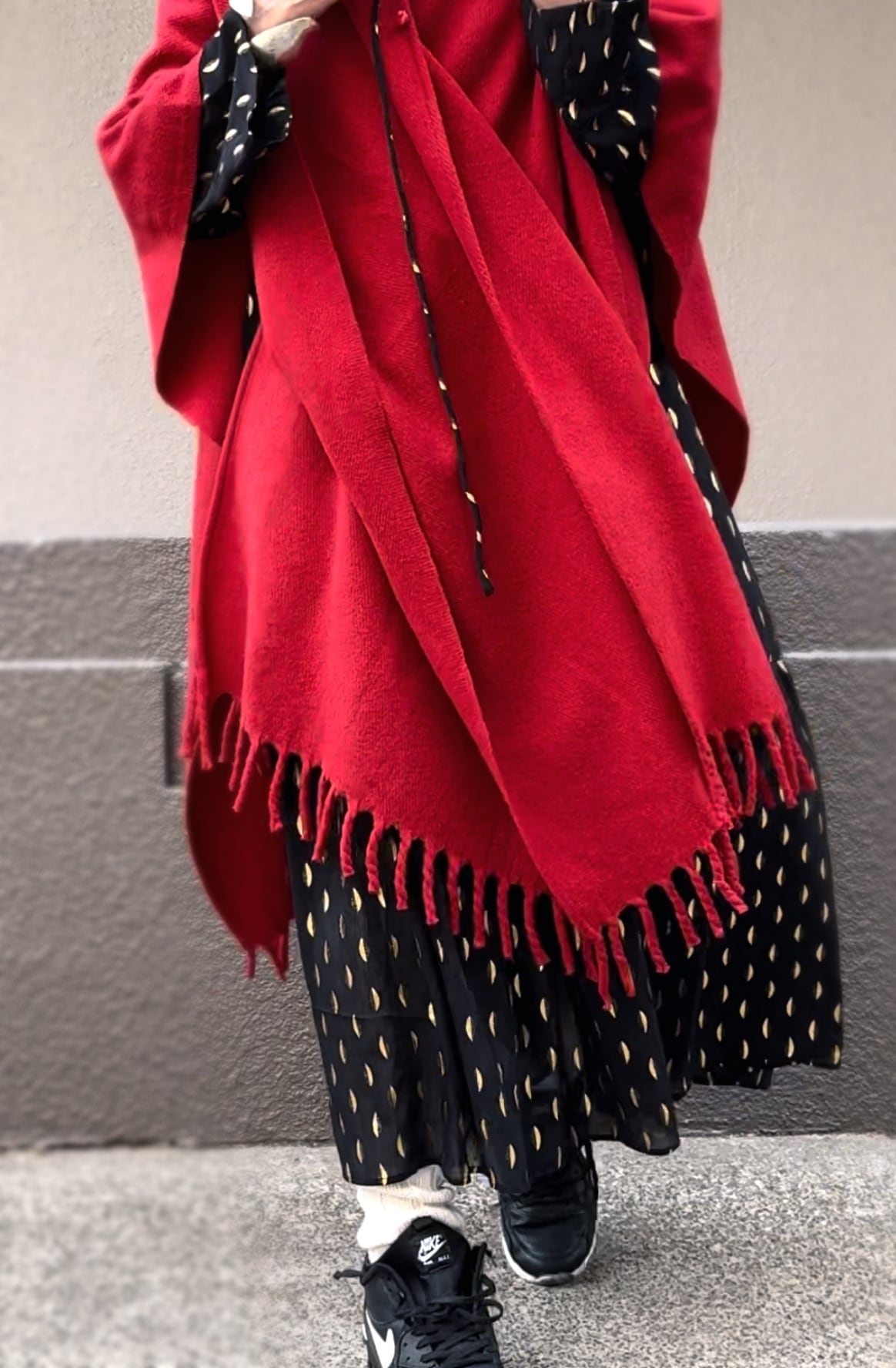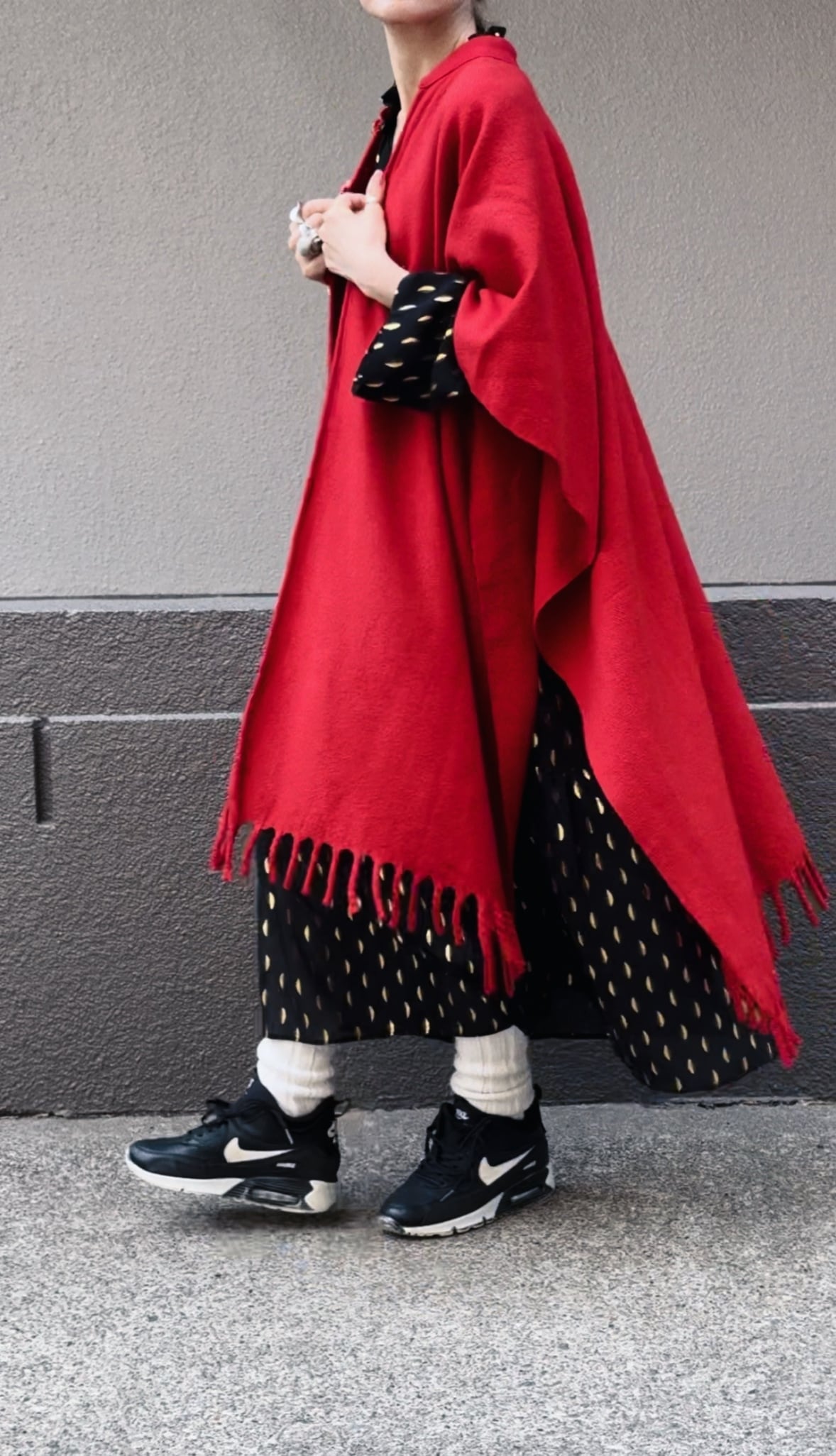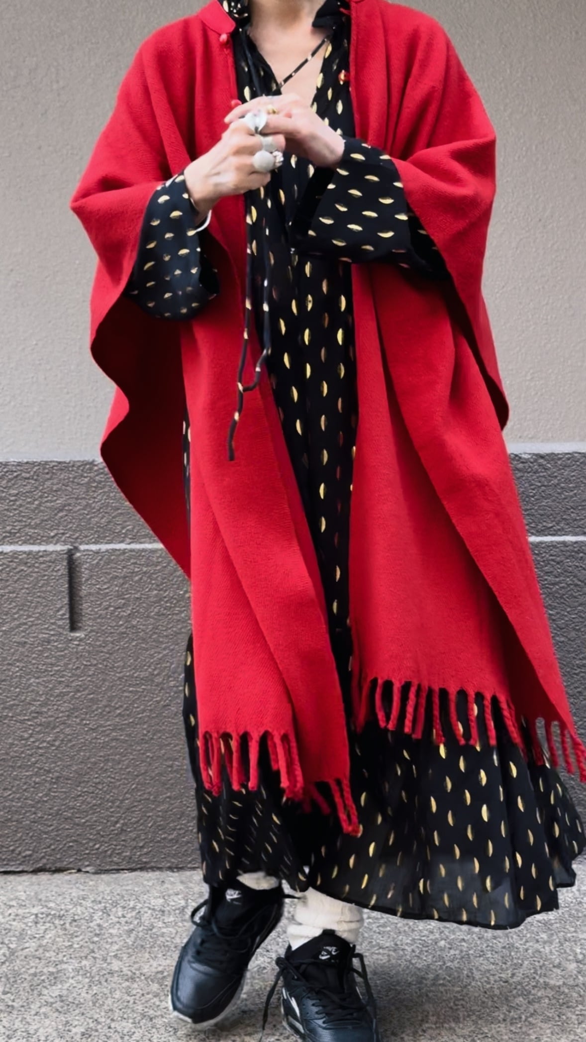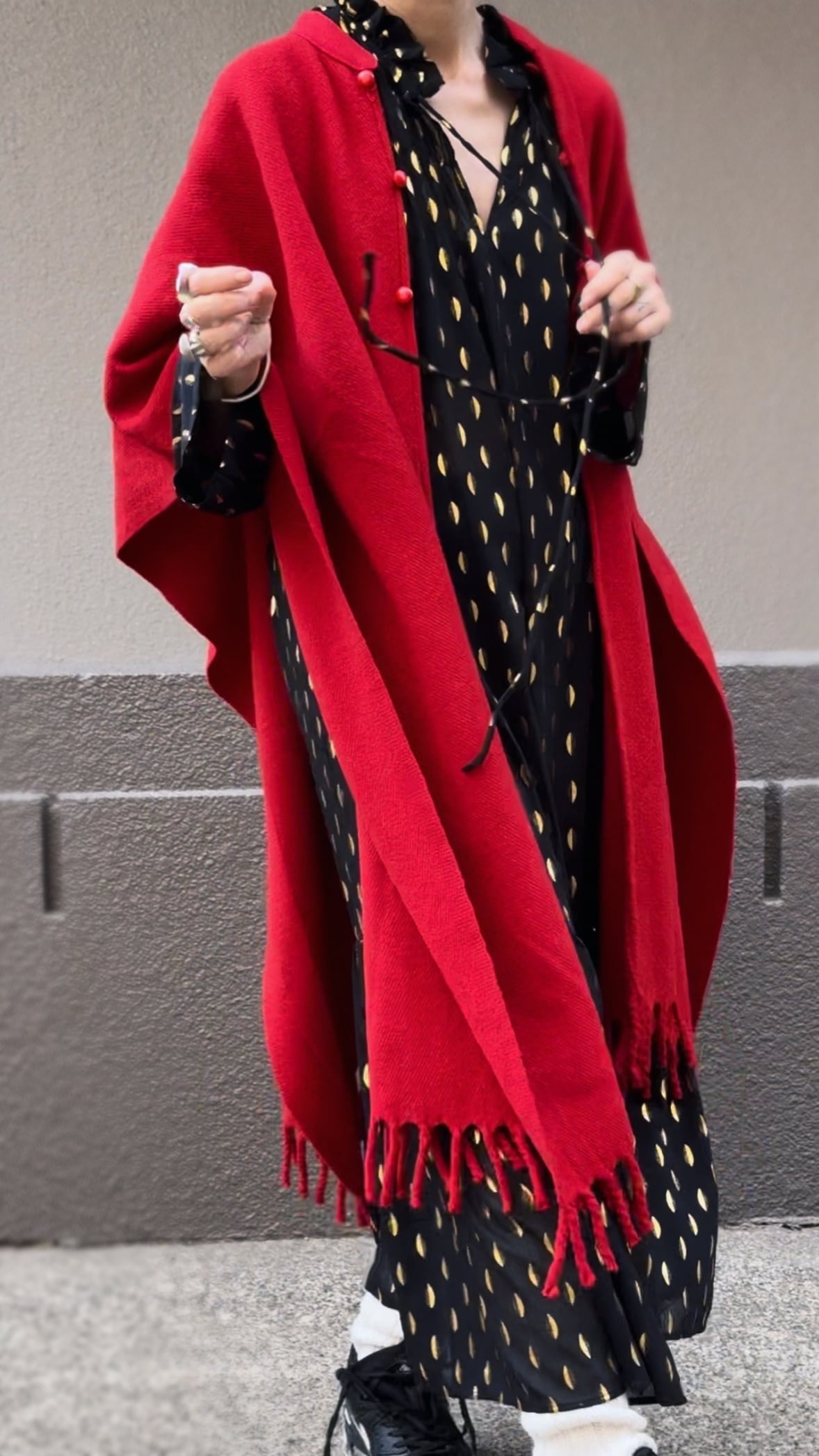 たっぷりとブランケット生地を使い、一枚仕立てで仕立てられていますので、とても良いドレープ感のあるシルエットがでます。
