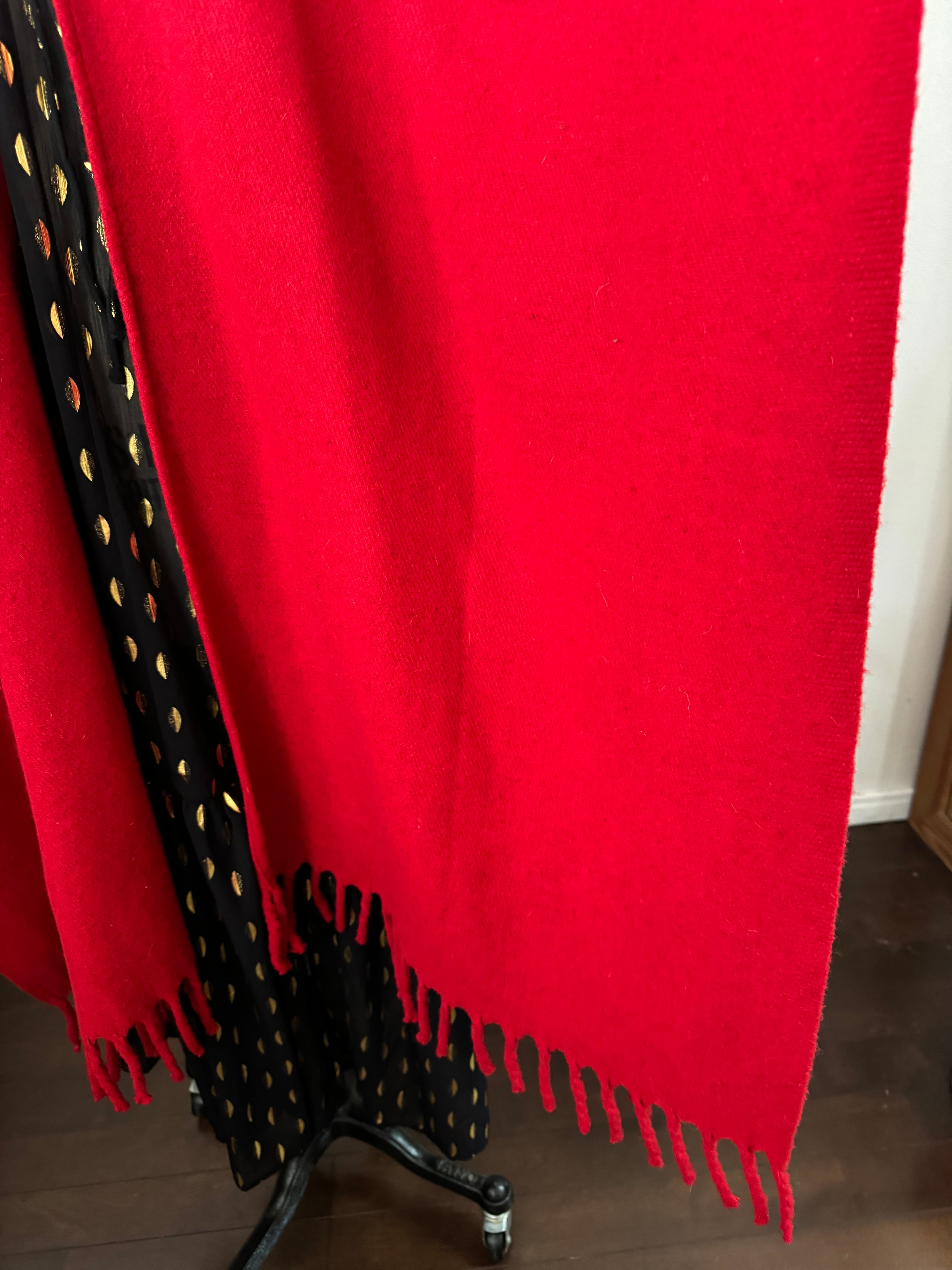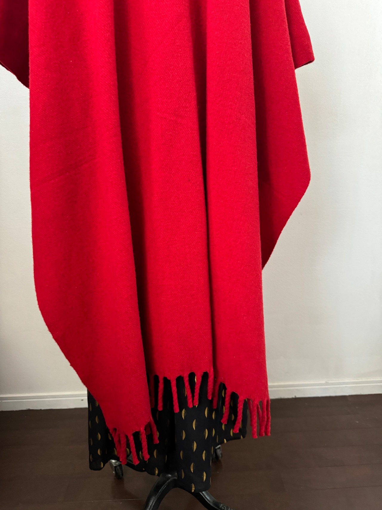 脇閉じも肩幅もないフリー サイズで、ばさっと羽織るメキシコのブランケット ポンチョです。