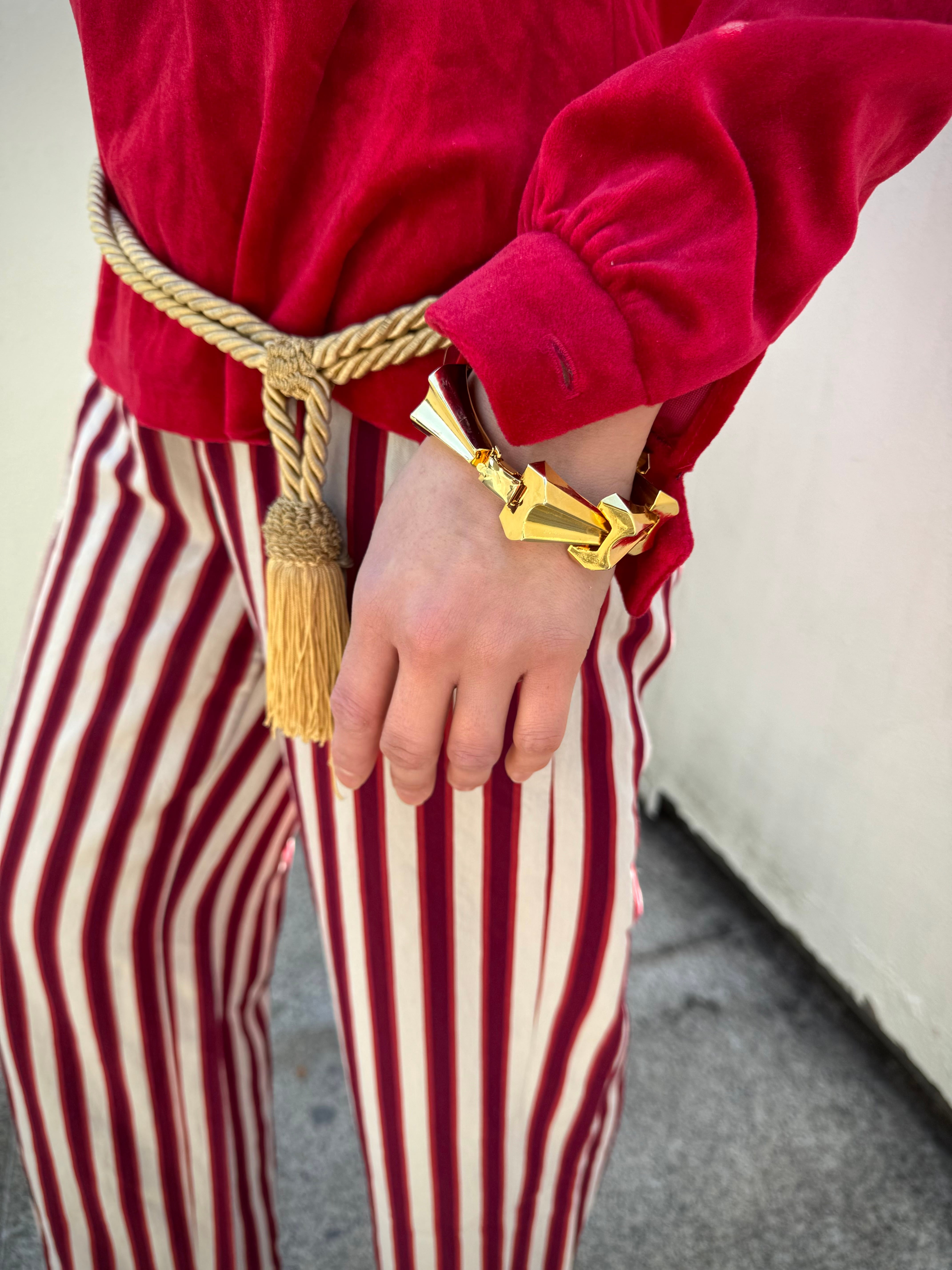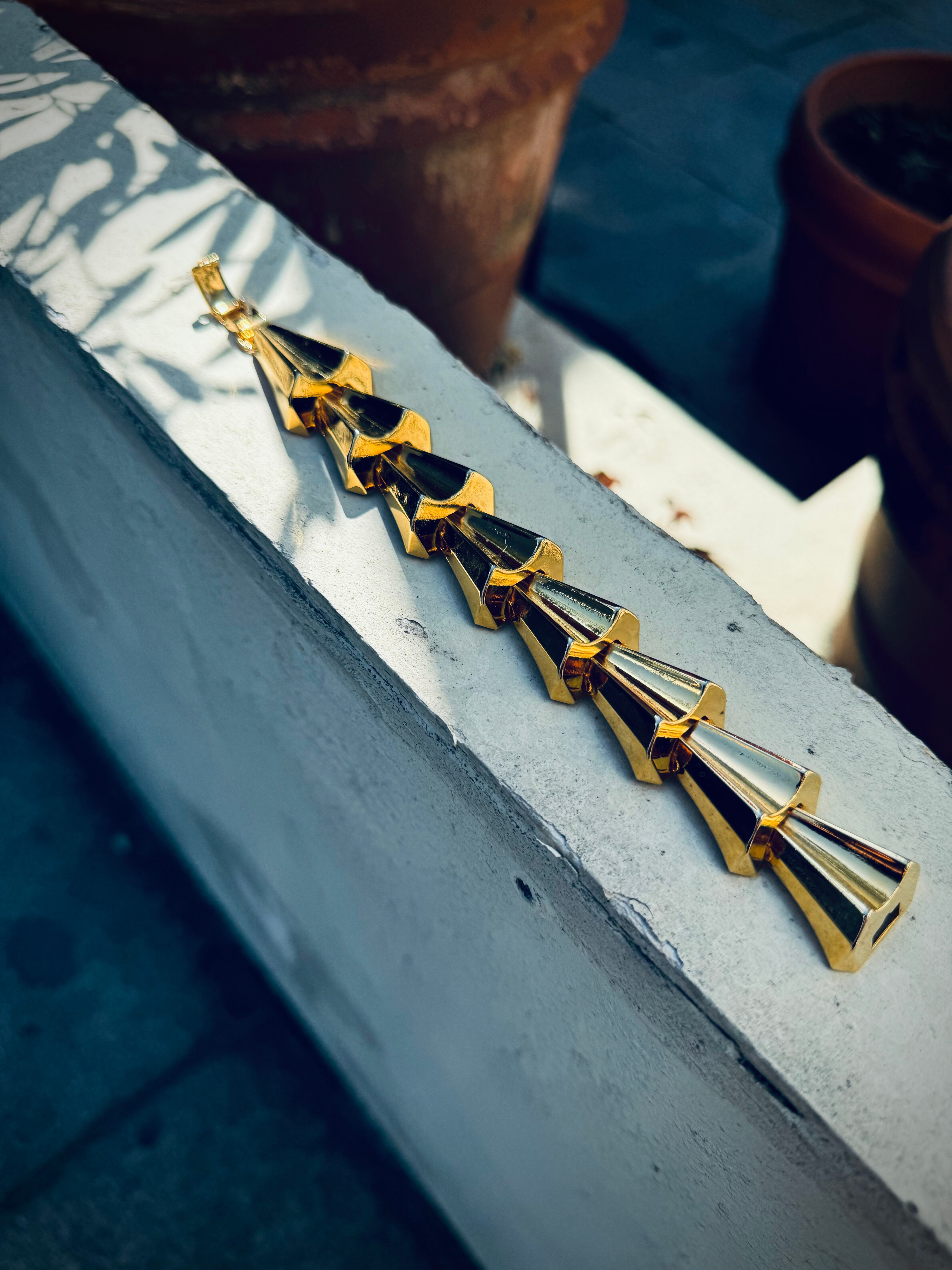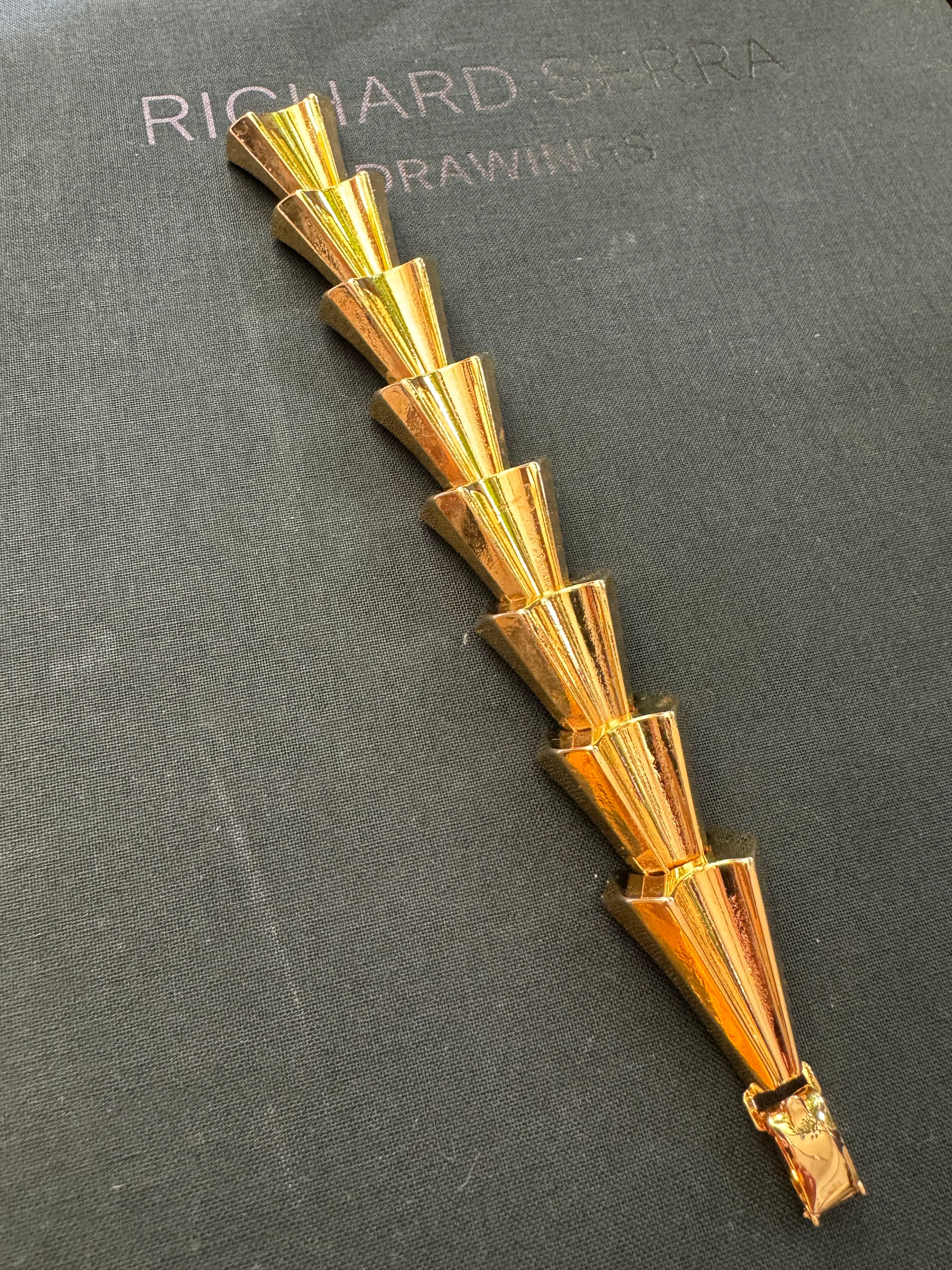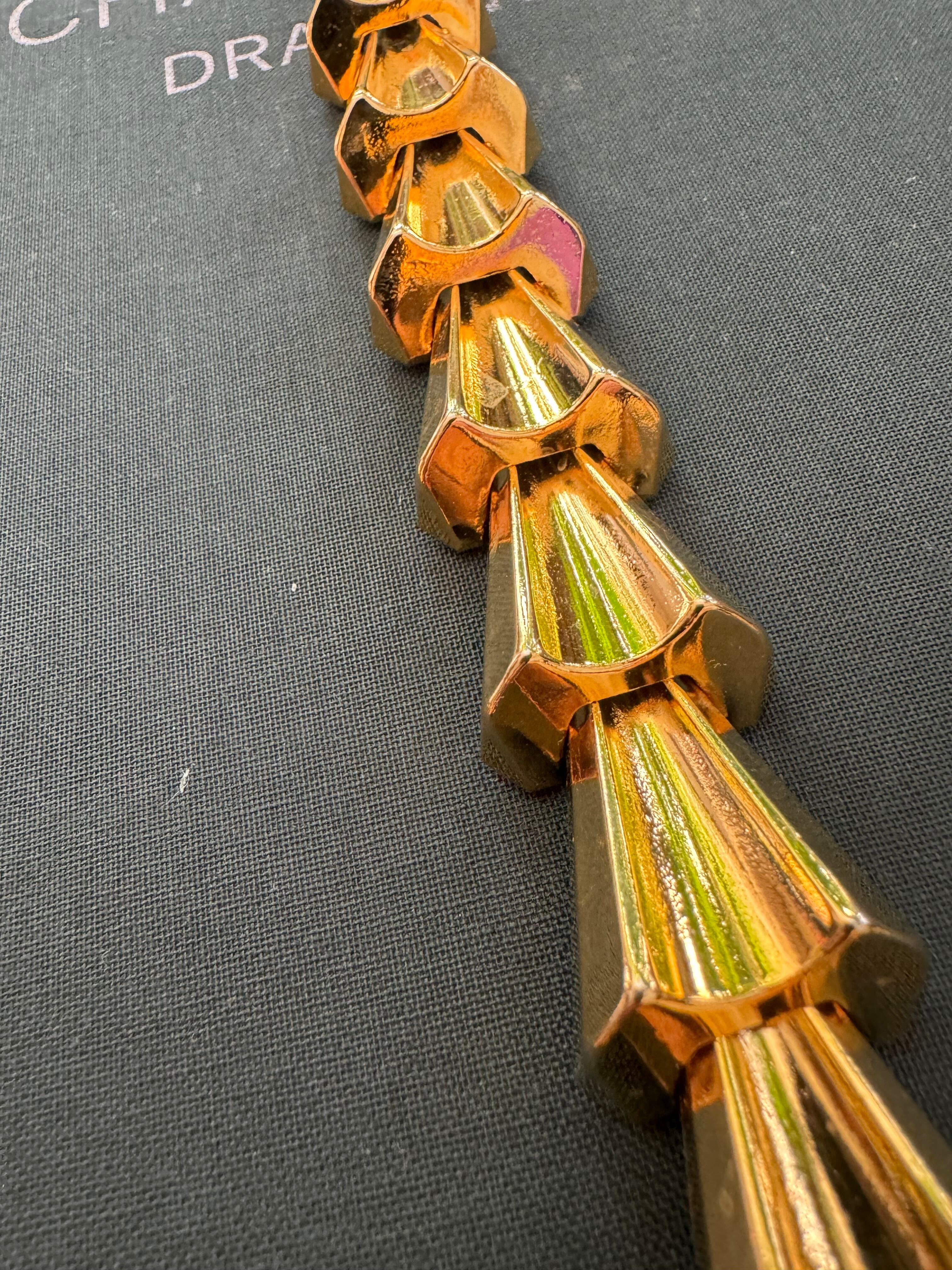 一コマずつが連結した動きのあるシルエットが美しいブレスレットです。