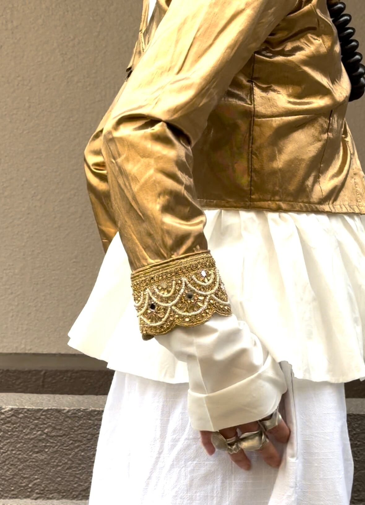 ・袖口 : ミラーワーク, ビーズ, クリスタル ストーン, パール付き