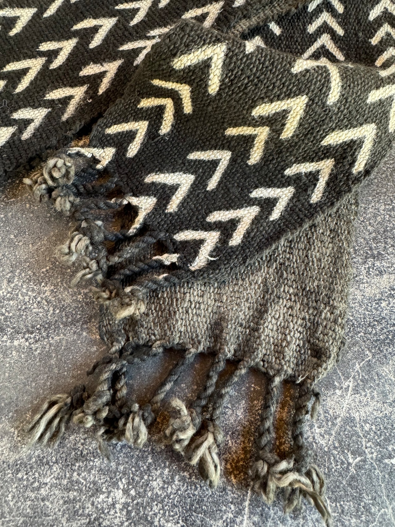 アフリカの伝統柄を泥染で手描きし、帯のような型に手織りした泥染め布です。