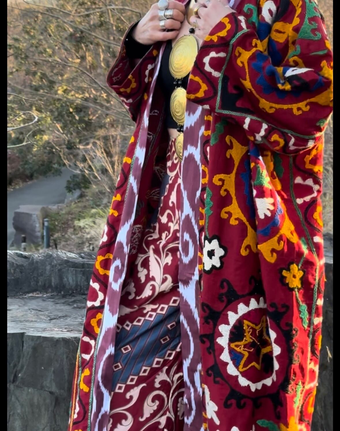 ウズベク ヴィンテージ ハンドメイド刺繍 スザニ ローブ _ レッド