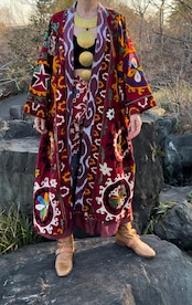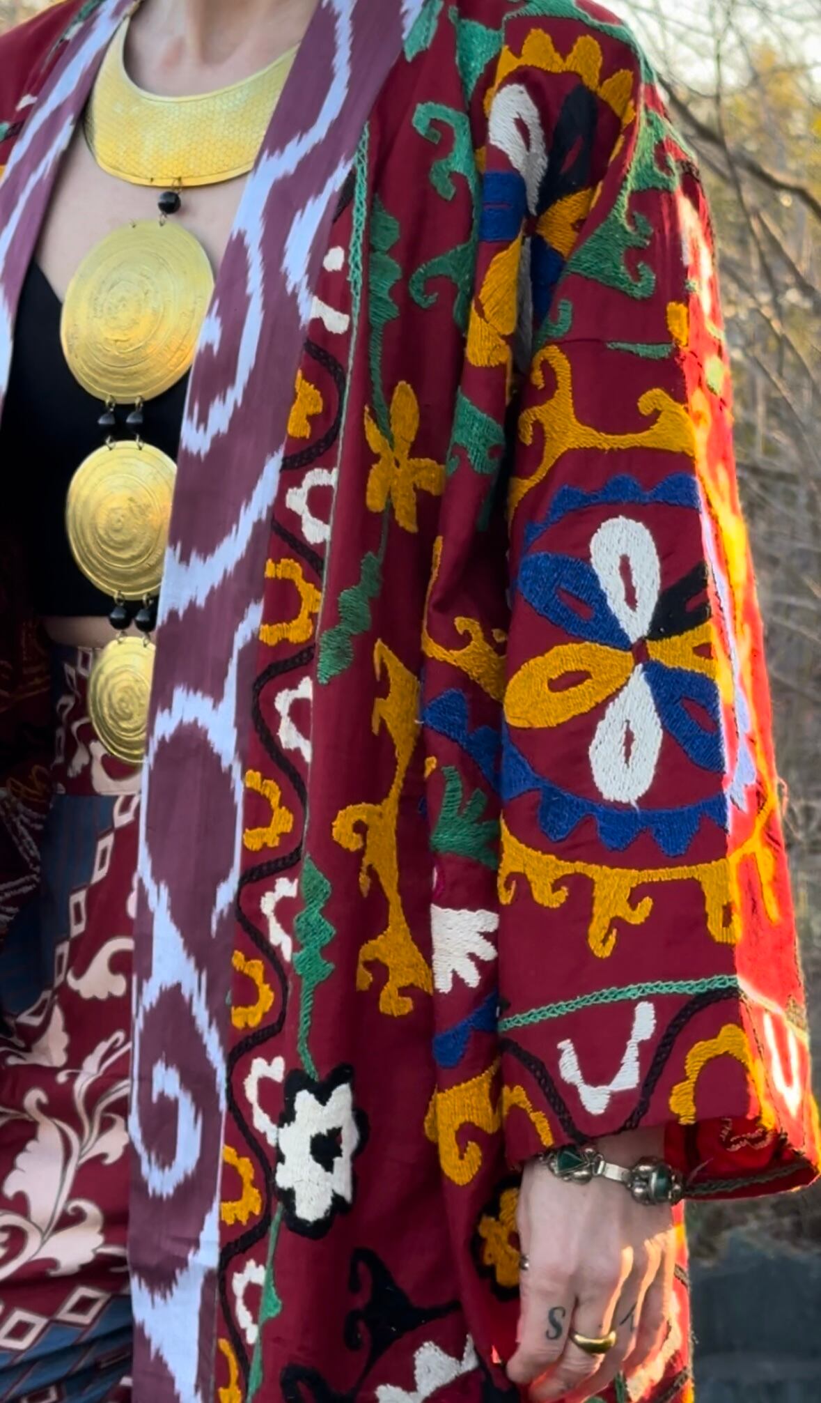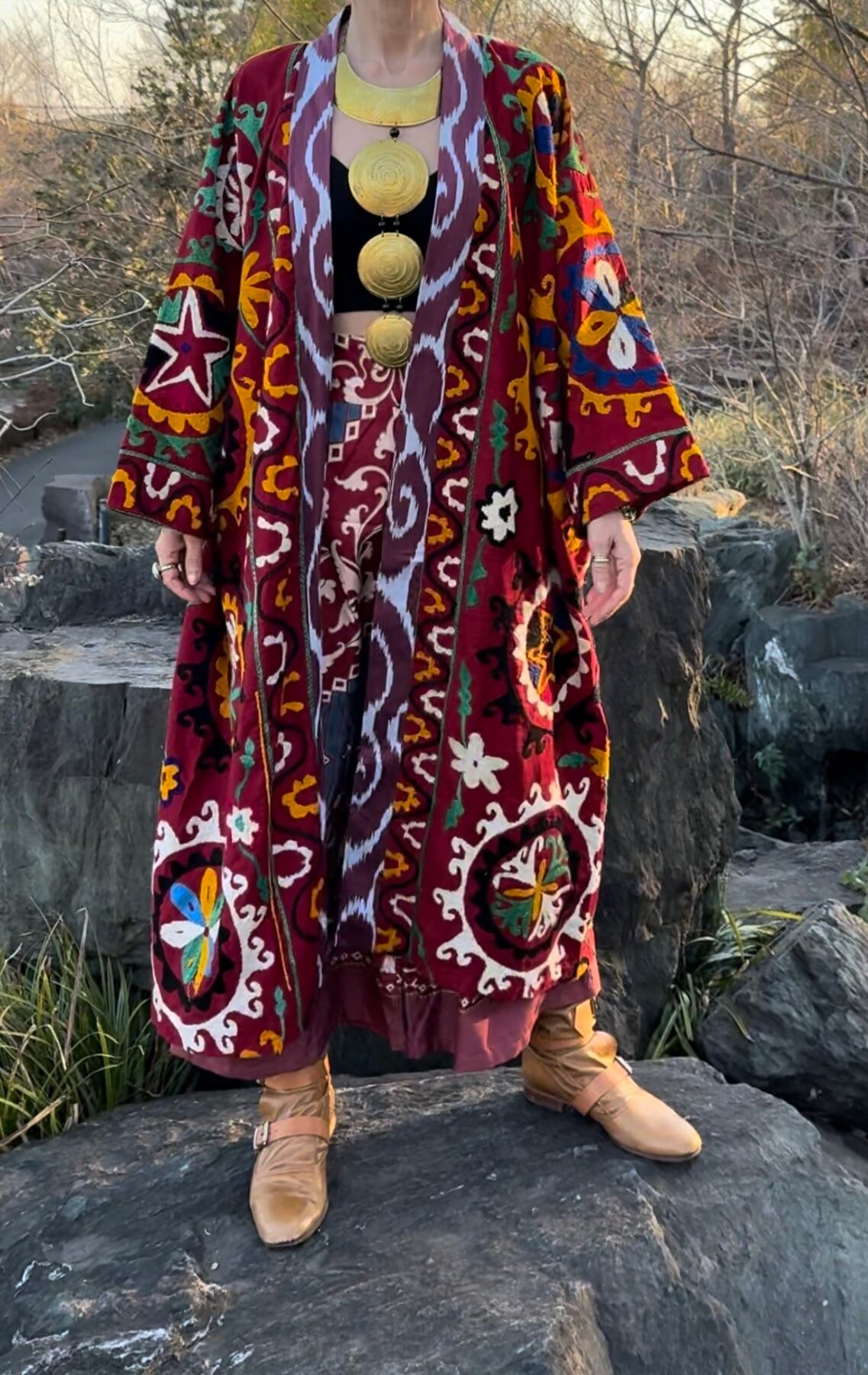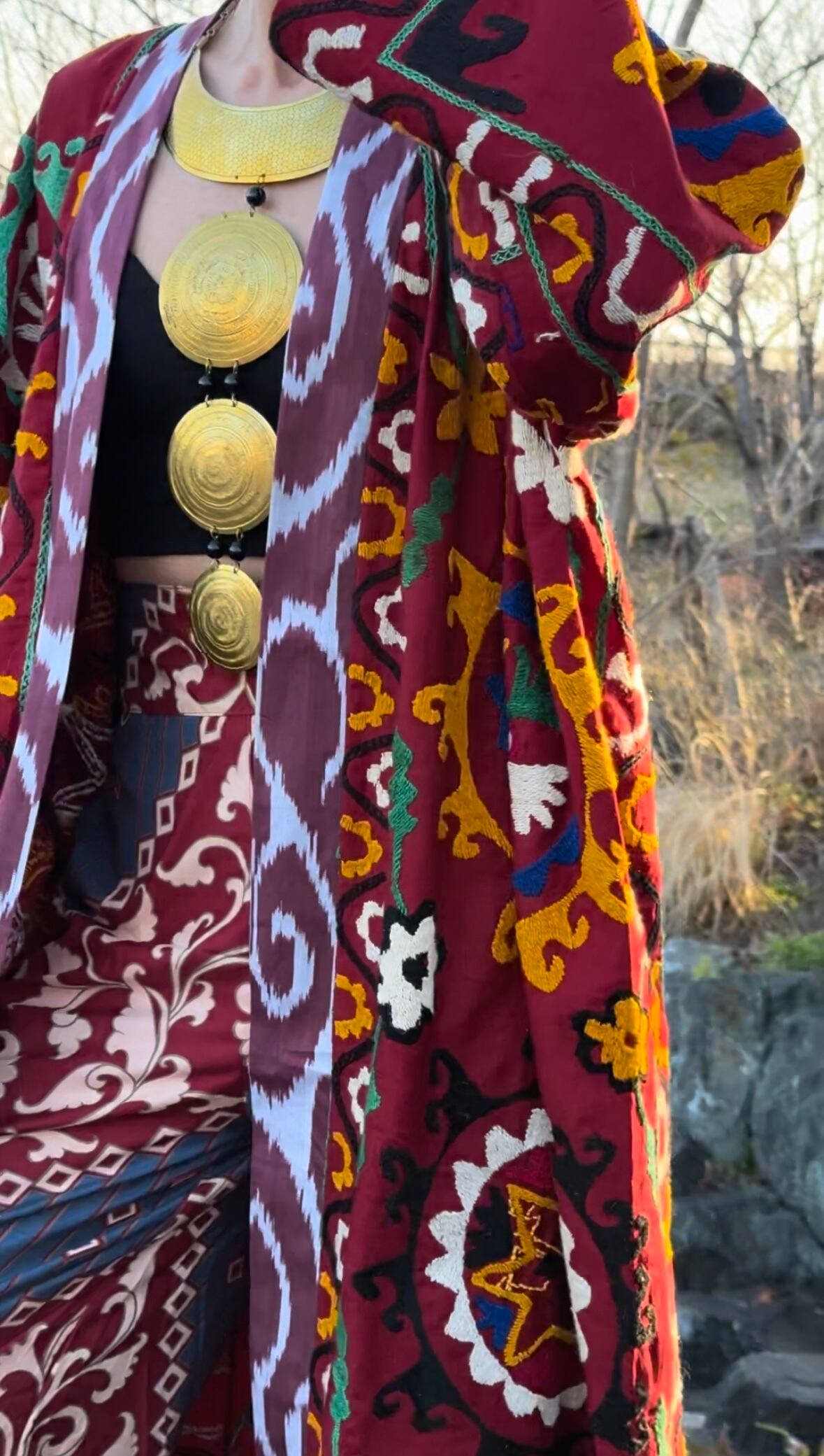 Uzbek vintage Embroidery SUZANI robe _ RED